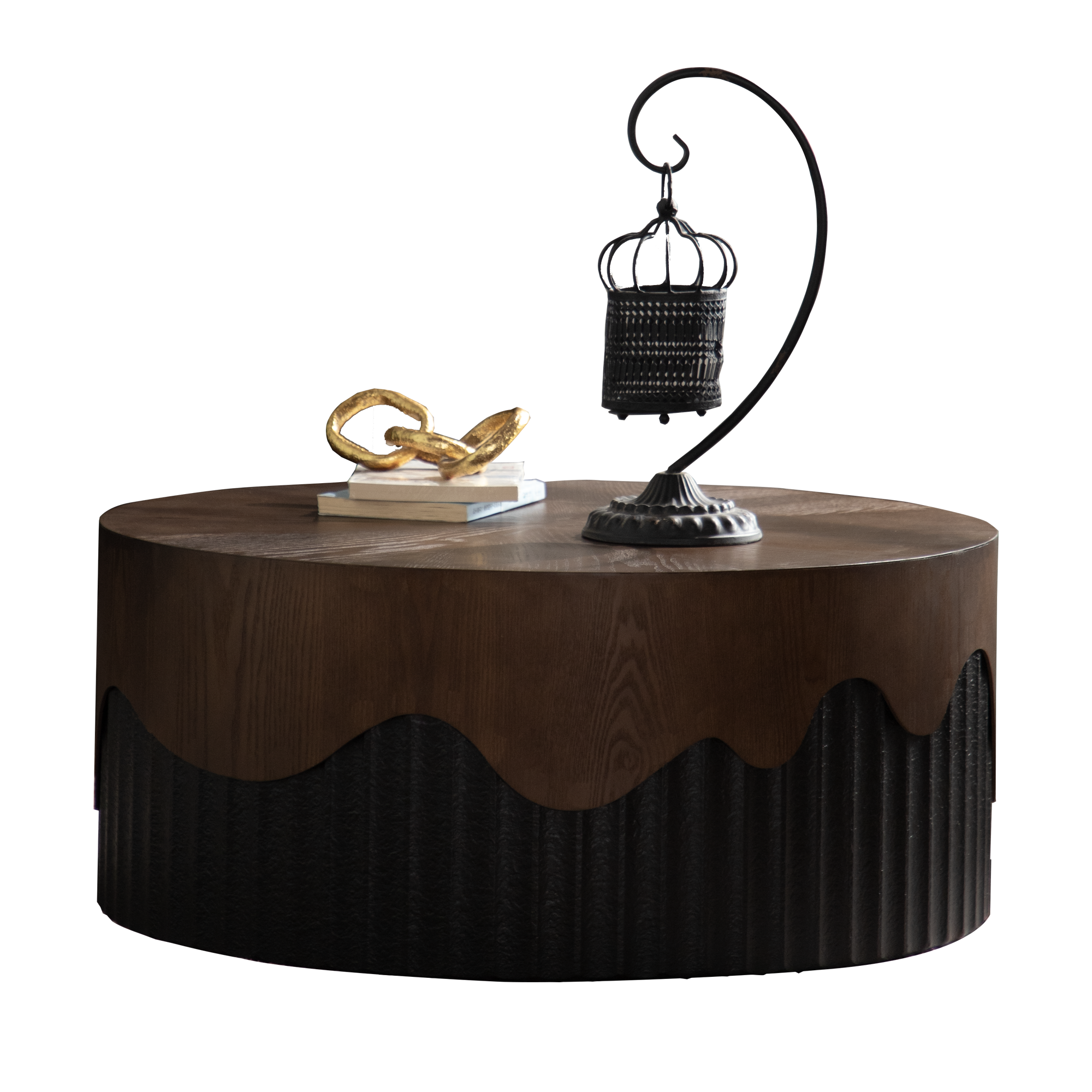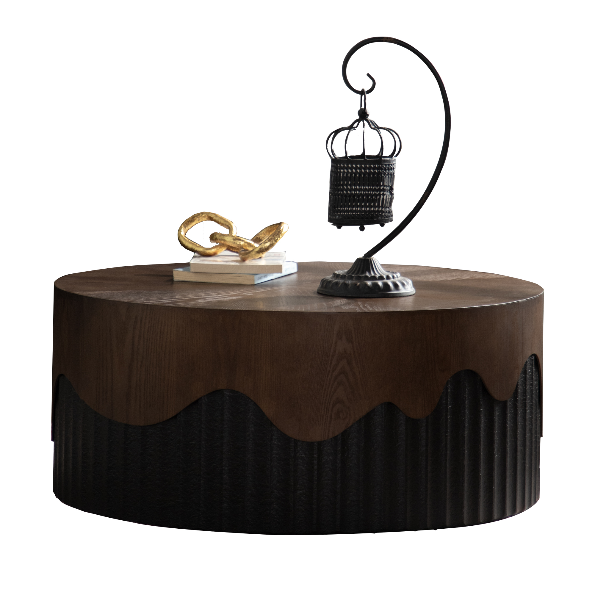 • Circular design:The circular tabletop features a real bark texture veneer. The lower black section is machine-carved, and the overall assembled design makes your living room look elegant and practical, more refined than ordinary coffee tables.
