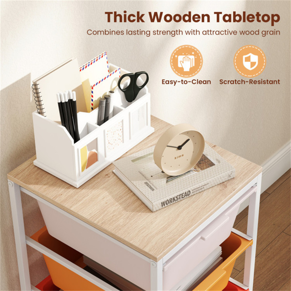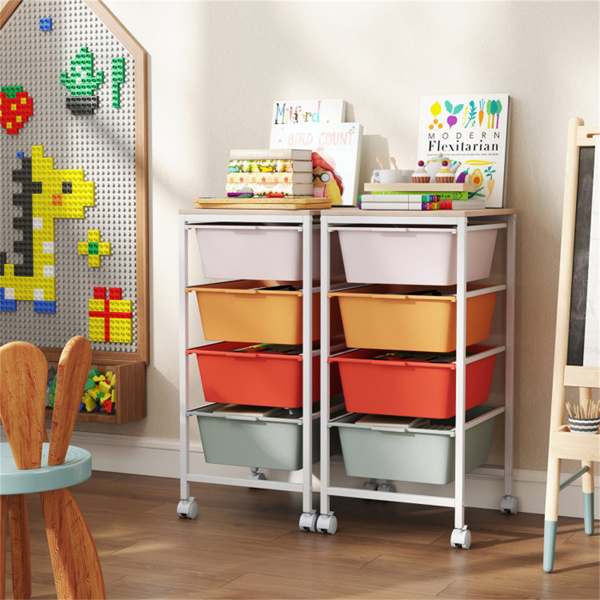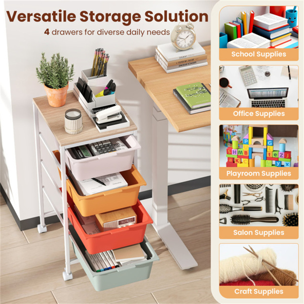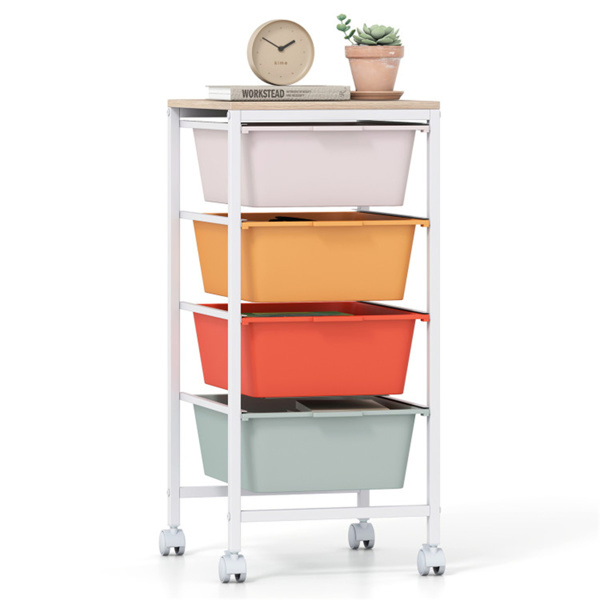 4-Drawer Rolling Storage Cart, Mobile Utility Organizer With MDF Wooden Top (Macaron)