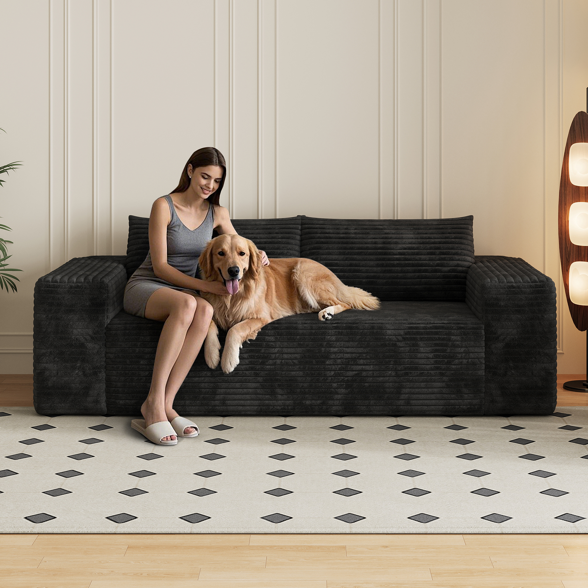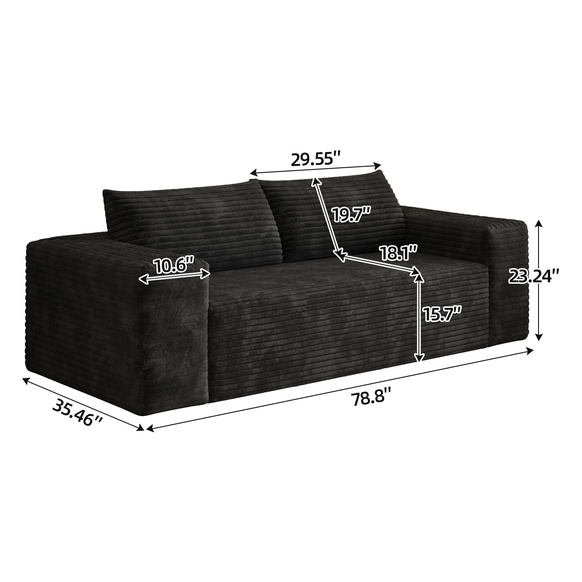 Home > 78.8 3Setaser Sofa,Corduroy Fabric,Deep Seat Couches,Comfy Loveseat Sofa,No Assembly,1pcs For Living Room, Bedroom,Conference Room ,Apartment,Bla