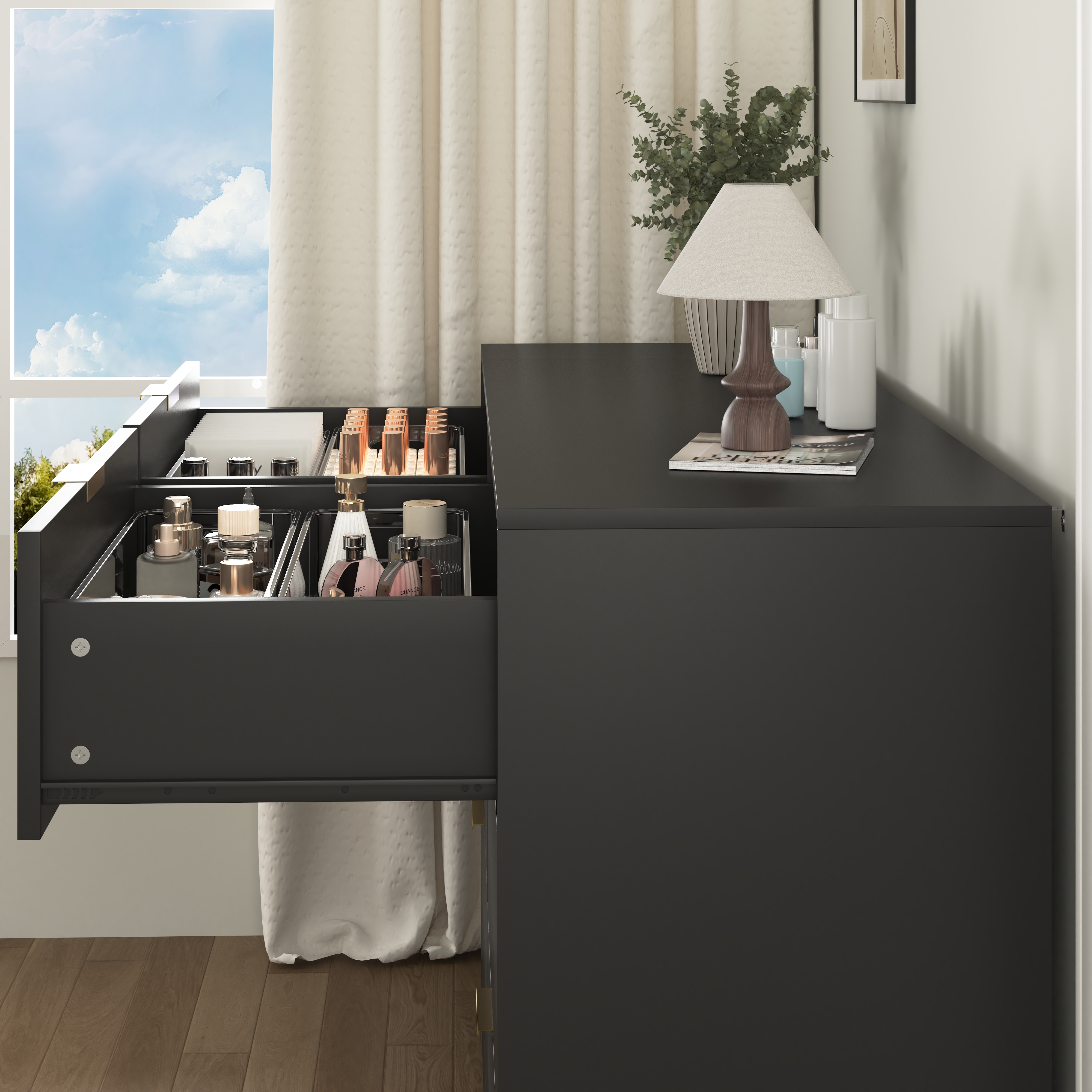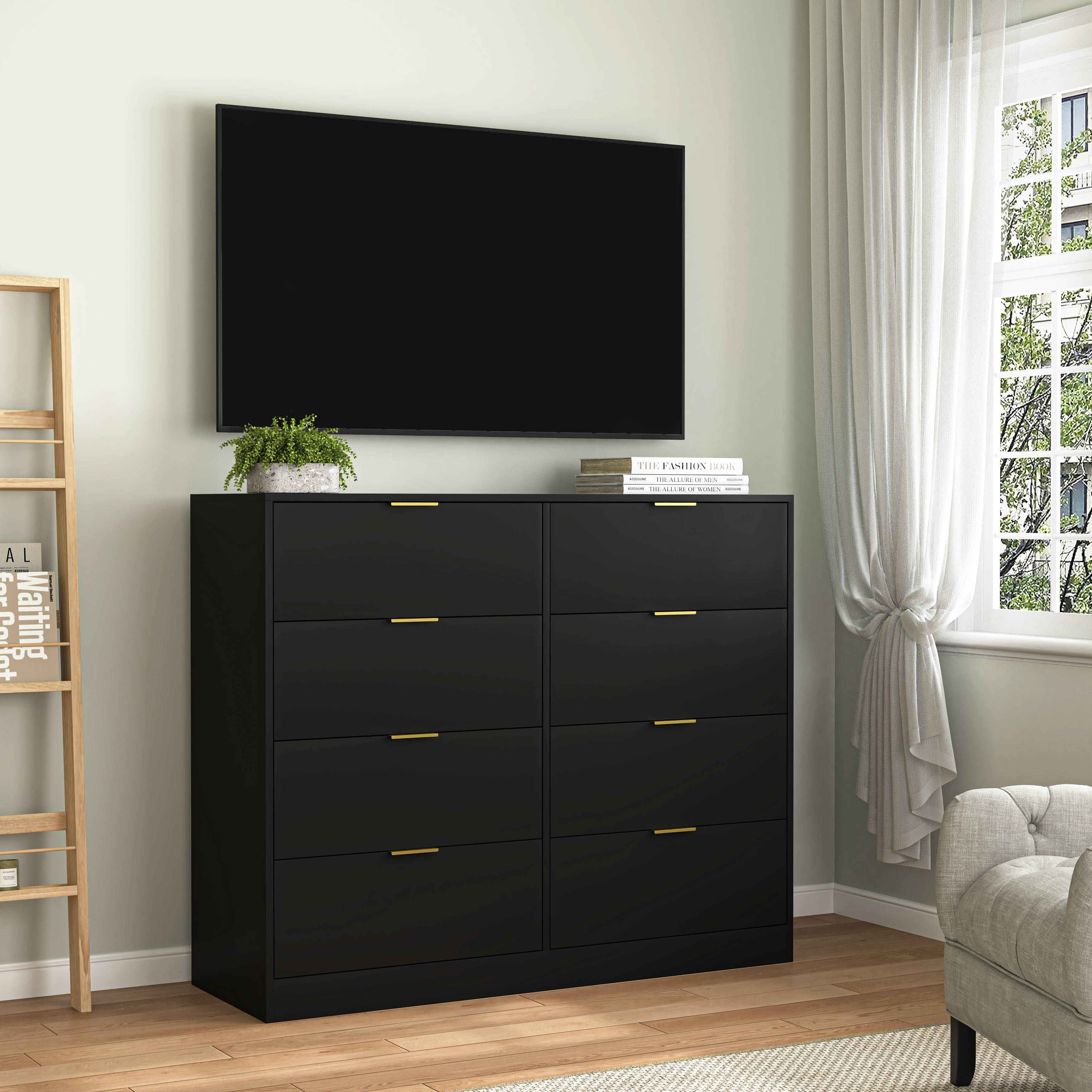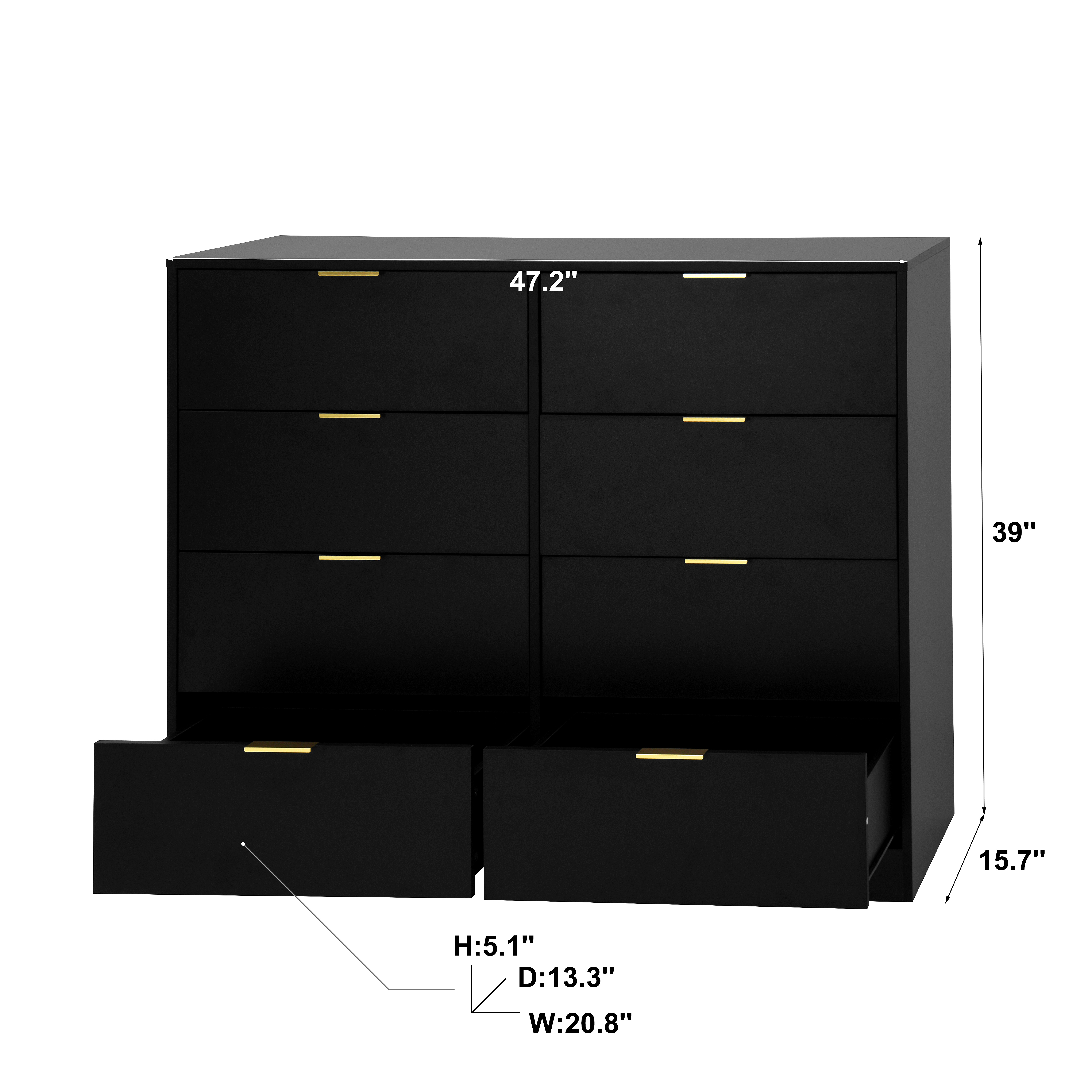 • 【Ample storage space】 Assembled dimension: 47.2"W x 15.74"D x 38.97"H. This wood dresser is designed with a spacious interior. The drawers won't collide or collapse. And the chest provides an appropriate height to place the potted plant or a lamp.