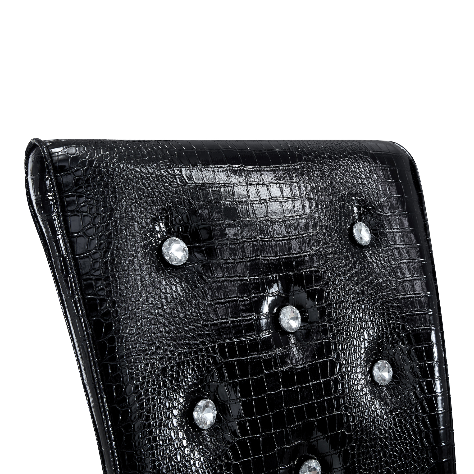 A Set Of 2 Black Vintage Crocodile Leather Cushioned Dining Chairs, Featuring Crystal Clasp Design And Artificial Leather Design, Adding A Touch
