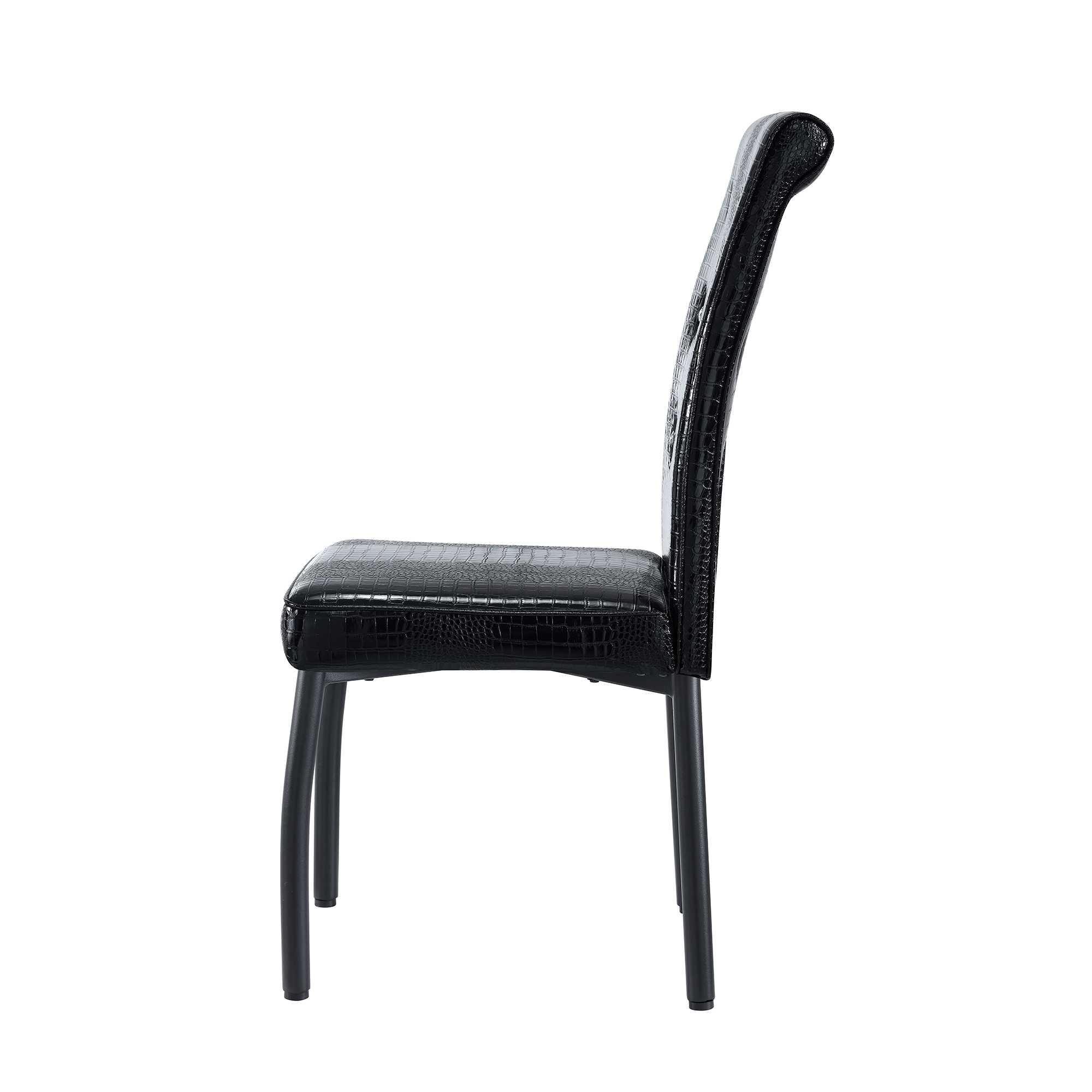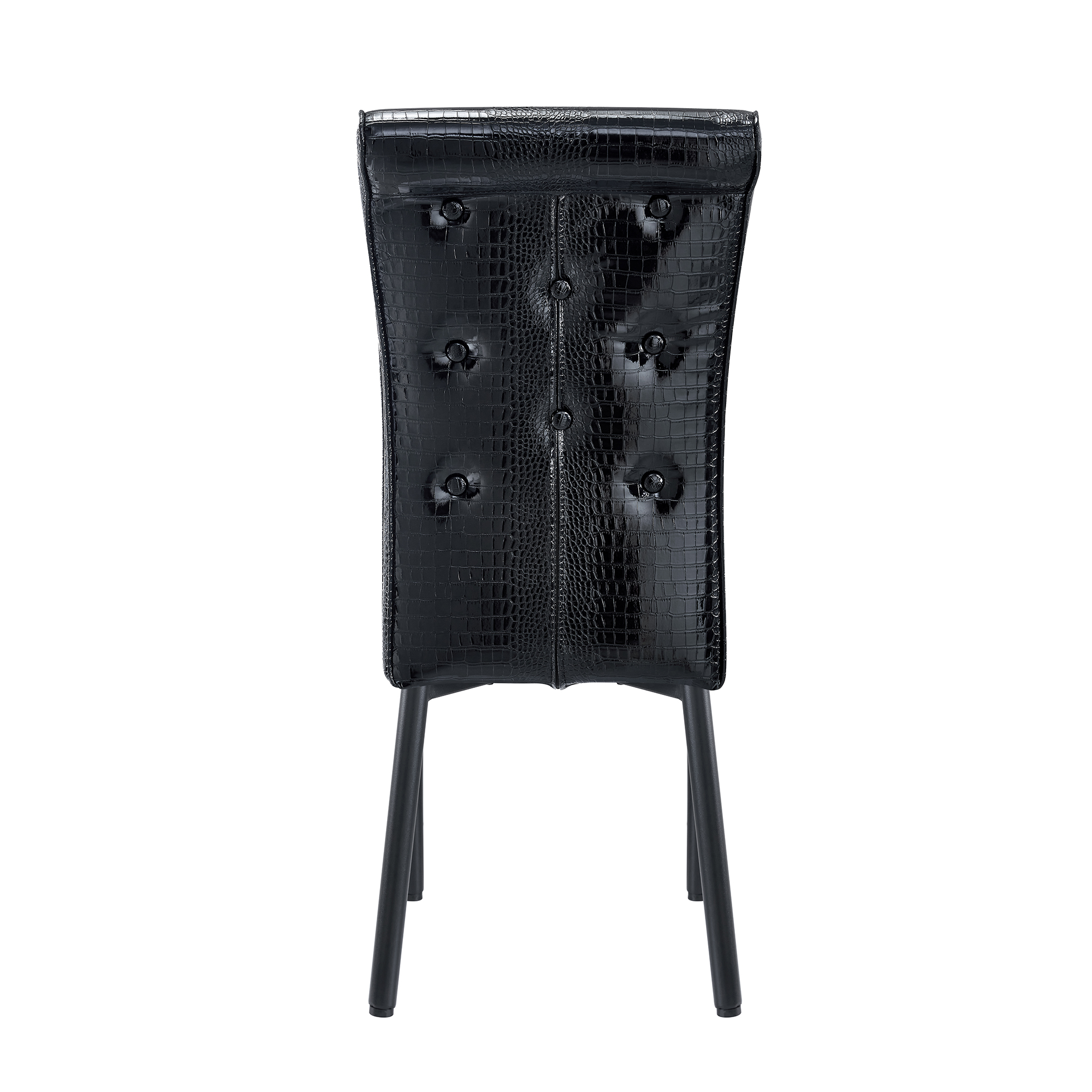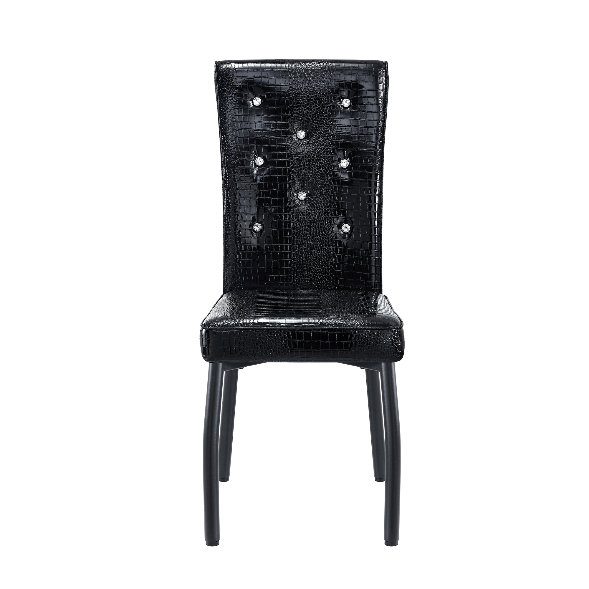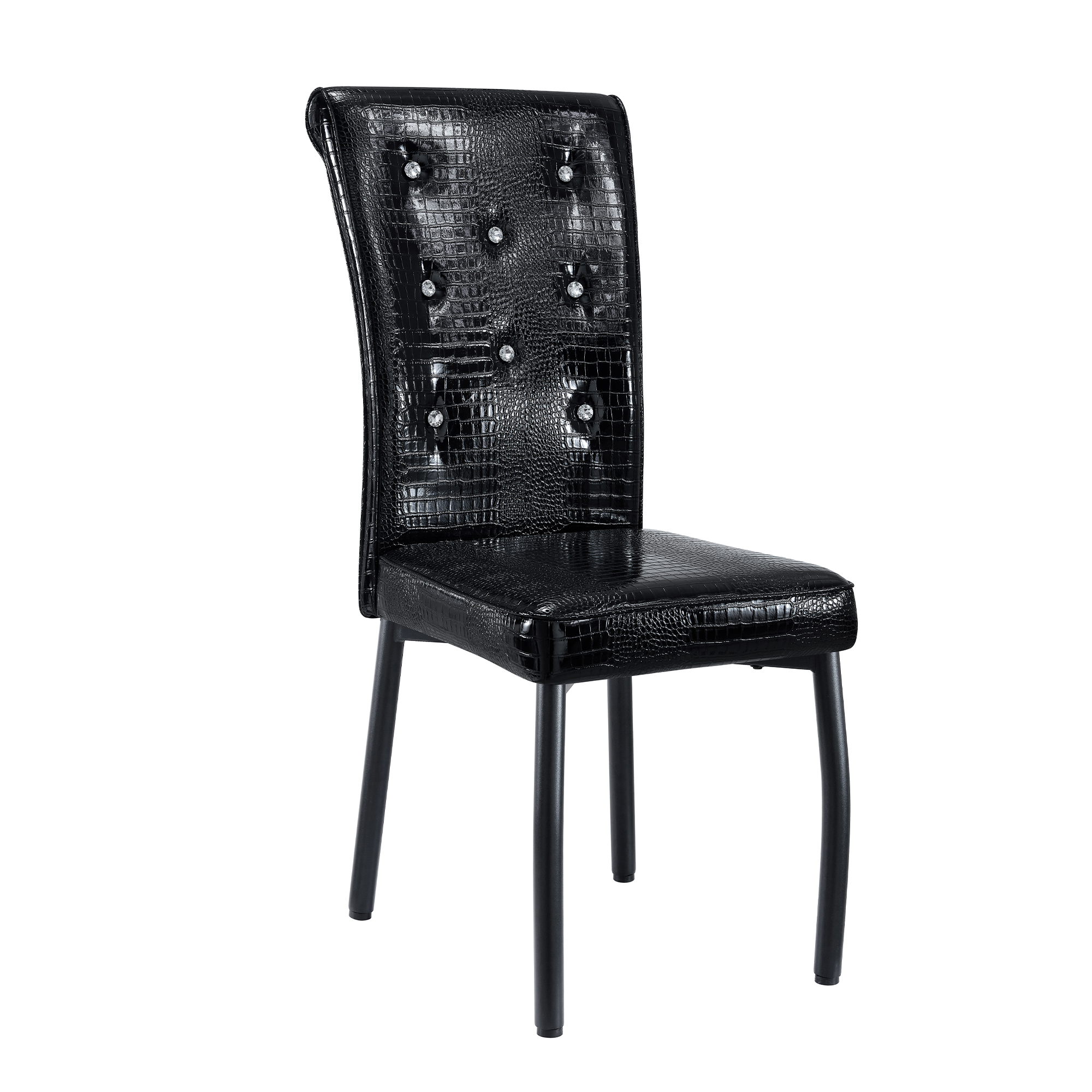 Product Name:A set of 2 black vintage crocodile leather cushioned dining chairs, featuring crystal clasp design and artificial leather design, adding a touch of elegance and mystery to the dining area