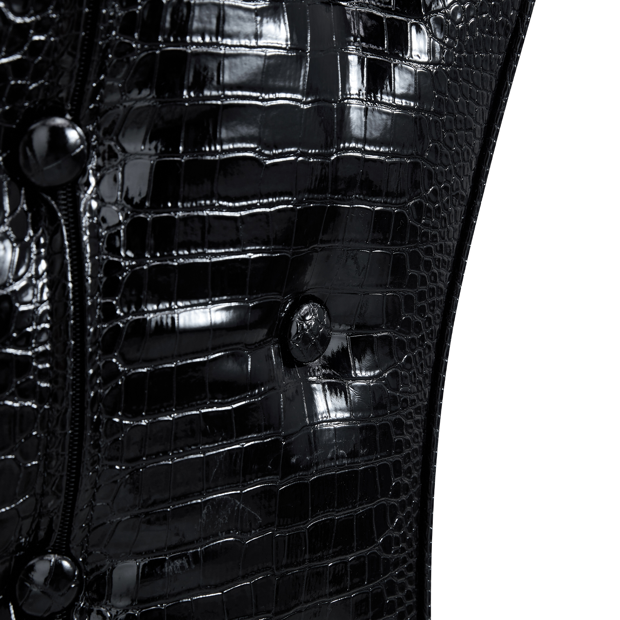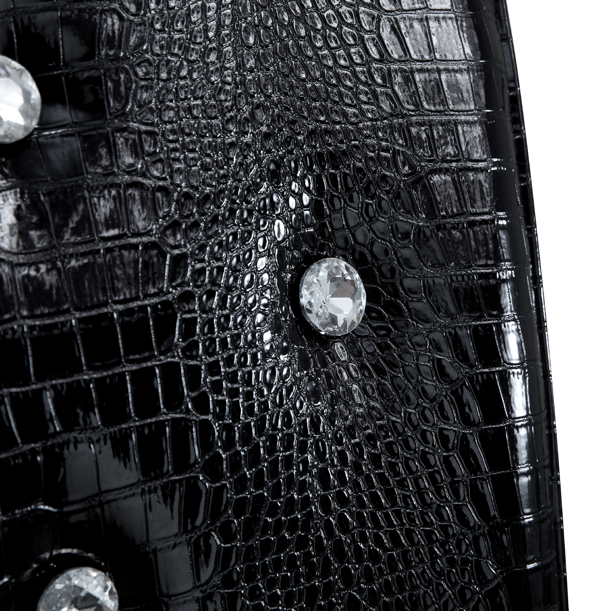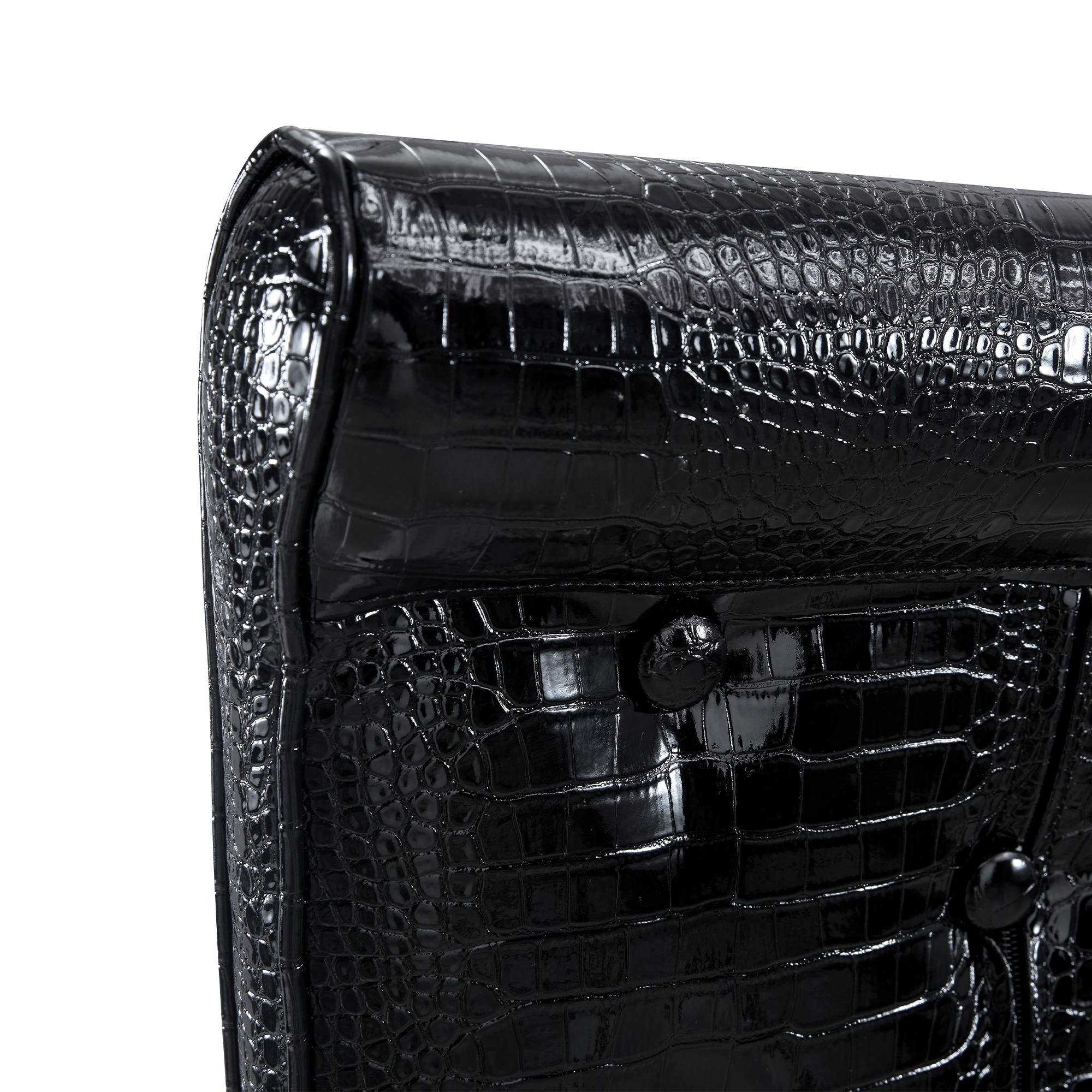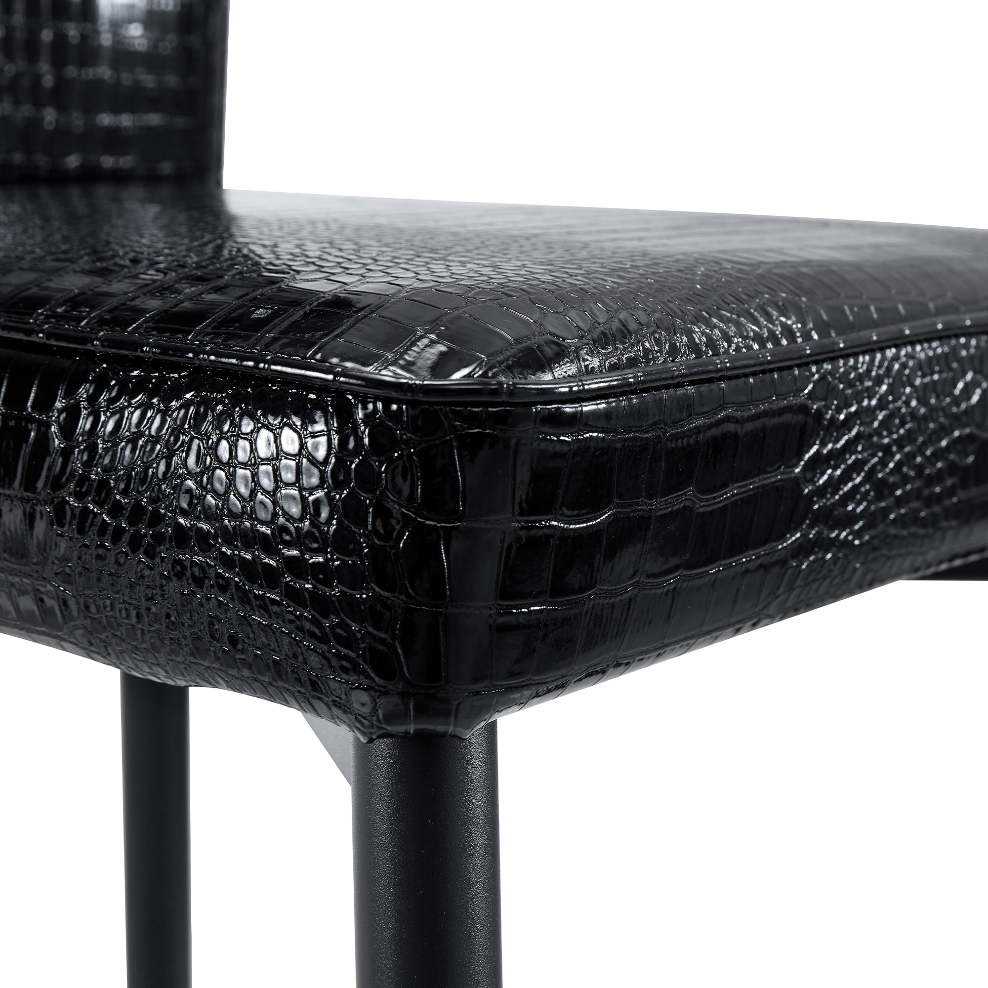 Home > A Set Of 2 Black Vintage Crocodile Leather Cushioned Dining Chairs, Featuring Crystal Clasp Design And Artificial Leather Design, Adding A Touch