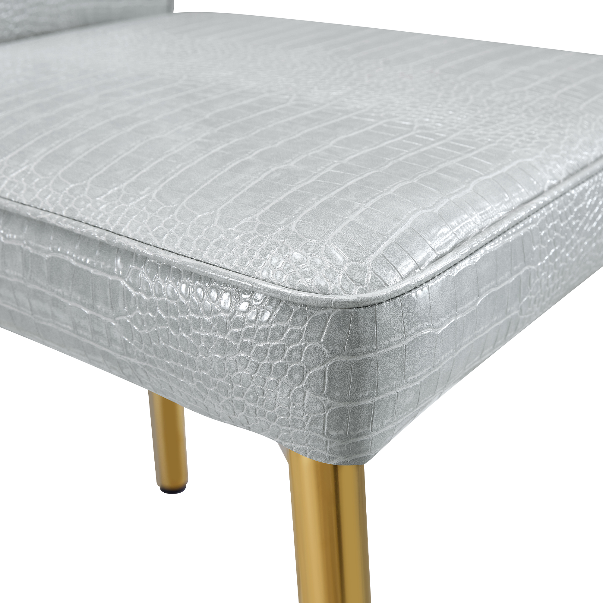 Product Name:A set of 2 gray and gold vintage crocodile leather cushioned dining chairs, featuring crystal clasp design and artificial leather design, adding a touch of elegance and mystery to the dining area
