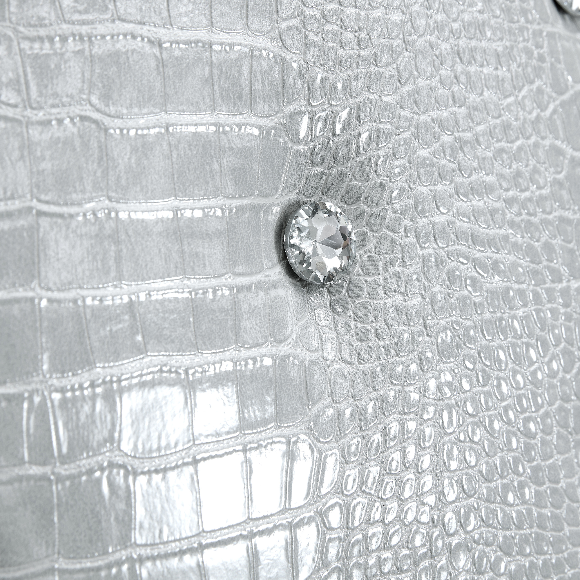A Set Of 2 Gray And Gold Vintage Crocodile Leather Cushioned Dining Chairs, Featuring Crystal Clasp Design And Artificial Leather Design, Adding