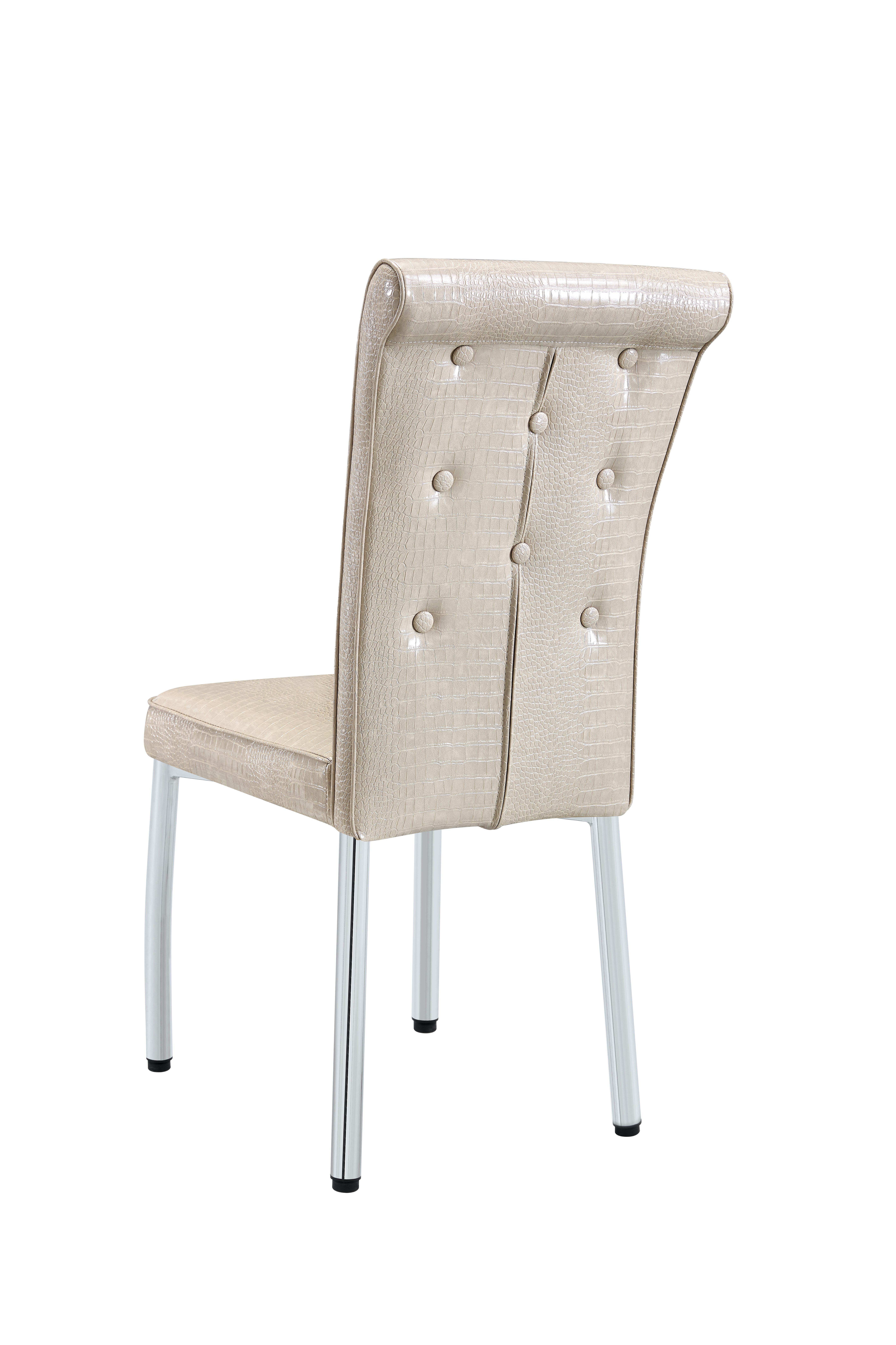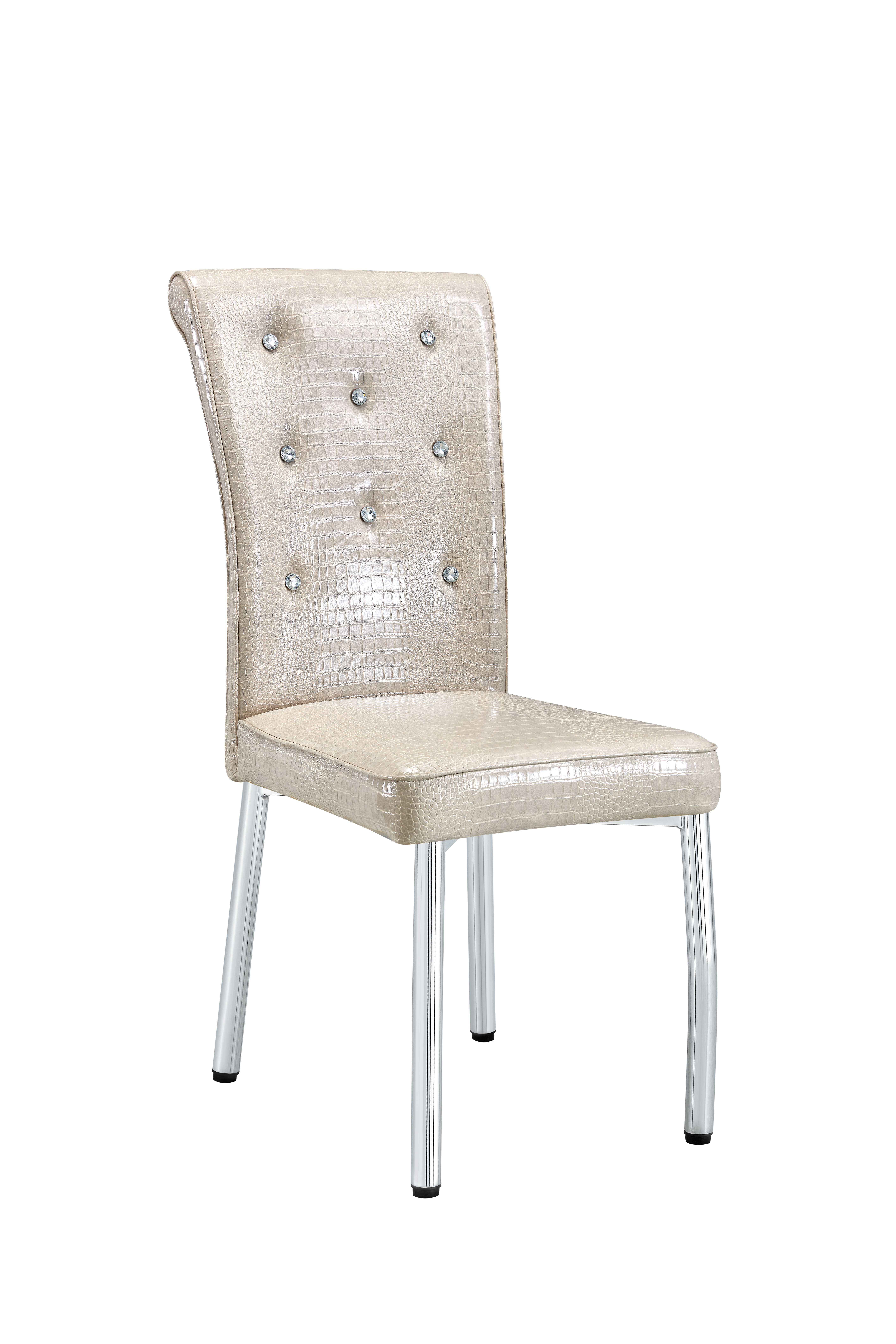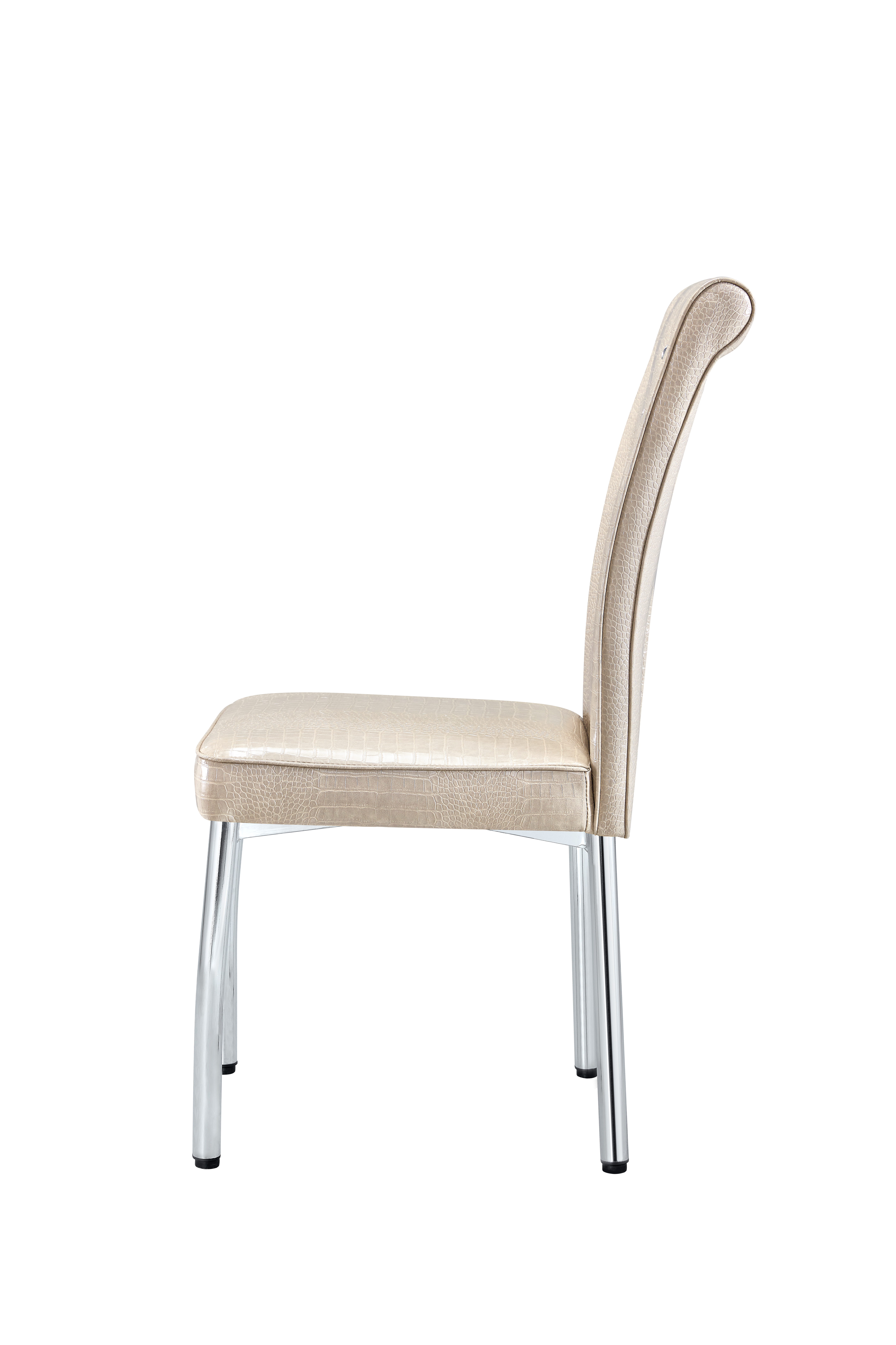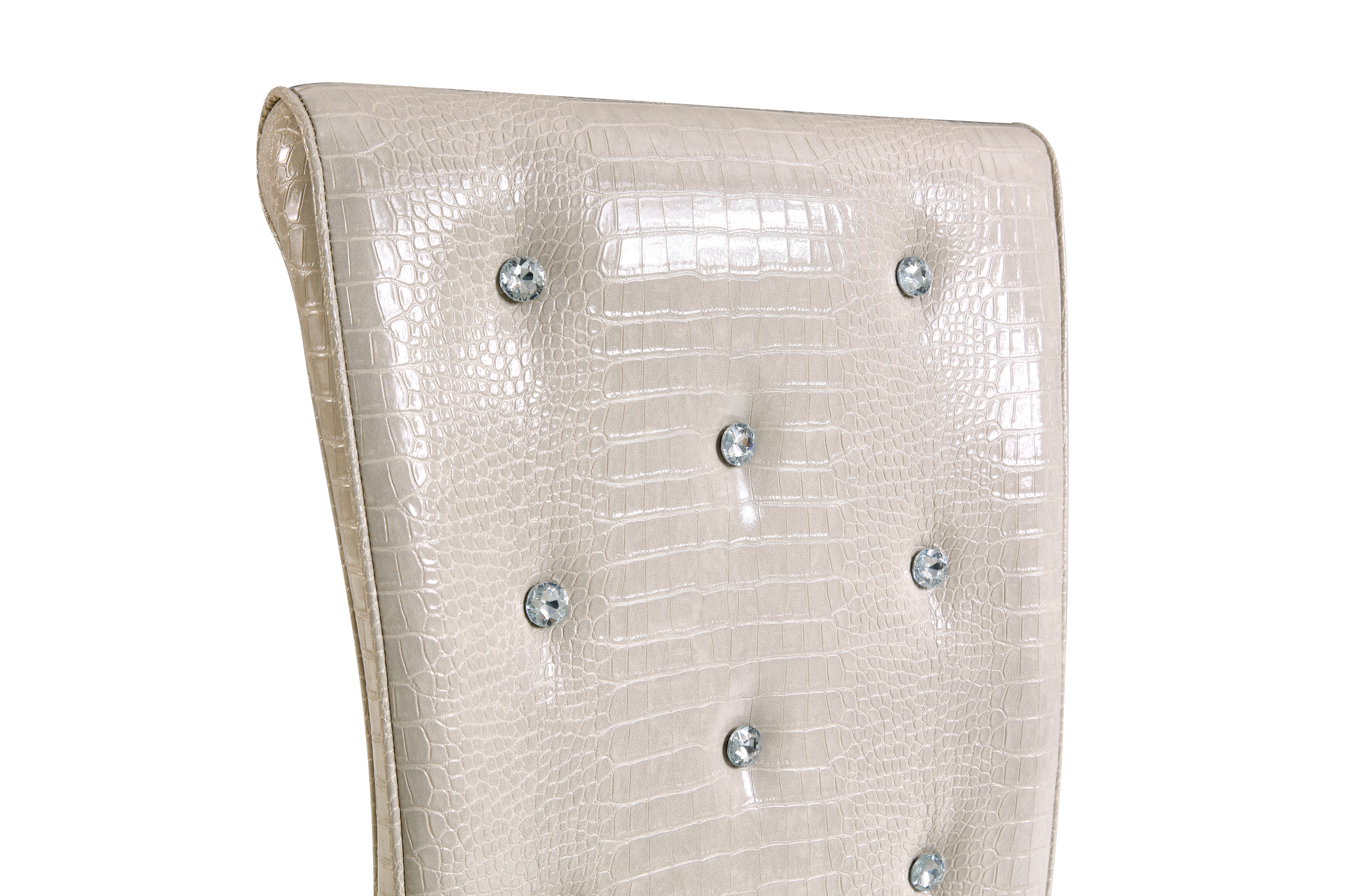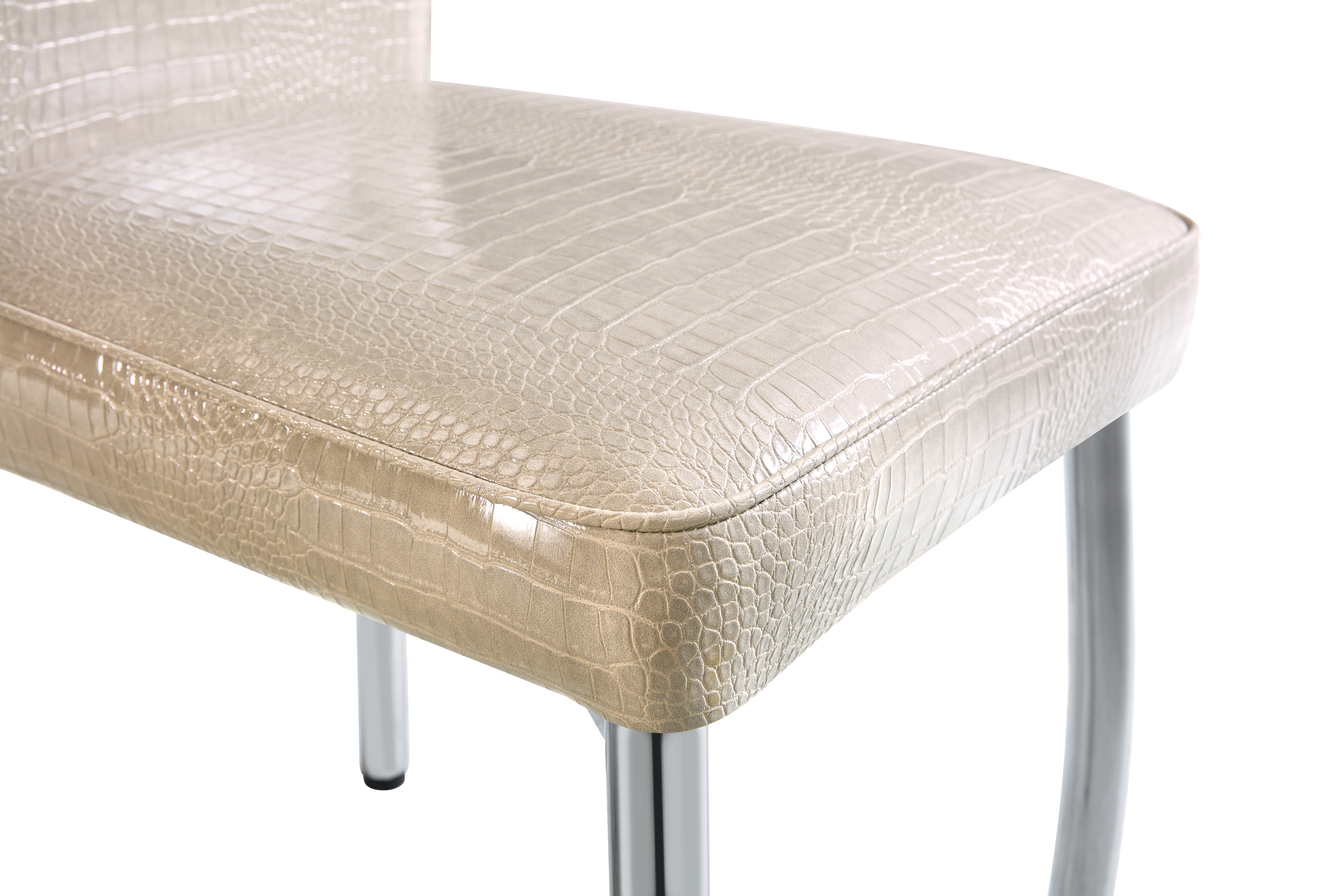 Home > A Set Of 4 Beige And Silver Vintage Crocodile Leather Cushioned Dining Chairs, Featuring Crystal Clasp Design And Artificial Leather Design, Addi