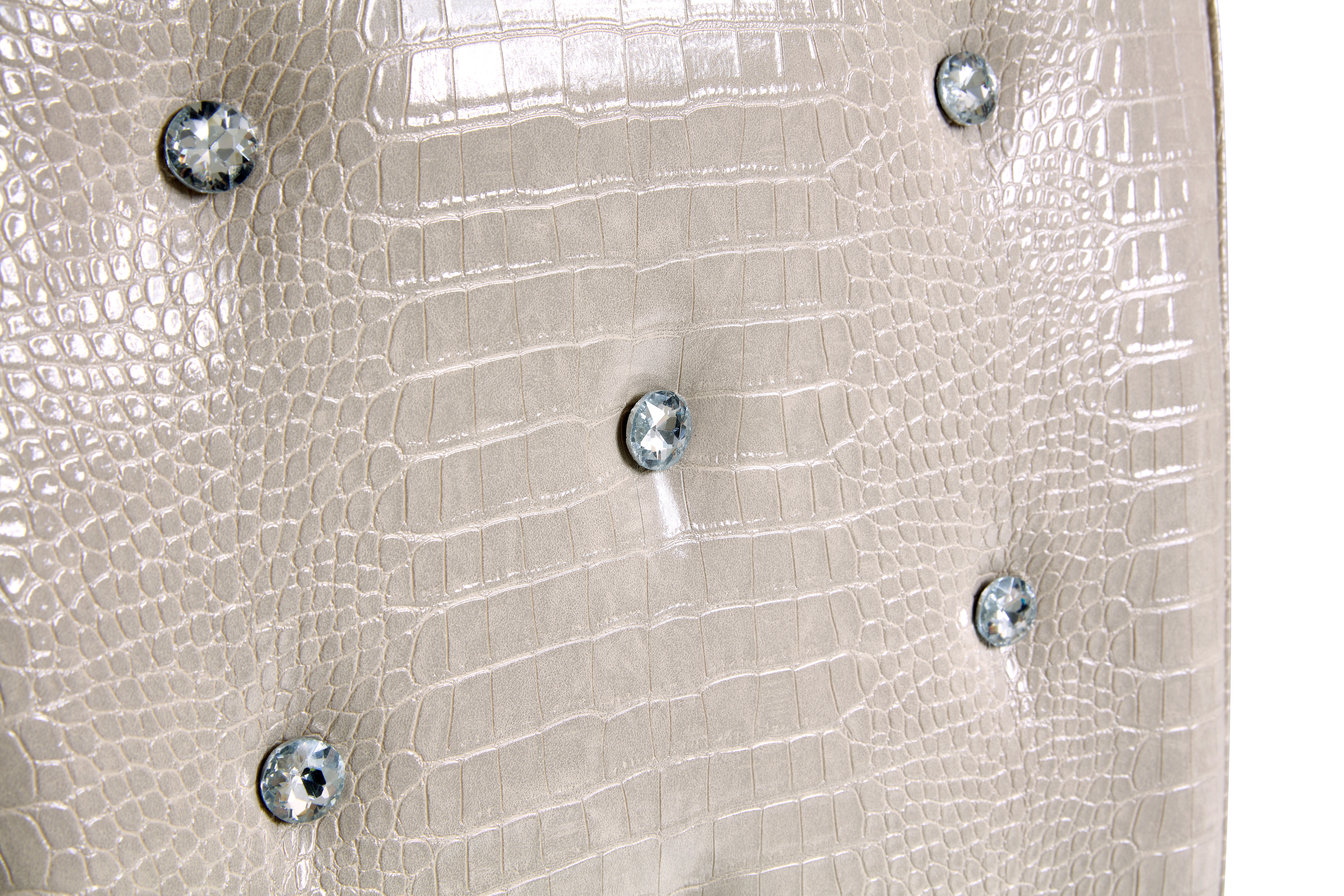 A Set Of 4 Beige And Silver Vintage Crocodile Leather Cushioned Dining Chairs, Featuring Crystal Clasp Design And Artificial Leather Design, Addi