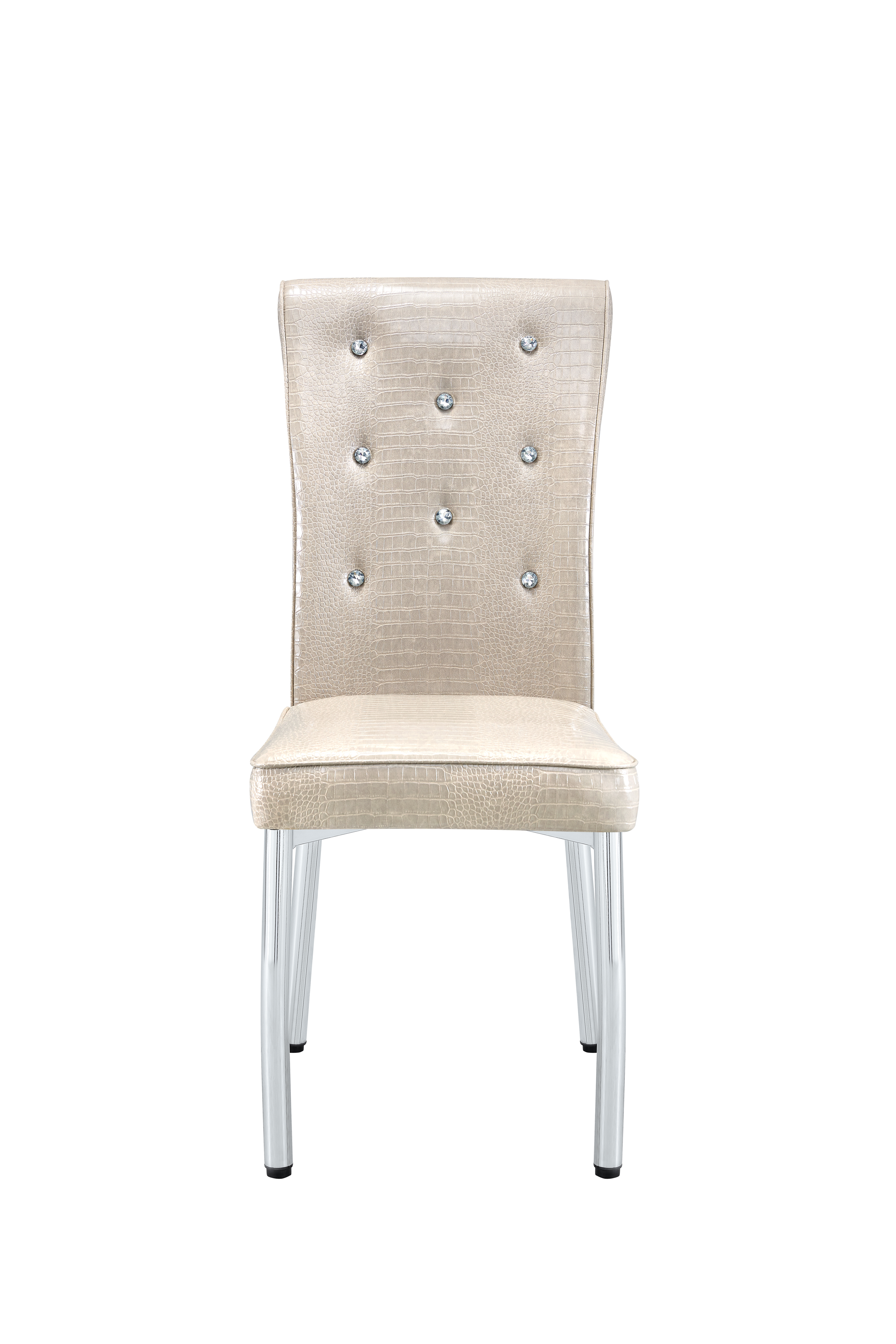 Product Name:A set of 4 beige and silver vintage crocodile leather cushioned dining chairs, featuring crystal clasp design and artificial leather design, adding a touch of elegance and mystery to the dining area
