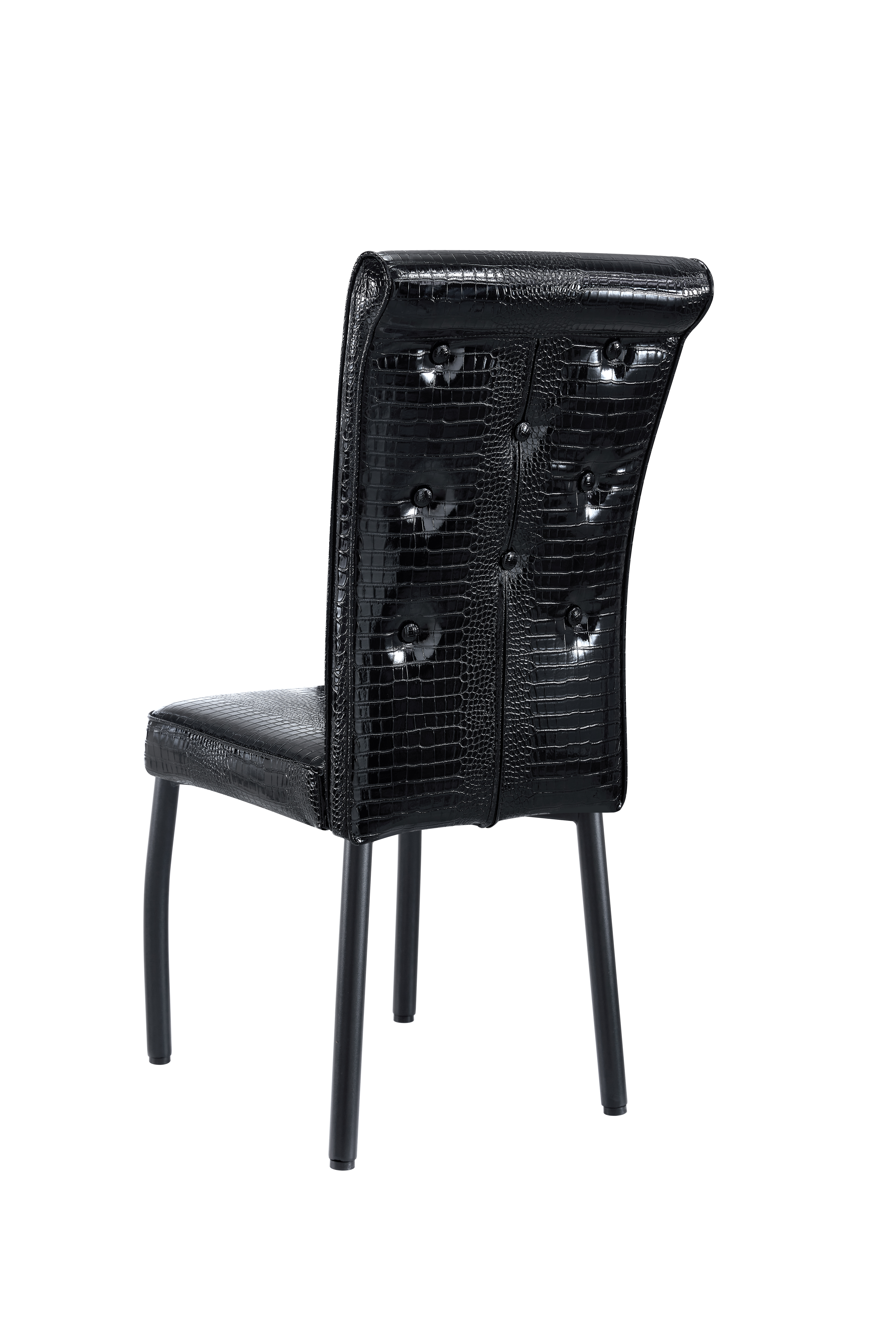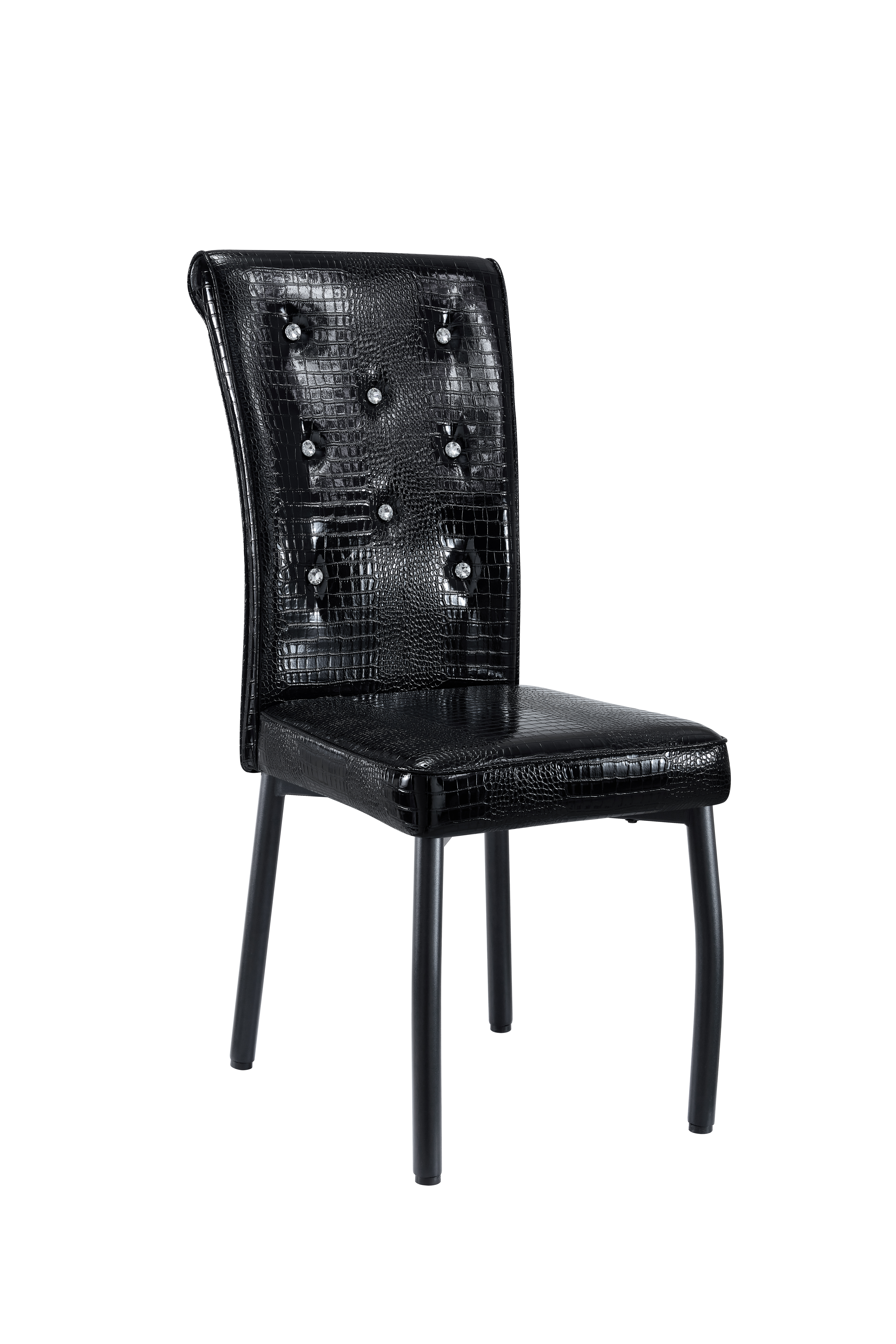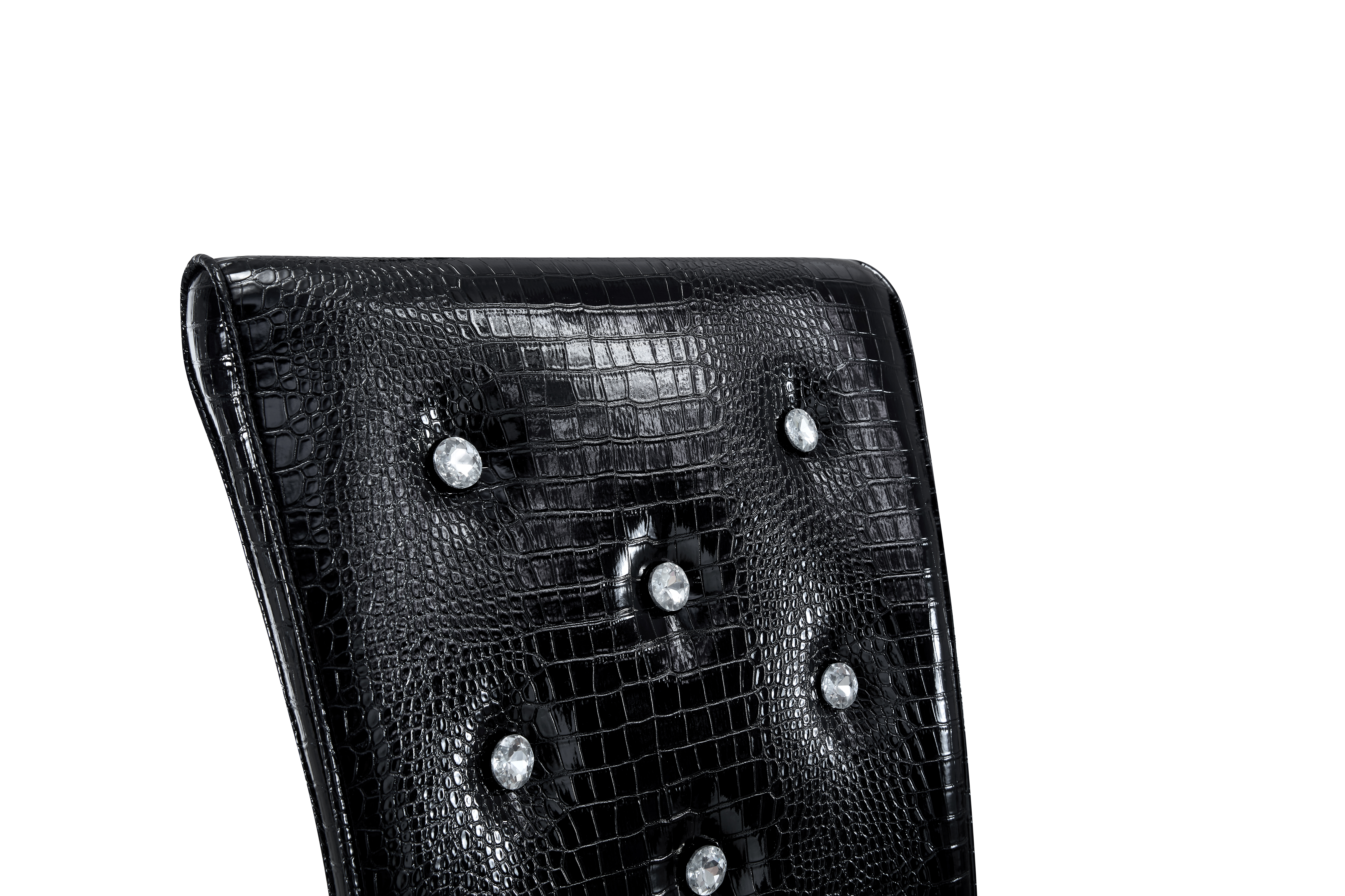 Home > A Set Of 4 Black Vintage Crocodile Leather Cushioned Dining Chairs, Featuring Crystal Clasp Design And Artificial Leather Design, Adding A Touch