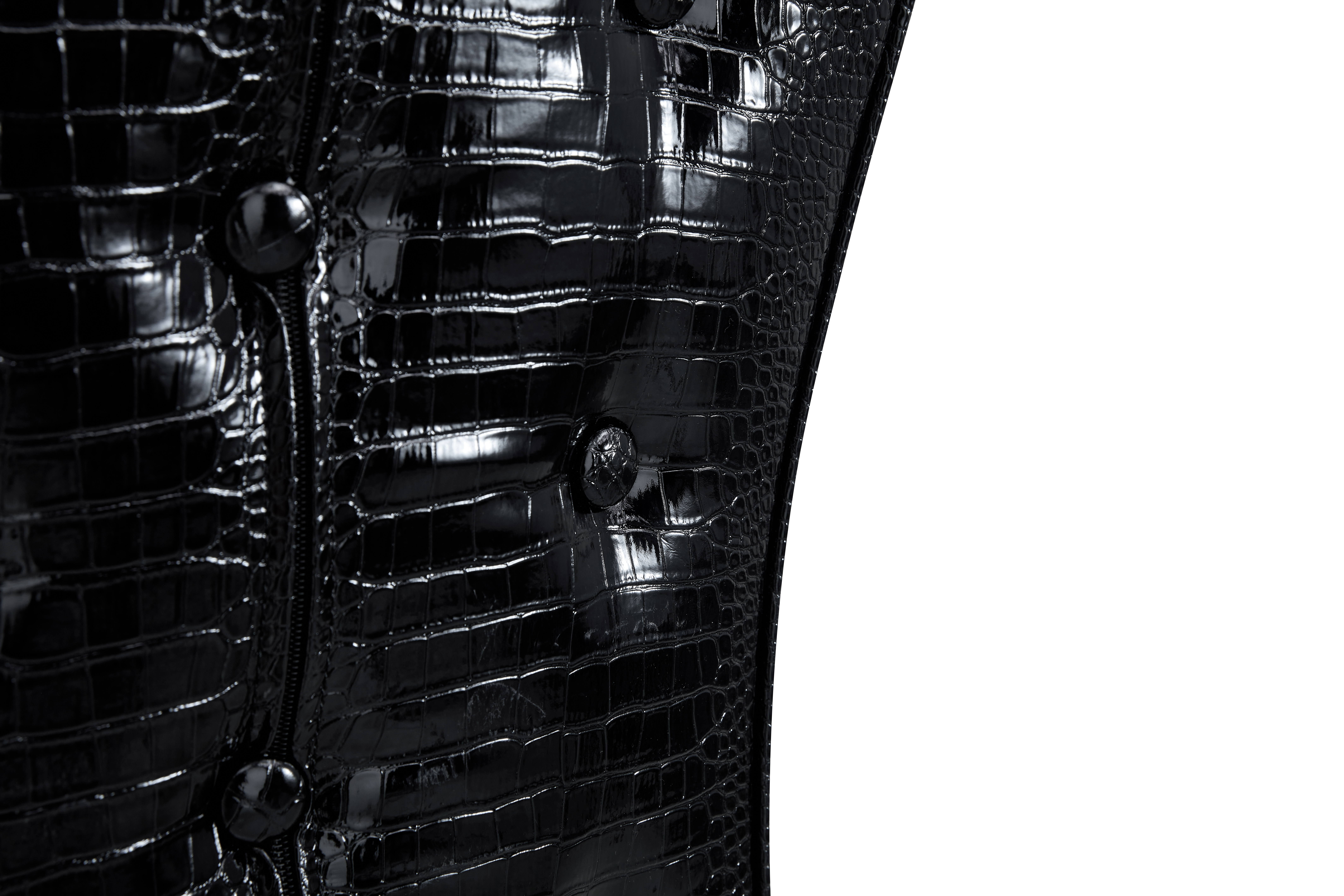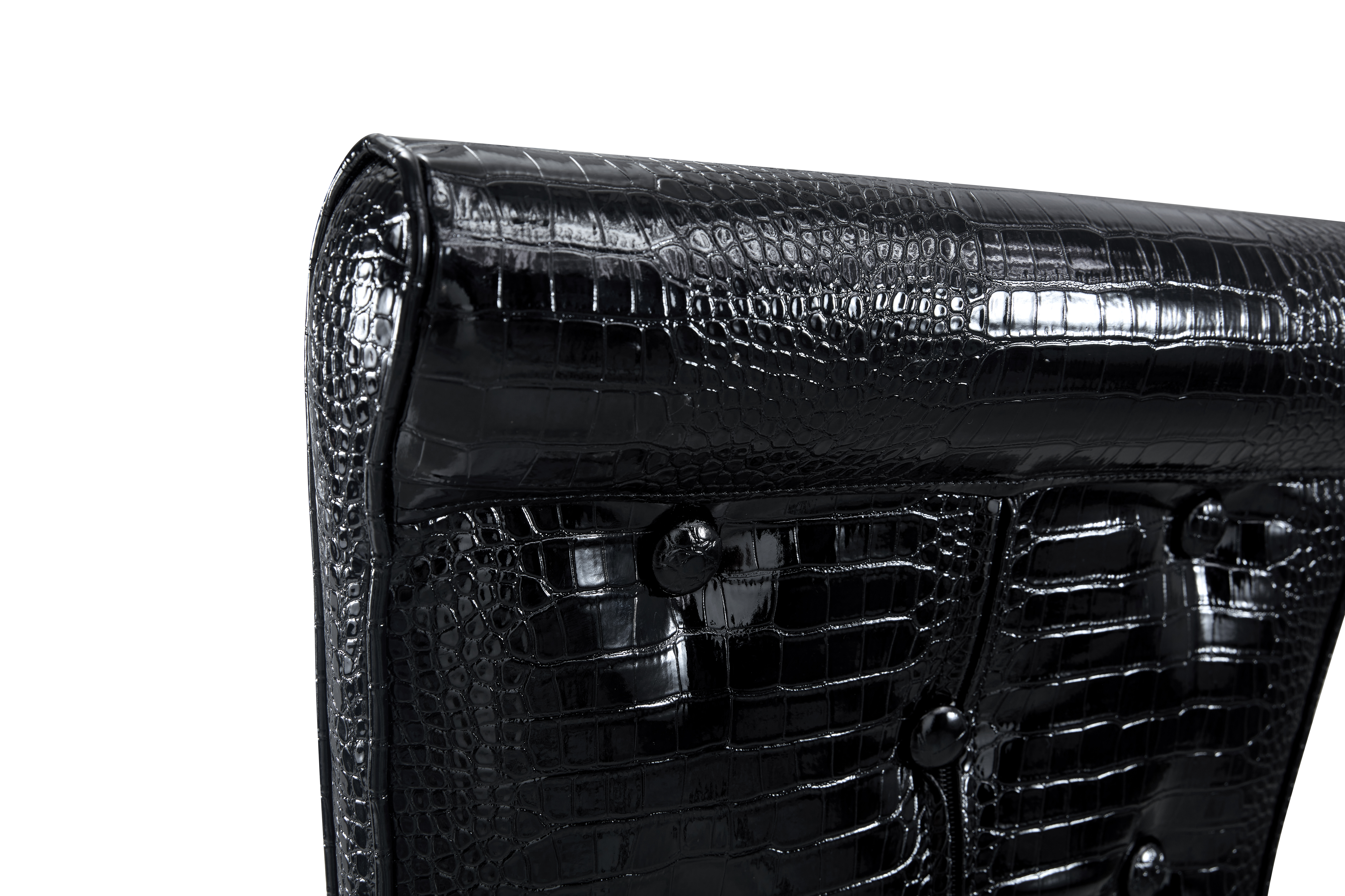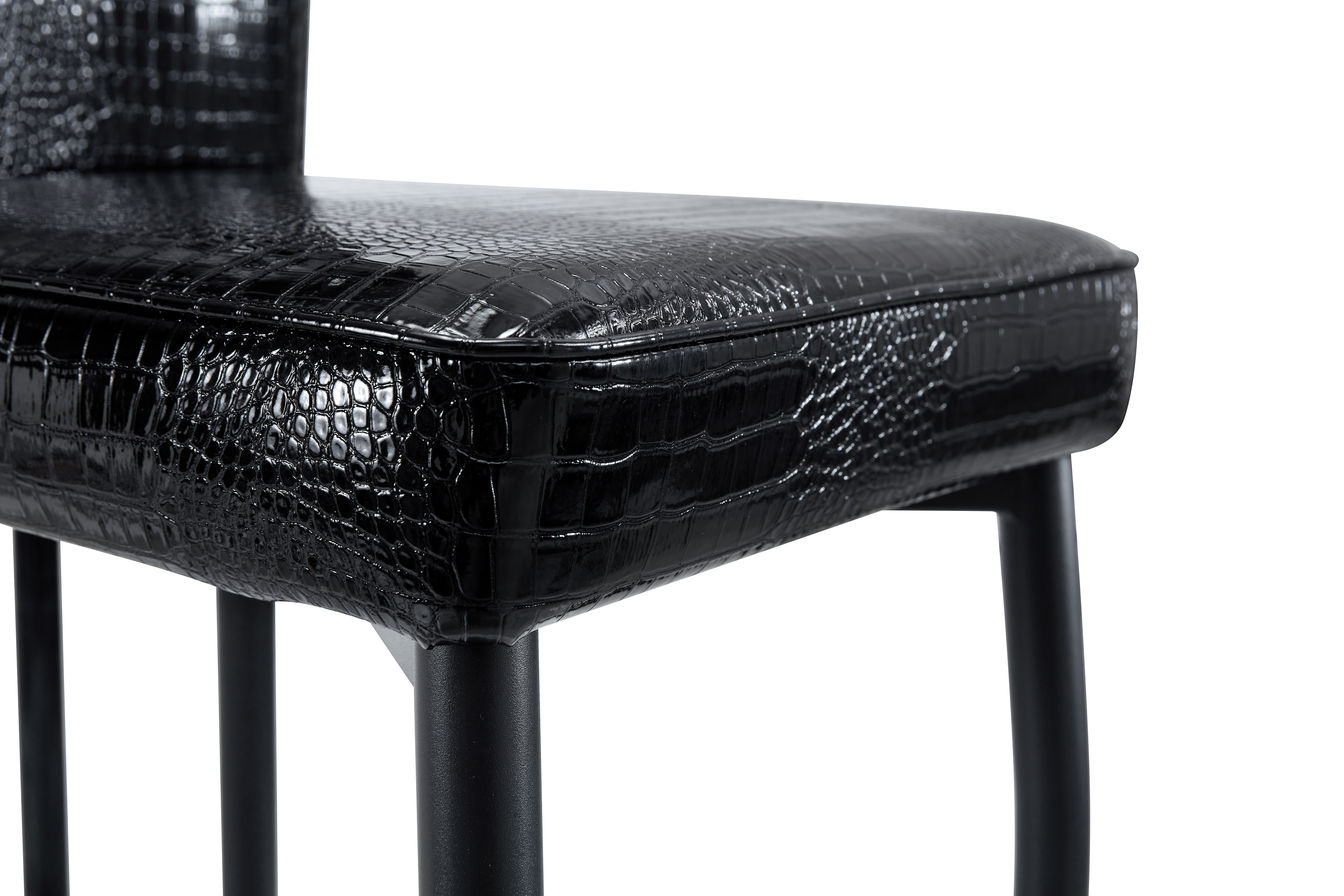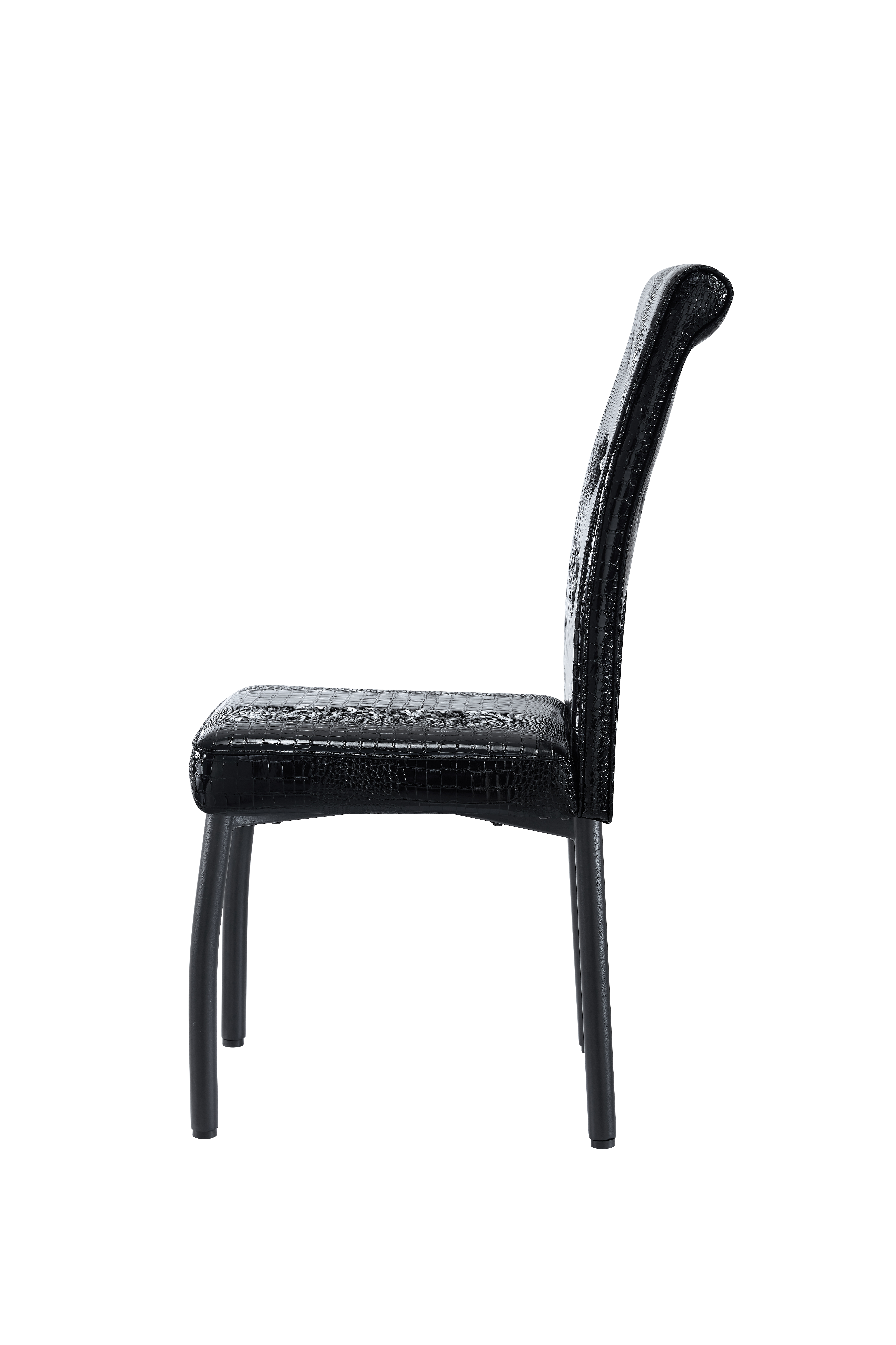Home > A Set Of 4 Black Vintage Crocodile Leather Cushioned Dining Chairs, Featuring Crystal Clasp Design And Artificial Leather Design, Adding A Touch