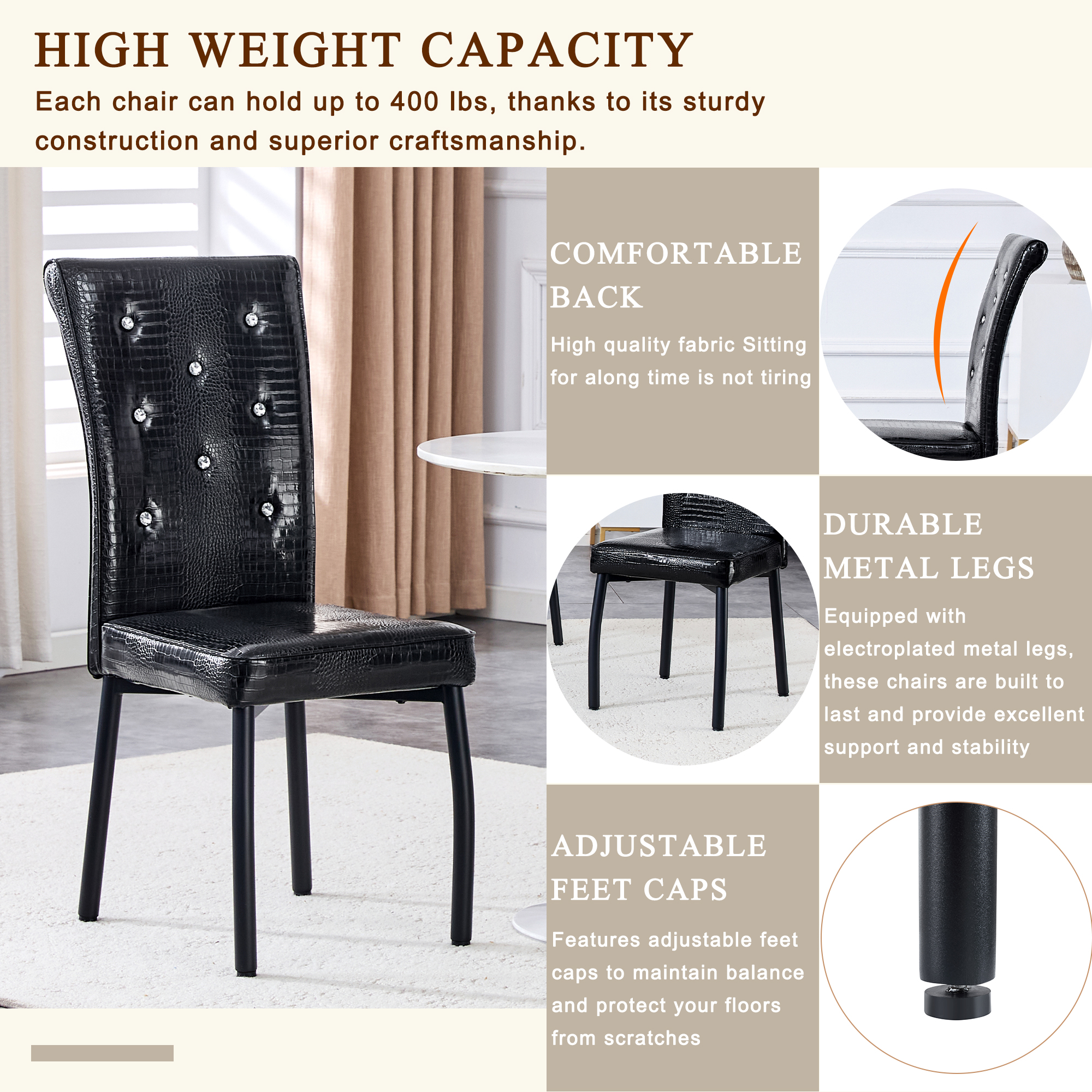 • 【High Weight Capacity】Each chair can hold up to 400 lbs, thanks to its sturdy construction and superior craftsmanship.