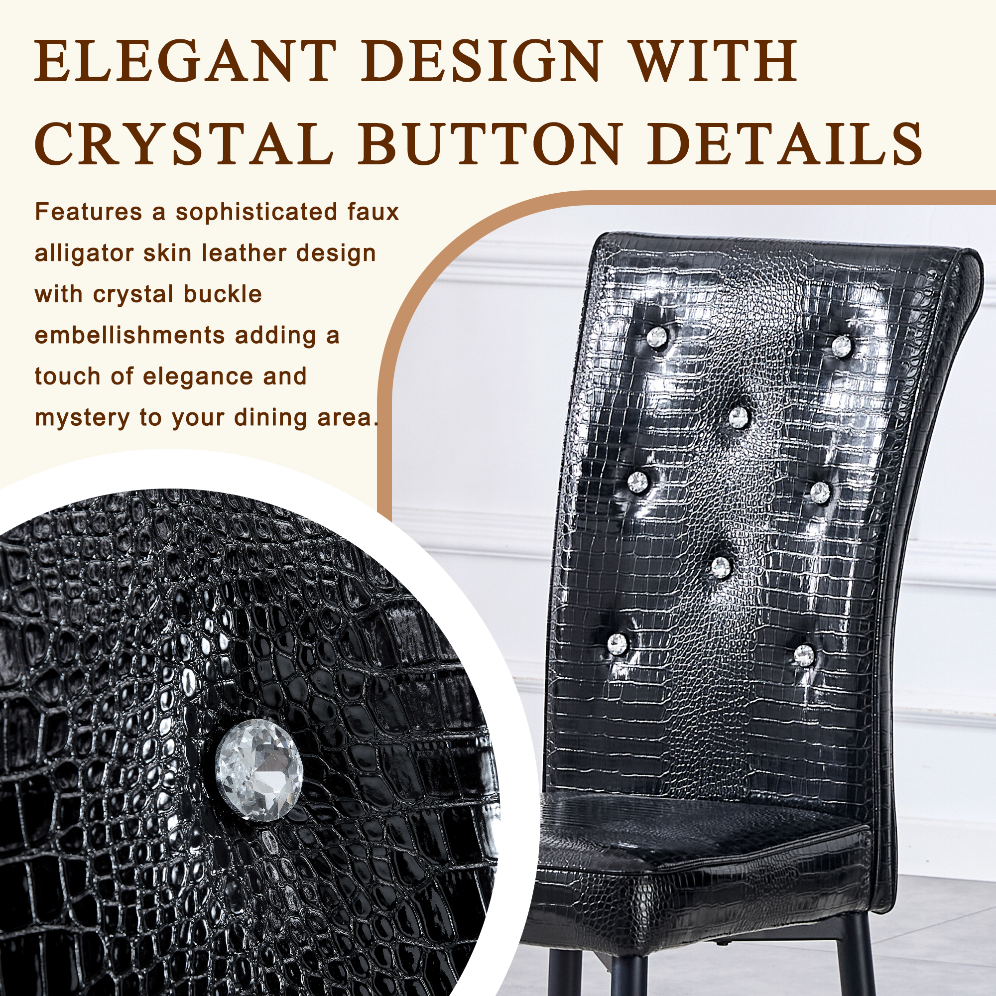 • 【Elegant Design with Crystal Button Details】Features a sophisticated faux alligator skin leather design with crystal buckle embellishments, adding a touch of elegance and mystery to your dining area.
