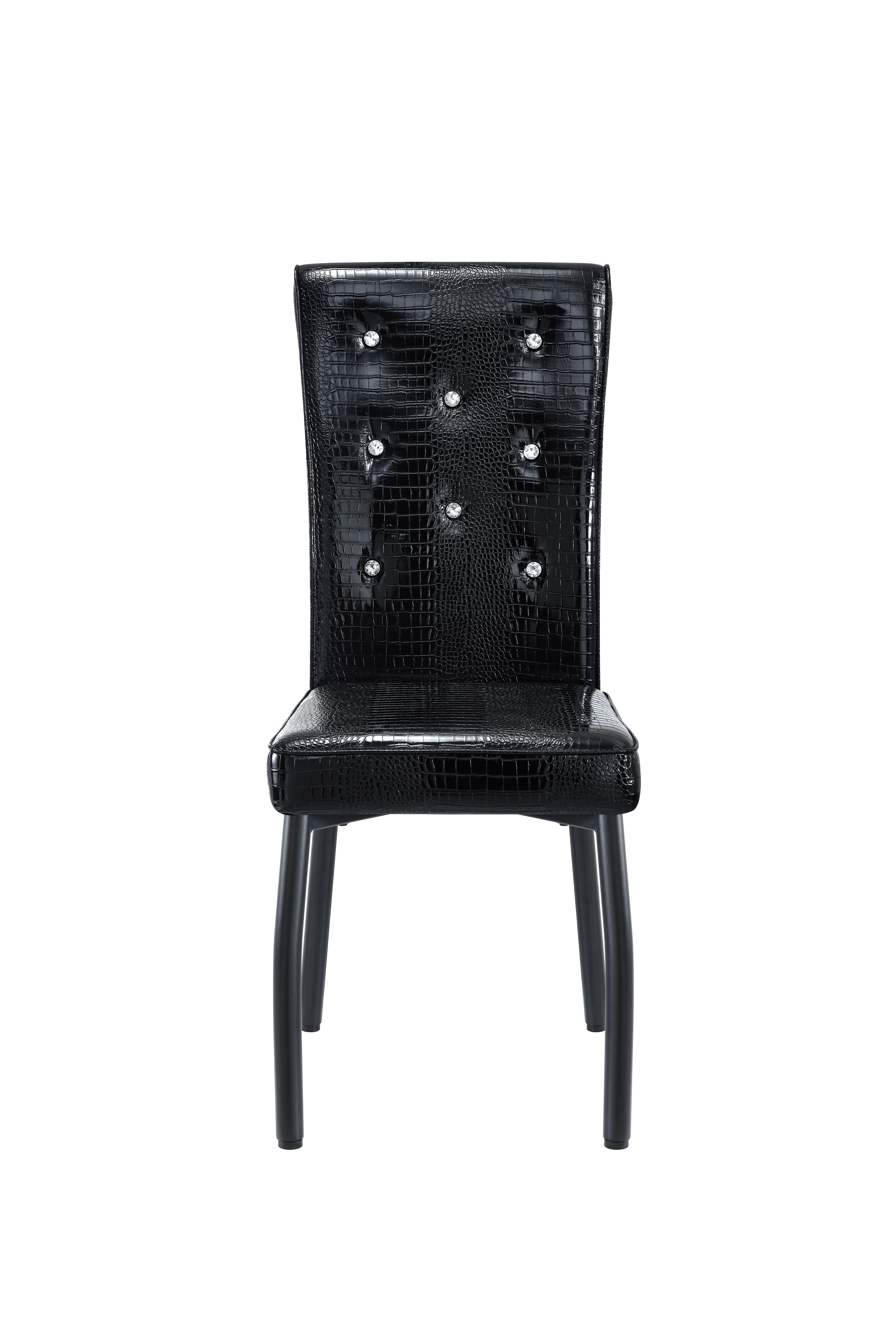 Product Name:A set of 4 black vintage crocodile leather cushioned dining chairs, featuring crystal clasp design and artificial leather design, adding a touch of elegance and mystery to the dining area