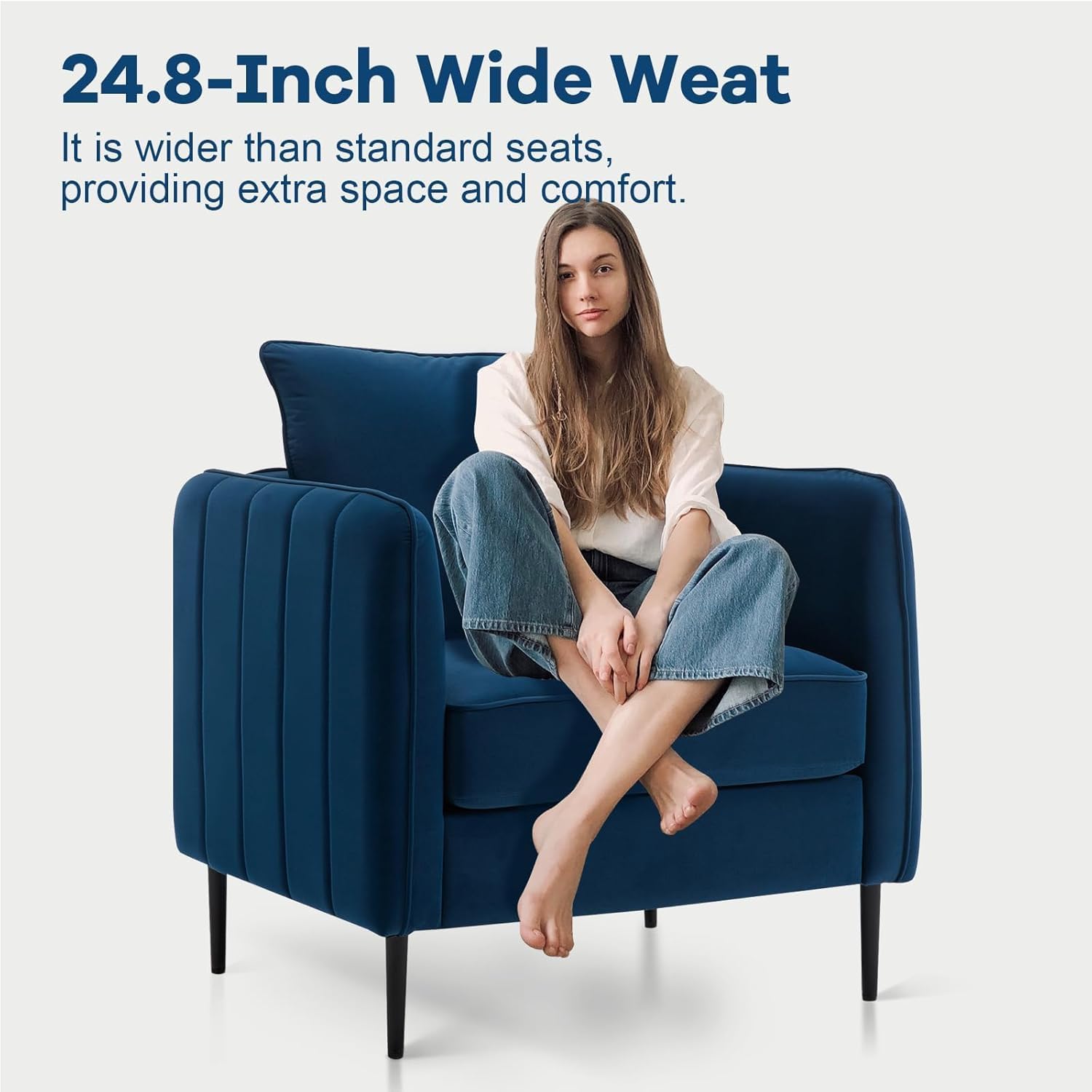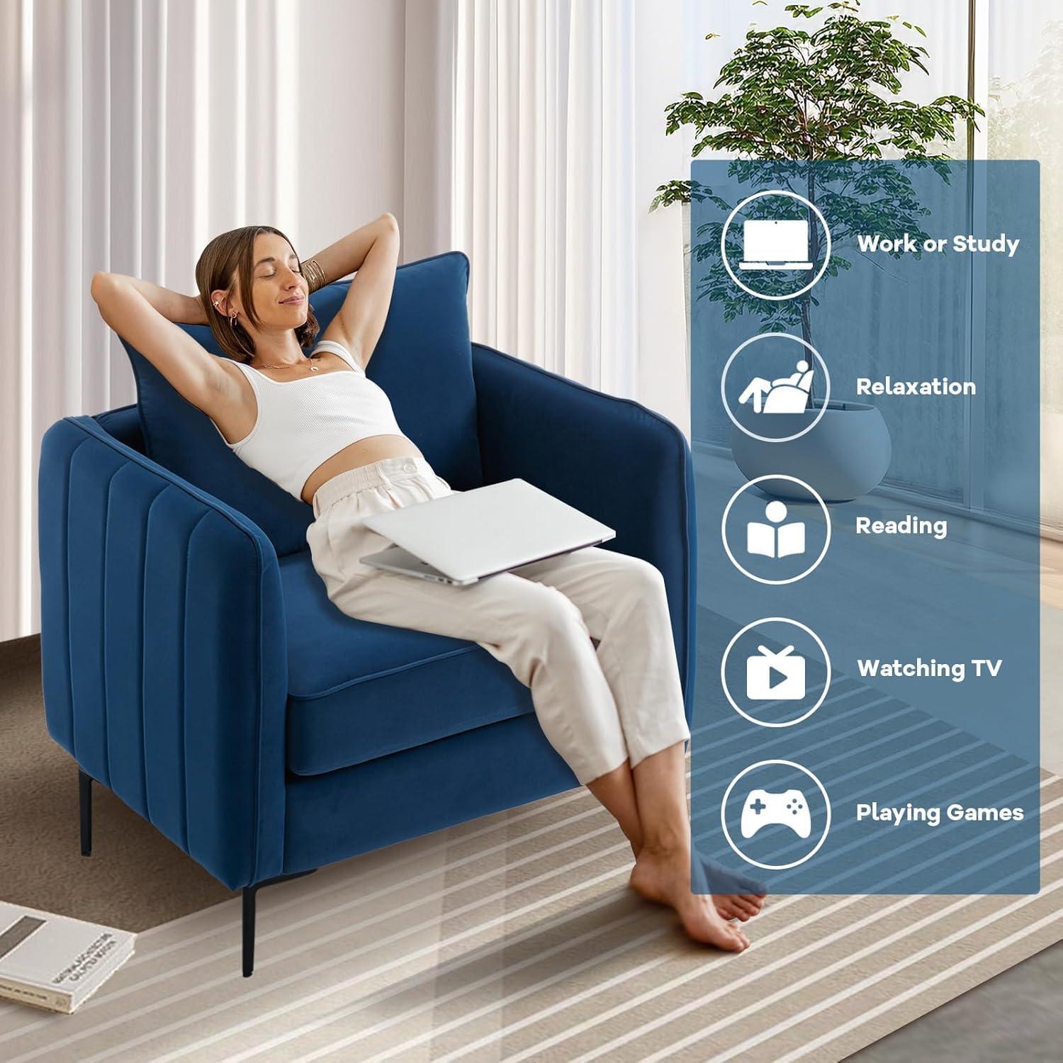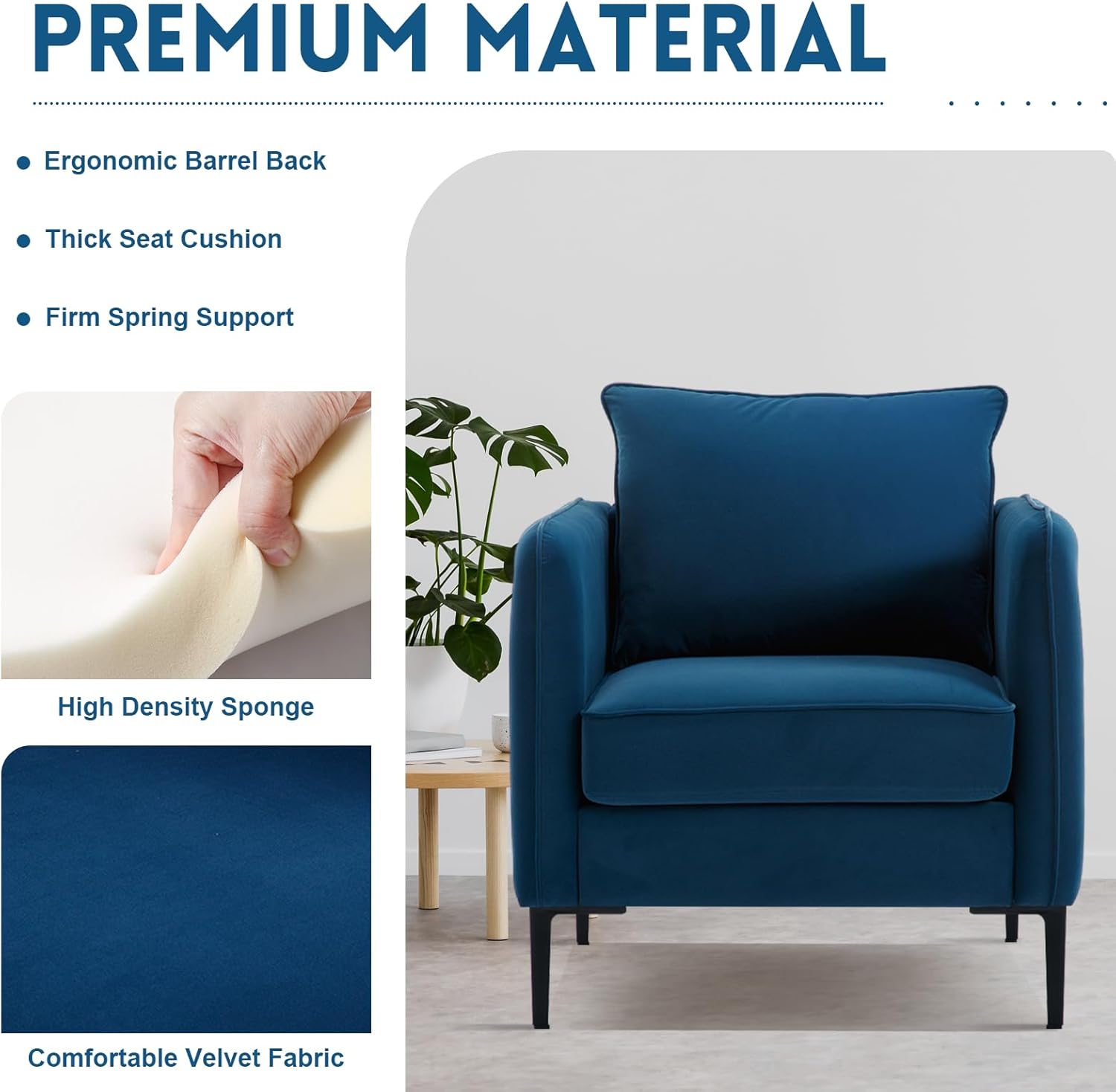 Product Name:Accent Chair for Living Room, Velvet Comfy Single Sofa Chair Mid-Century Modern Armchair with 1 Pillow and Metal Legs for Bedroom Office Reading
