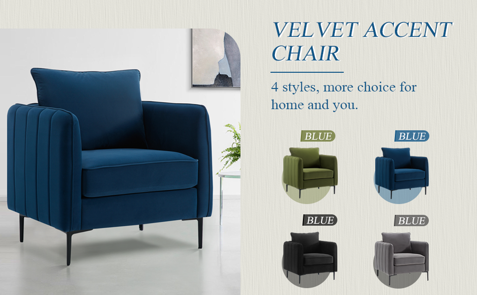 • Luxurious Feel  Our living room chair is made from premium velvet fabric that offers a soft and luxurious touch