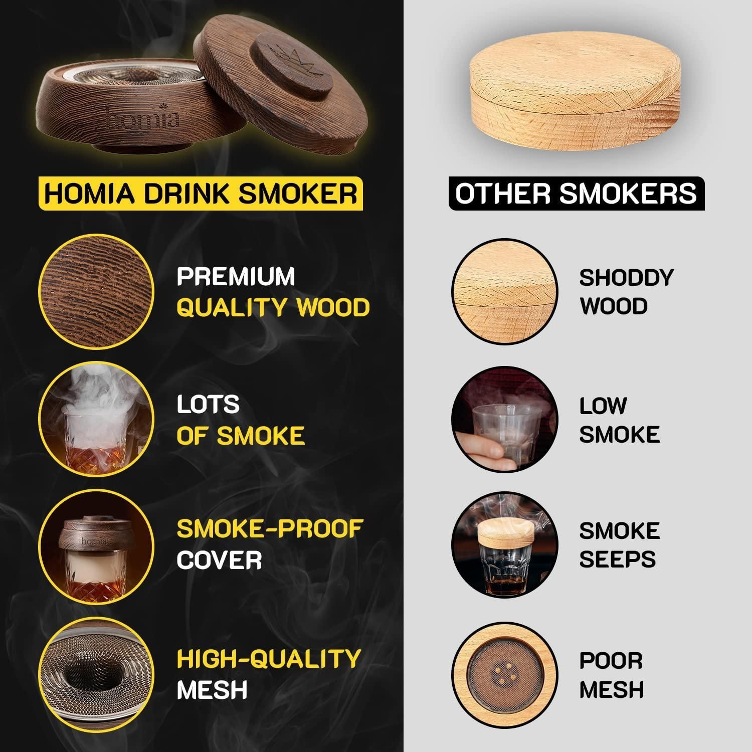 Cocktail Smoker Kit with Wood Chips Premium Quality Wood Wooden Bar Smoker for Cocktails Old Fashioned Cocktails Whiskey or Bourbon Drinks