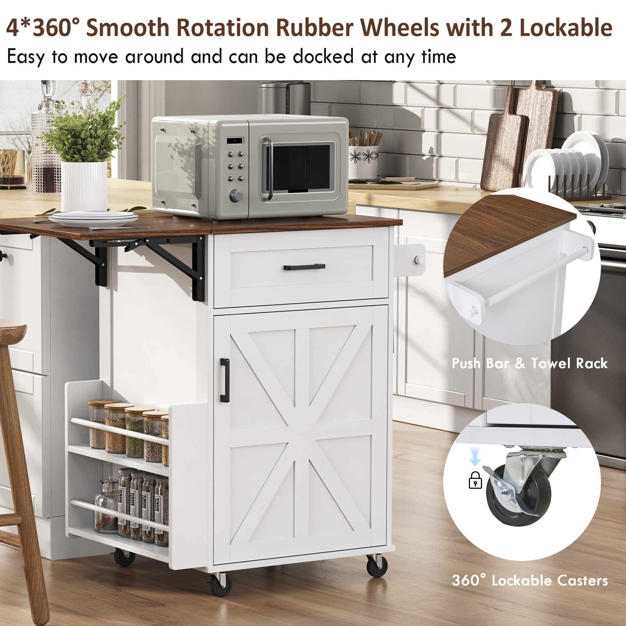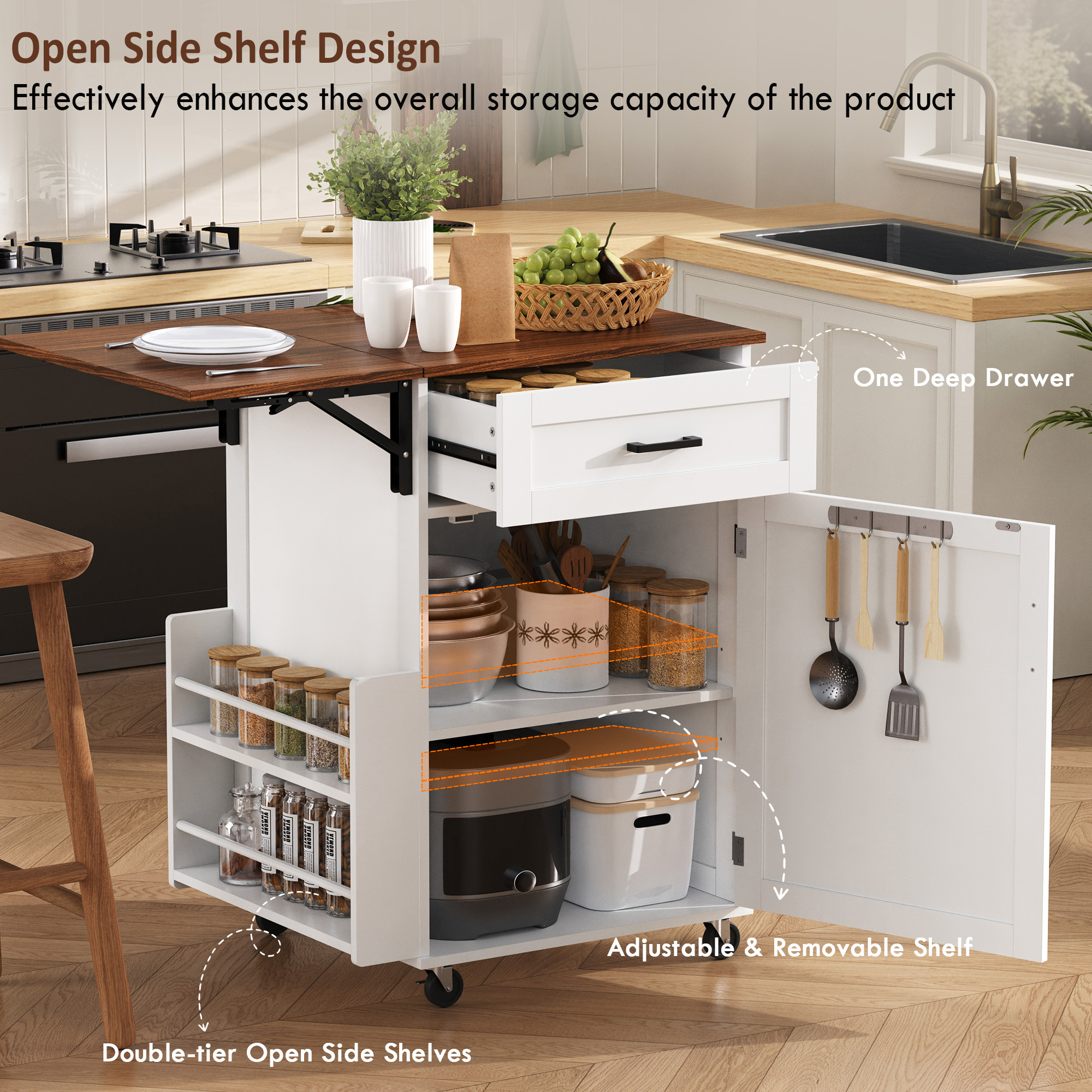 K&K 39.3 Farmhouse Kitchen Island With Drop Leaf, Kitchen Storage Island With Open Side Rack, One Drawer, Towel Rack, Rolling Kitchen Cart With