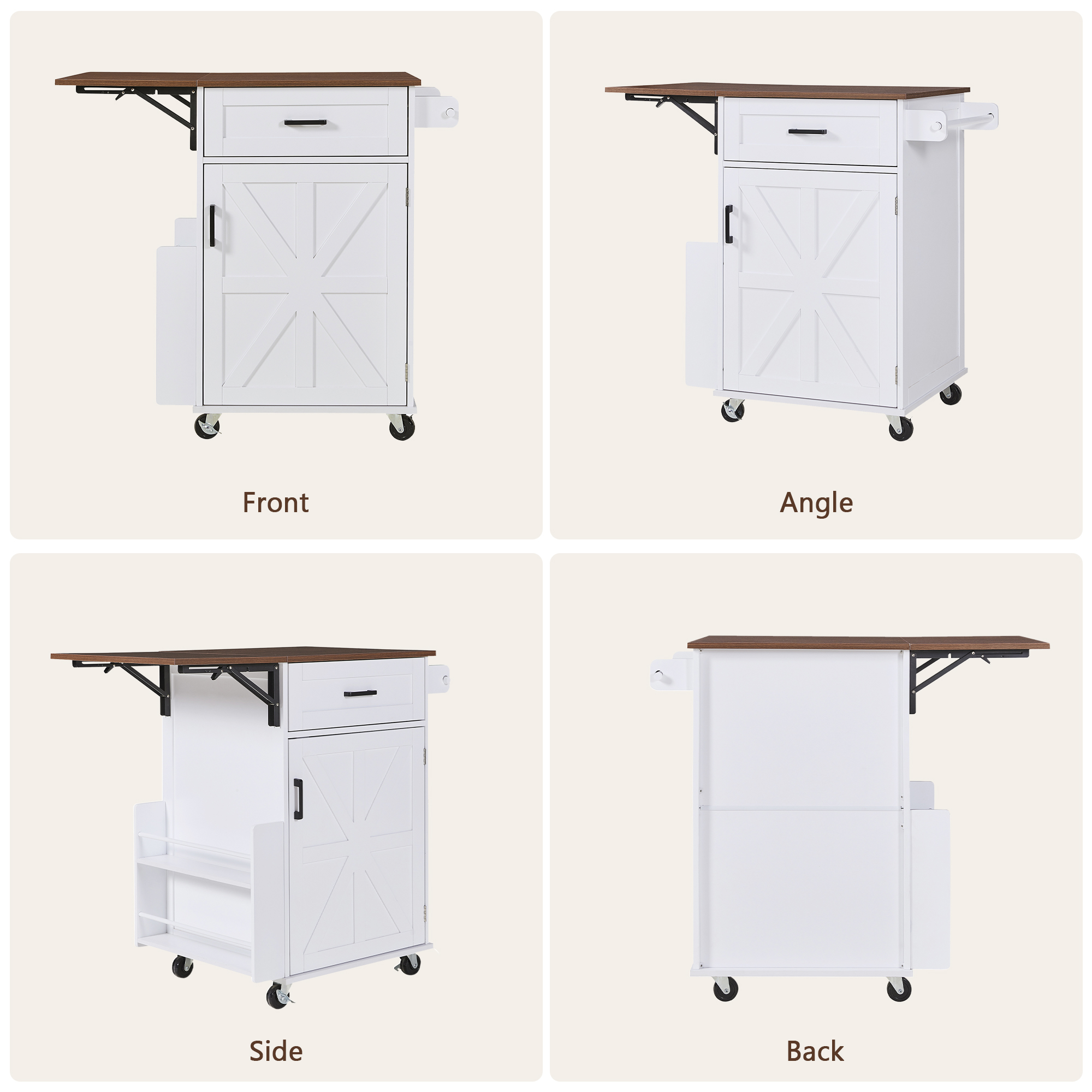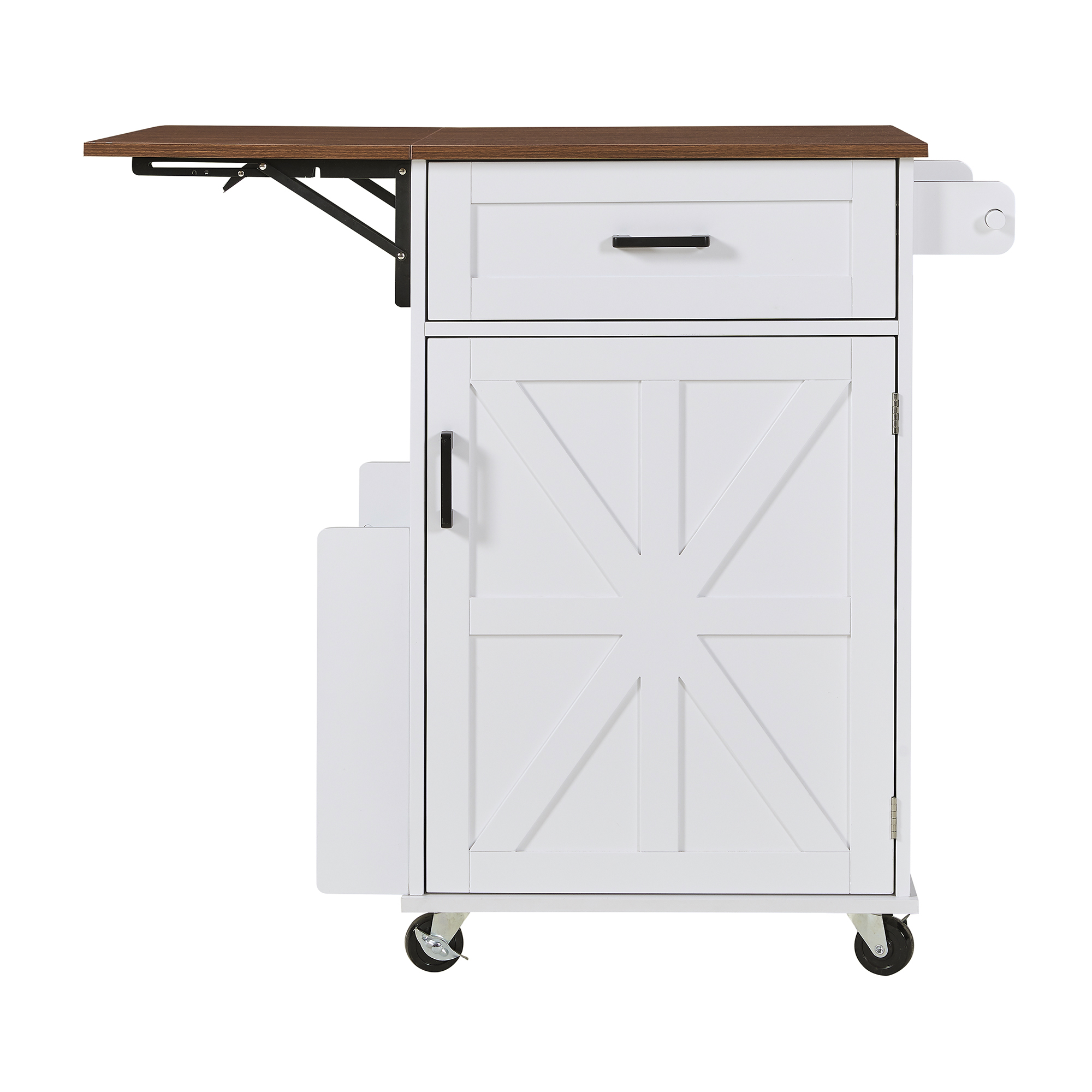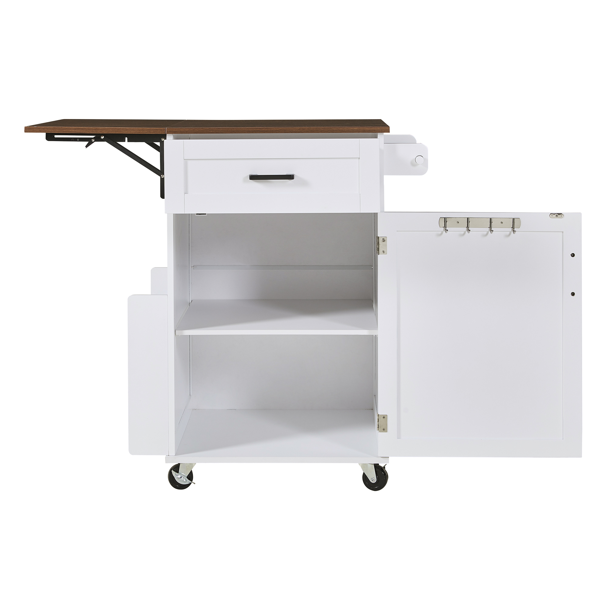 Product Name:K&K 39.3" Farmhouse Kitchen Island with Drop Leaf, Kitchen Storage Island with Open Side Rack, One Drawer, Towel Rack, Rolling Kitchen Cart with Lockable Wheels for Lawn Garden, White