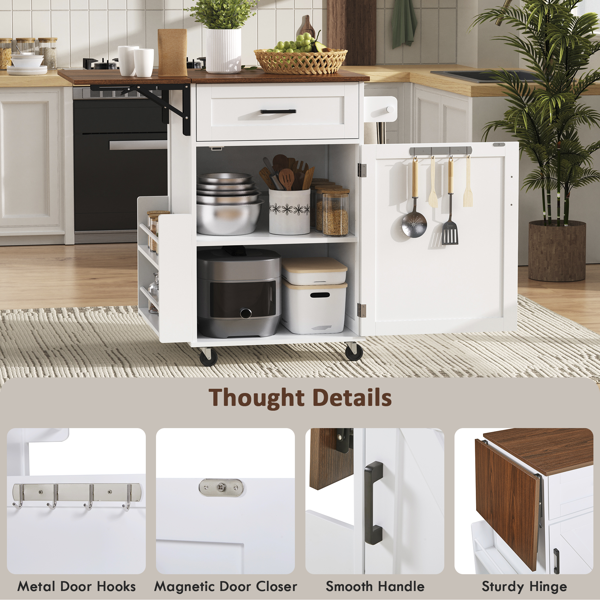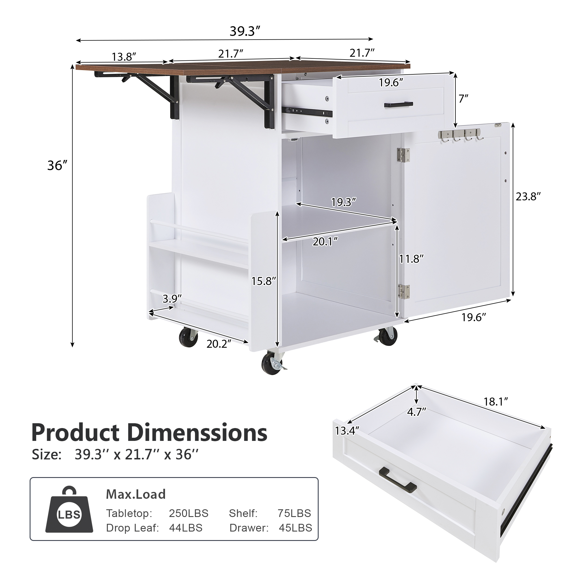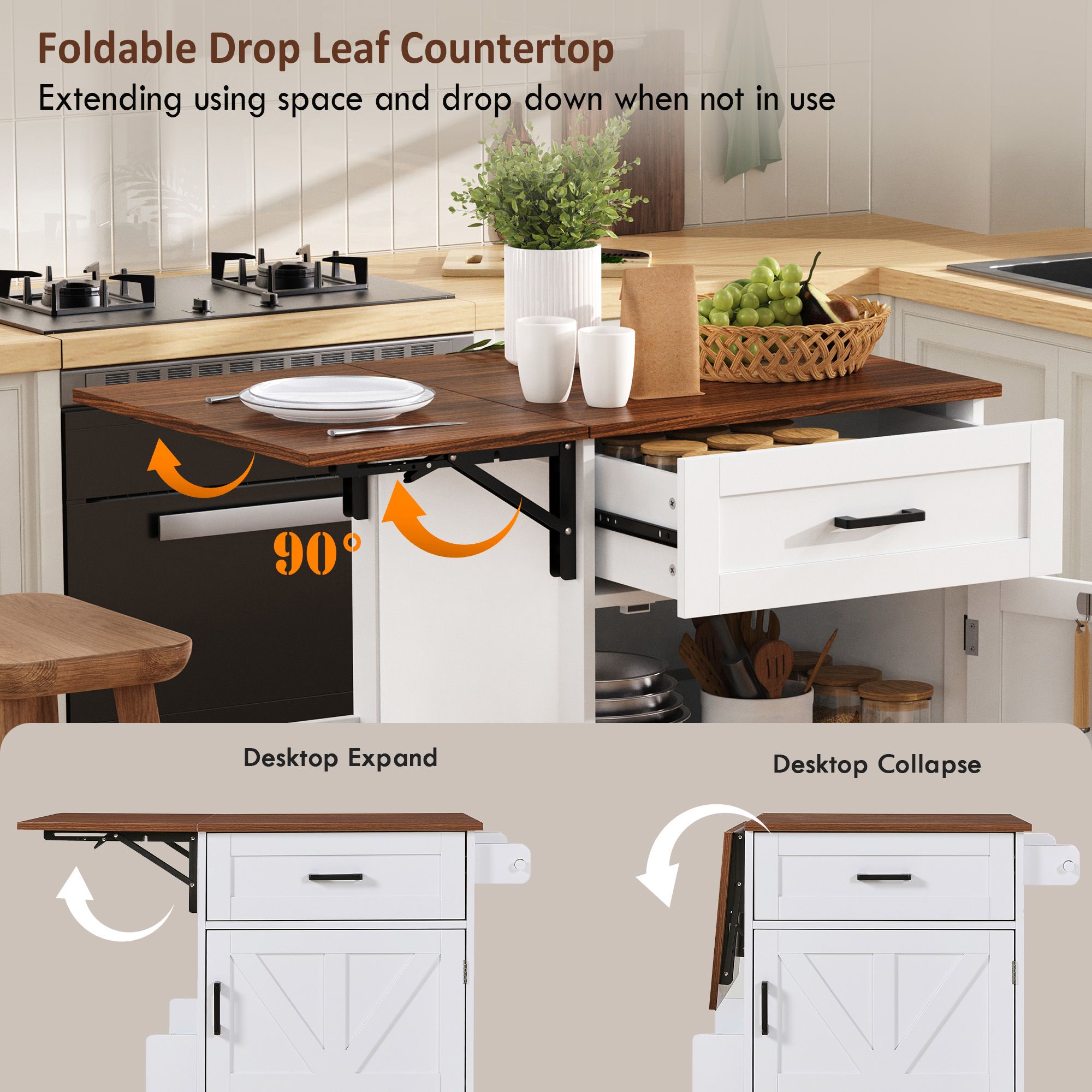 • [Foldable Drop Leaf Design] This kitchen island comes with an excellent drop leaf design, serving as an intelligent and efficient solution for compact kitchens or dining areas. The inclusion of the drop leaf table allows for effortless folding when not in use, thereby optimizing the utilization of available space.