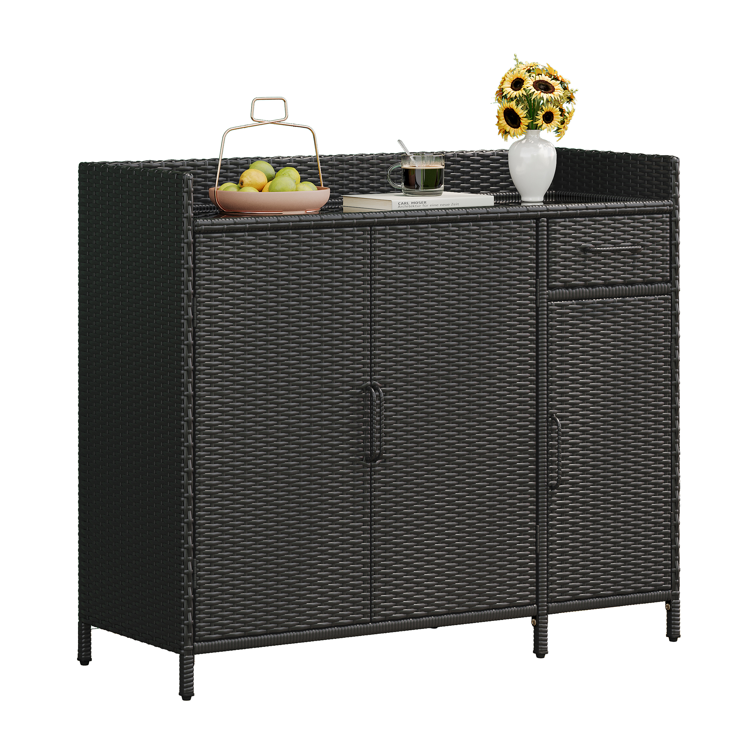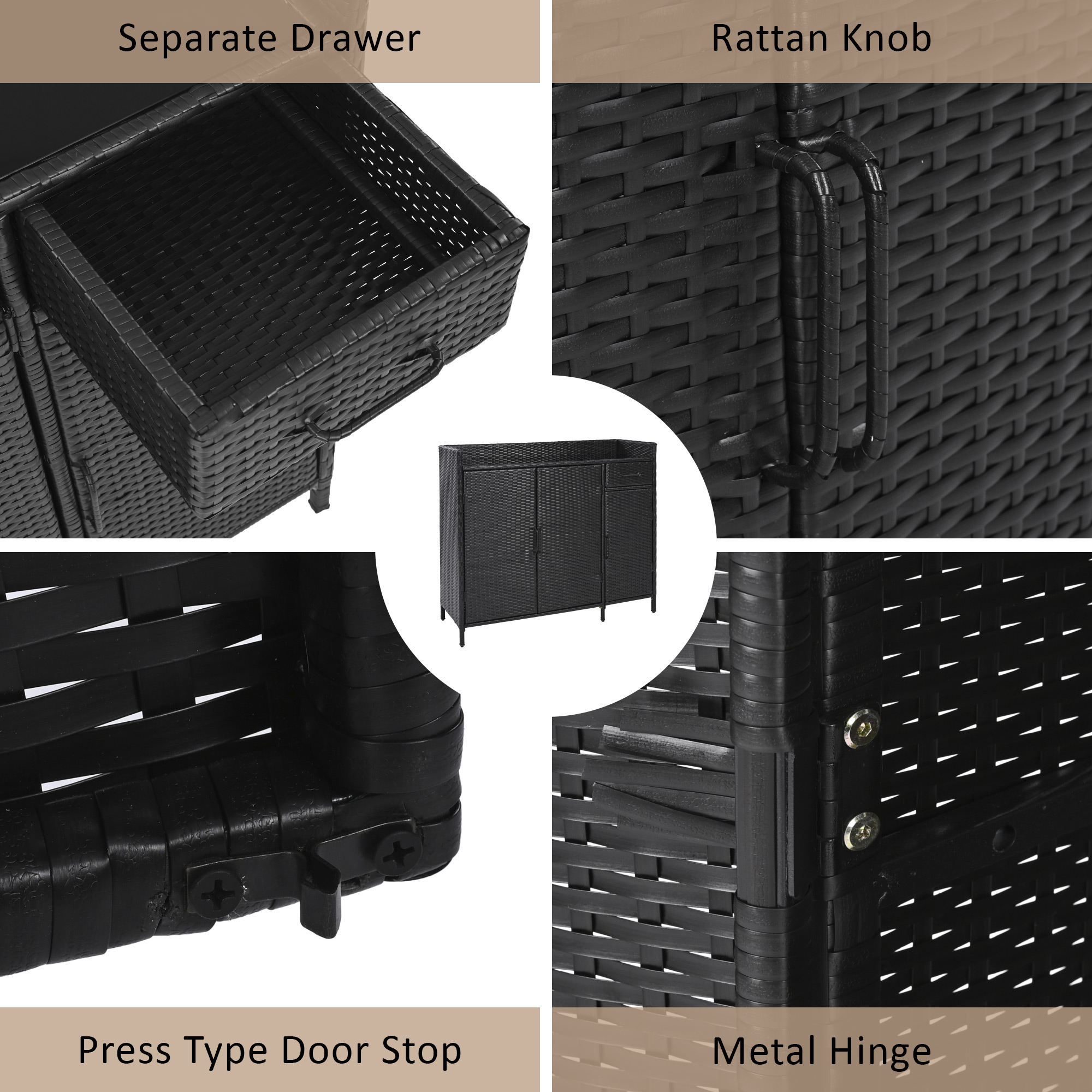 • [Durable Material] This outdoor storage cabinet is made of all-weather wicker rattan to withstand outdoor conditions. In addition to resisting corrosion and damage caused by the sun, the internal steel frame connection structure can support long-lasting use and provide you with convenience for a long time.