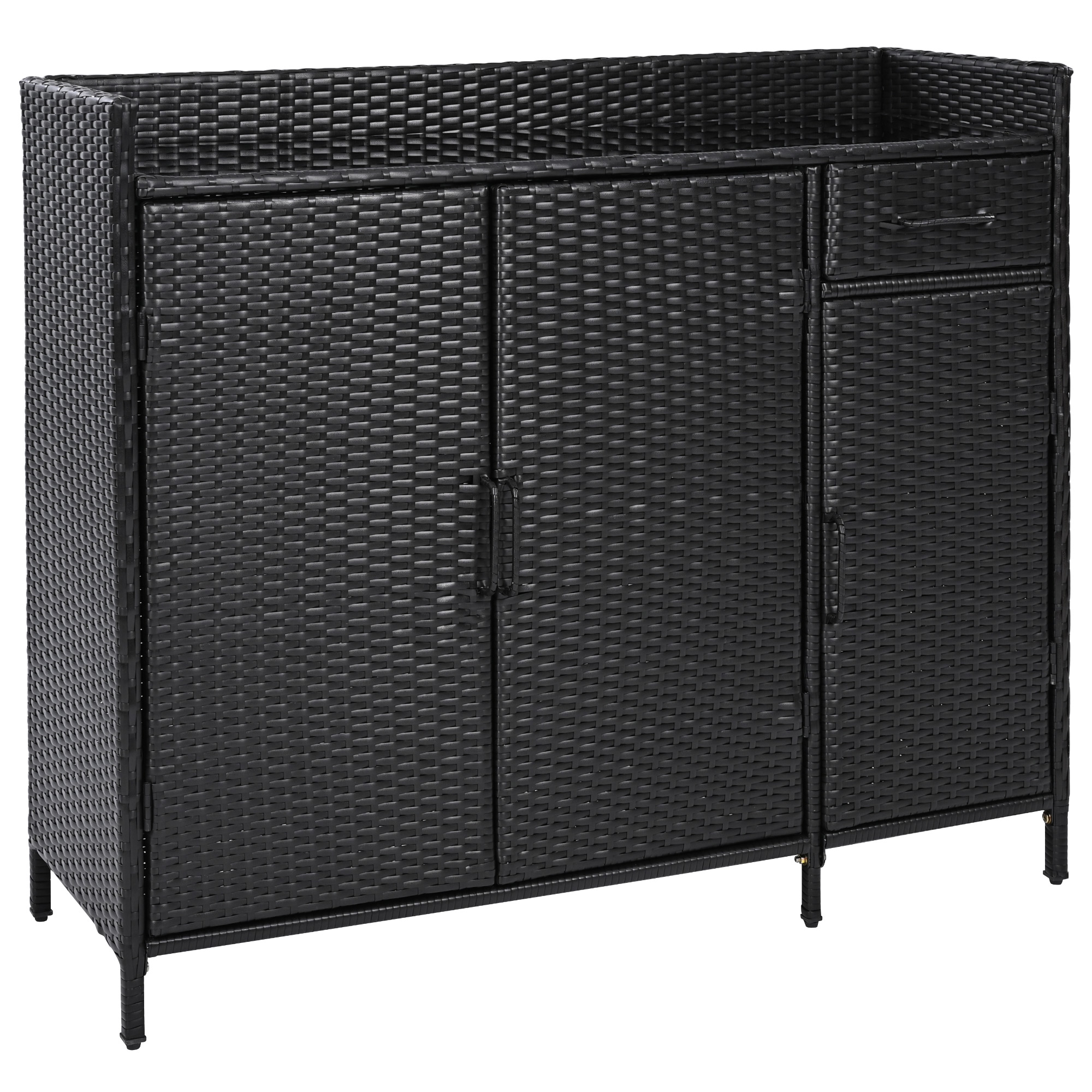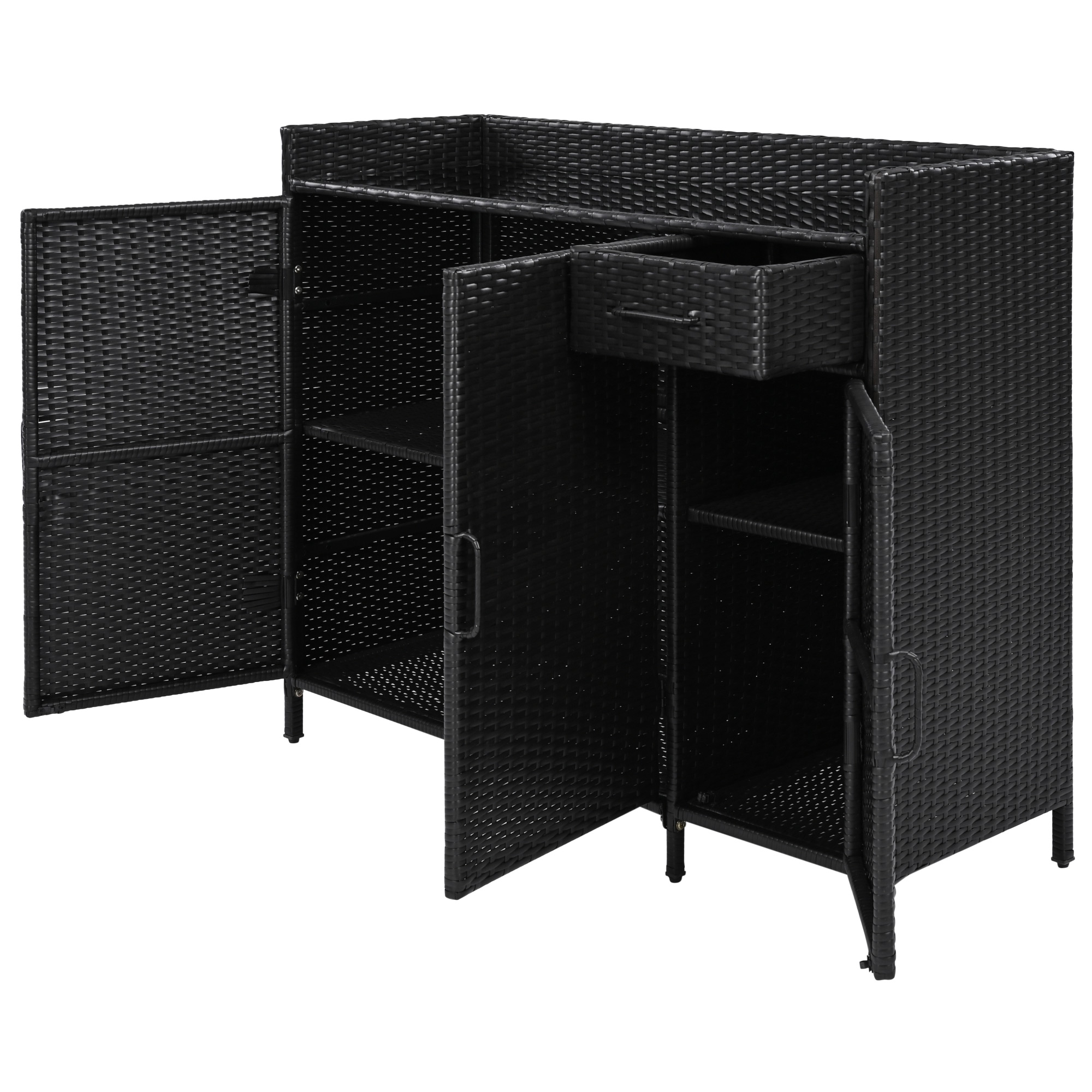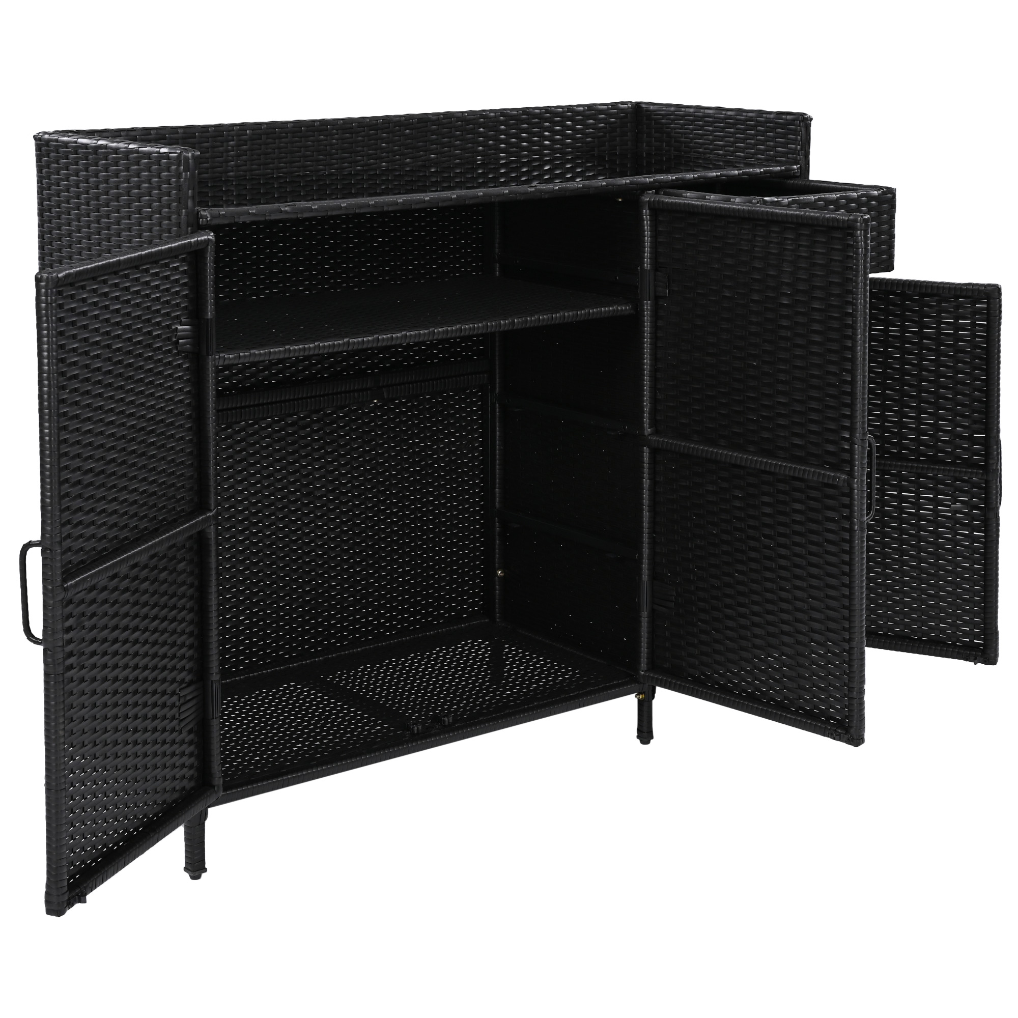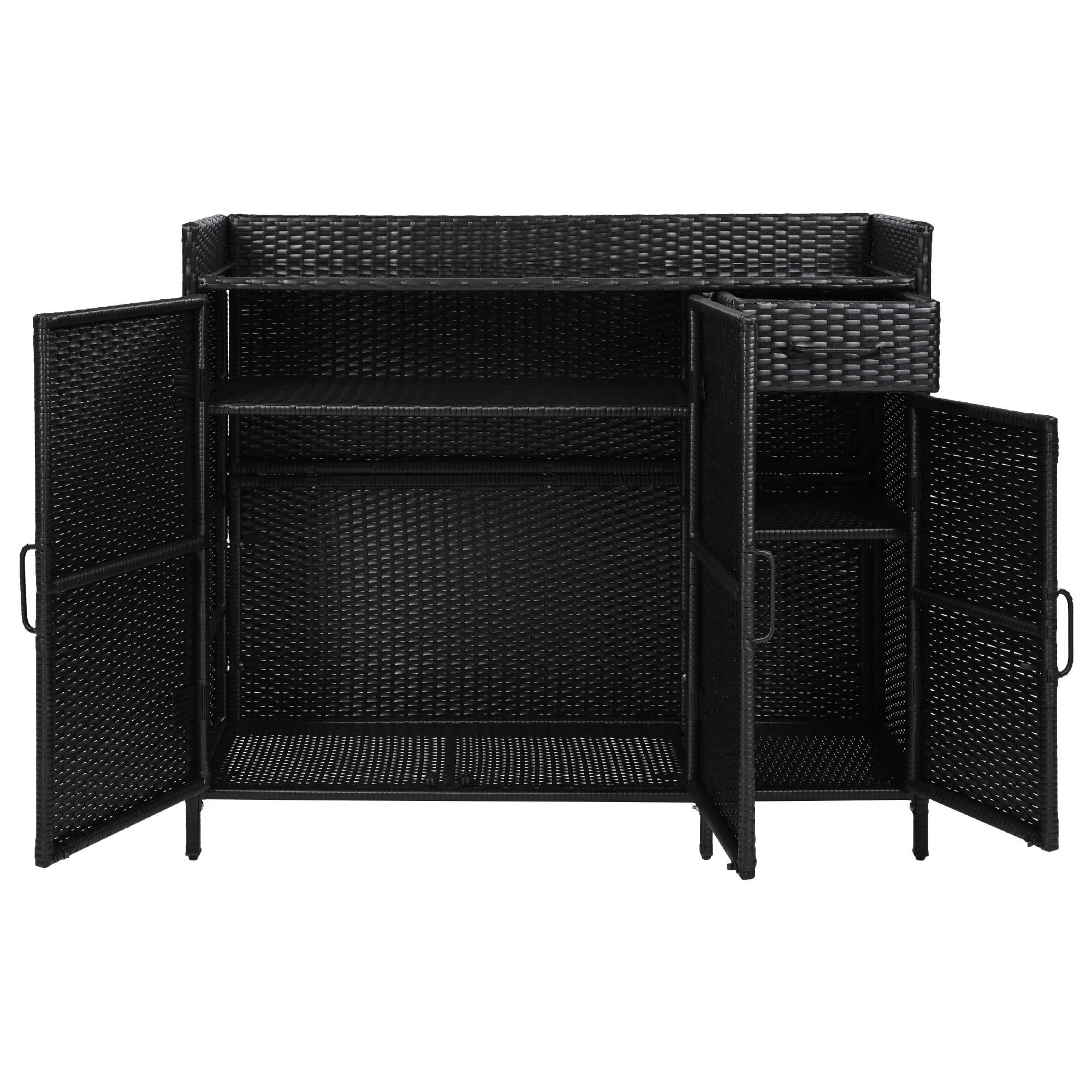 Home > K&K 47.5 W Wicker Outdoor Storage Cabinet With Tempered Glass Desktop, Weather Proof Rattan Bar Table With Three Doors, Adjustable Shelf, And One
