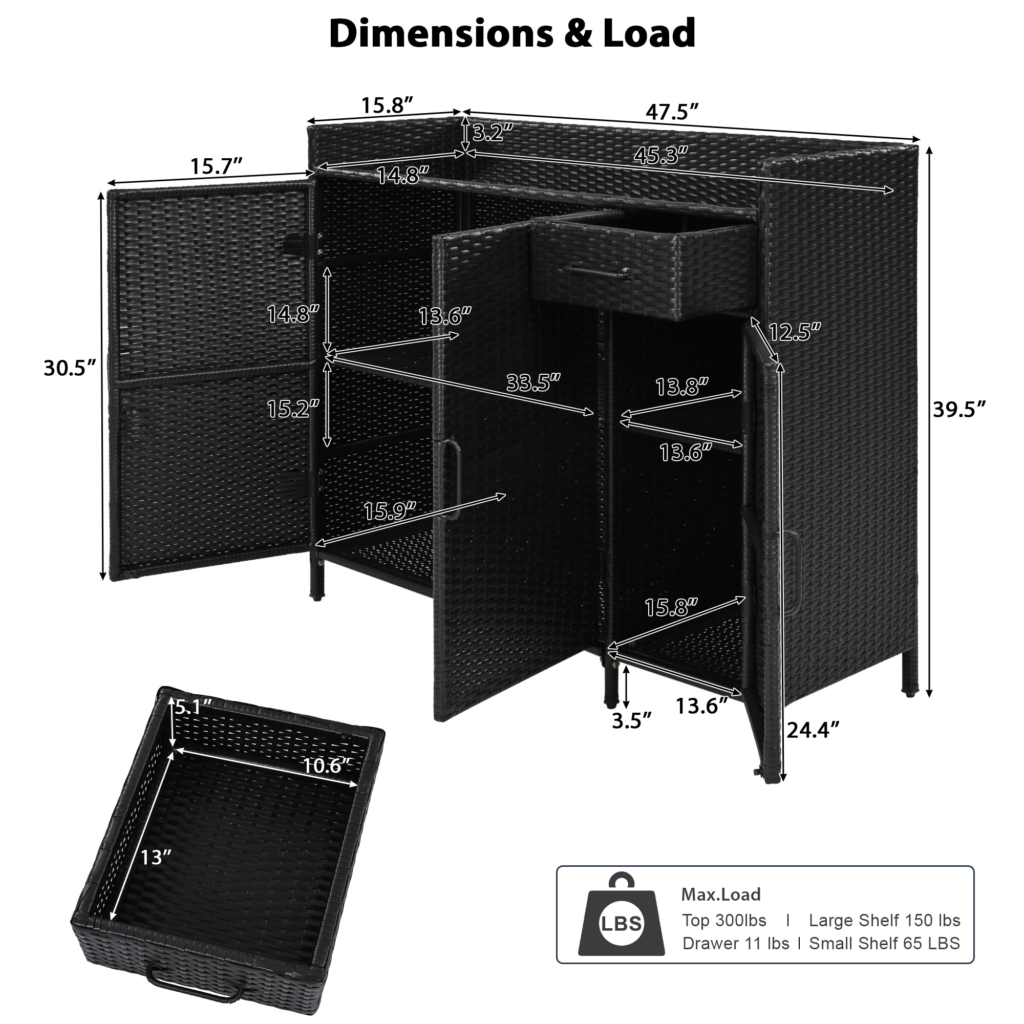 • [Ample Storage Space] This 47.5'' wide storage cabinet has a very generous amount of storage space. It features a 3-tier adjustable shelf design for flexible storage of items of different heights. You can place items at different heights depending on the size of your storage needs. In addition, a separate small storage cabinet and a drawer on the right side are also suitable for a variety of situations, allowing you to take your pick.