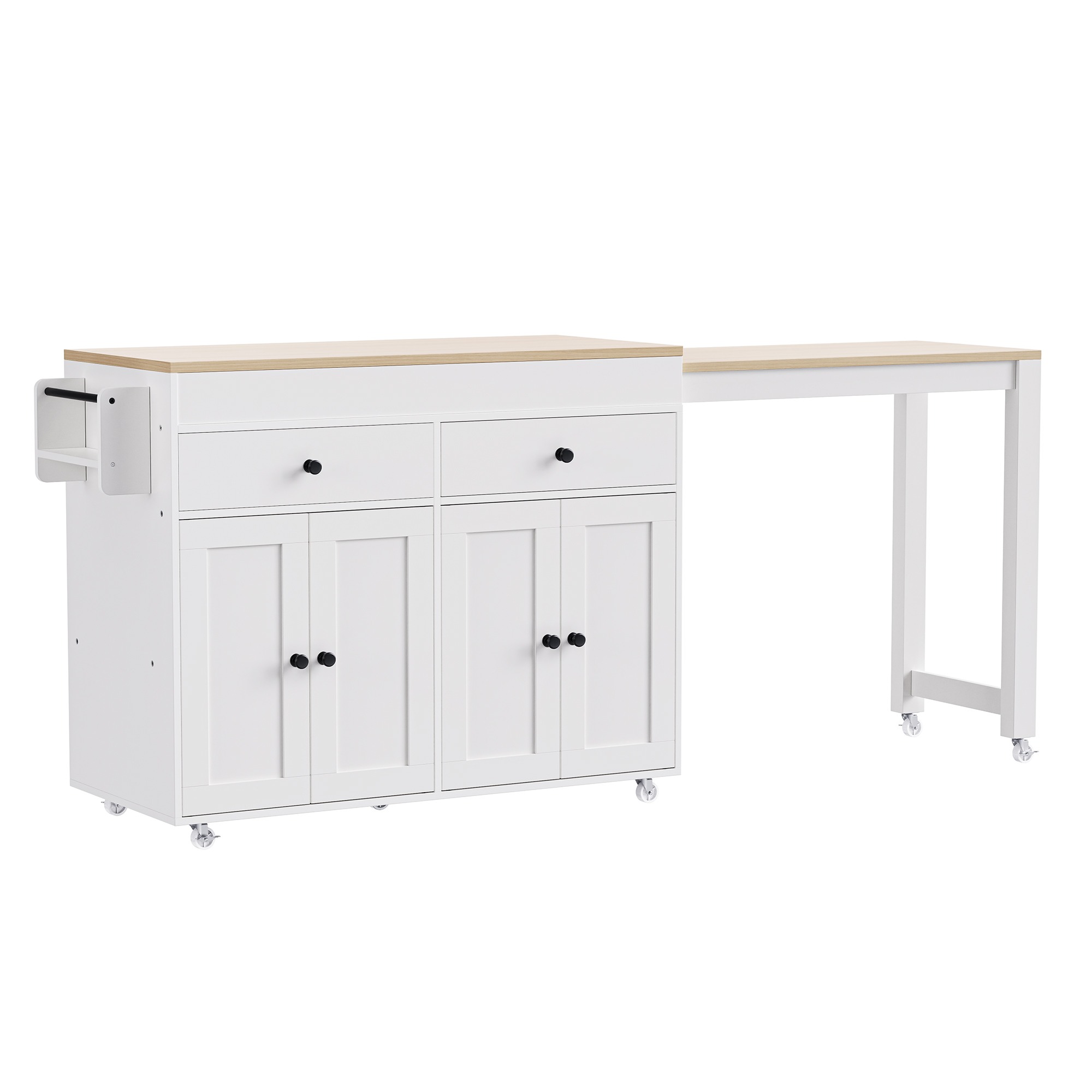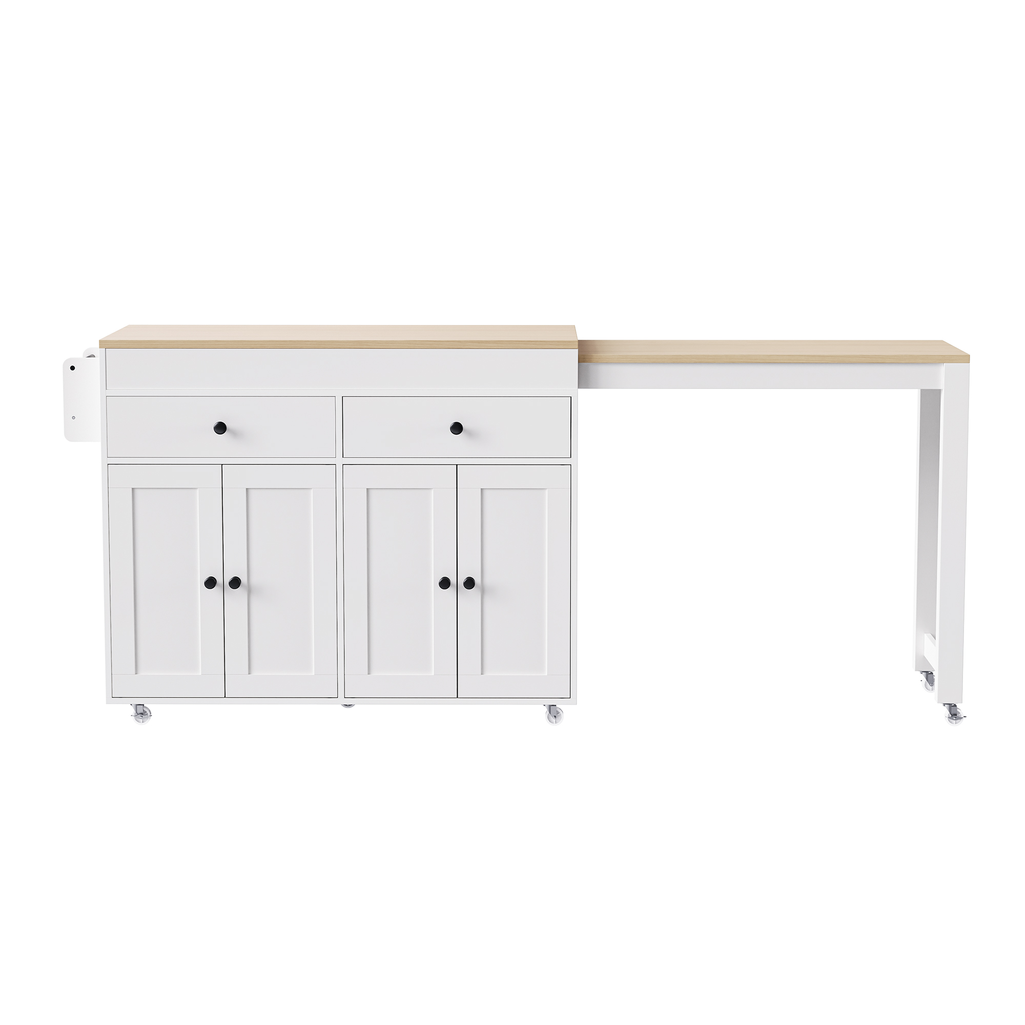 Product Name:K&K 74.5 inch Kitchen Island with Extendable Dining Table , Rolling Kitchen Island on Wheels with Spice Rack and 2 Drawers, 4 Door Cabinet, for Kitchen, Dining Room, White (One Package)