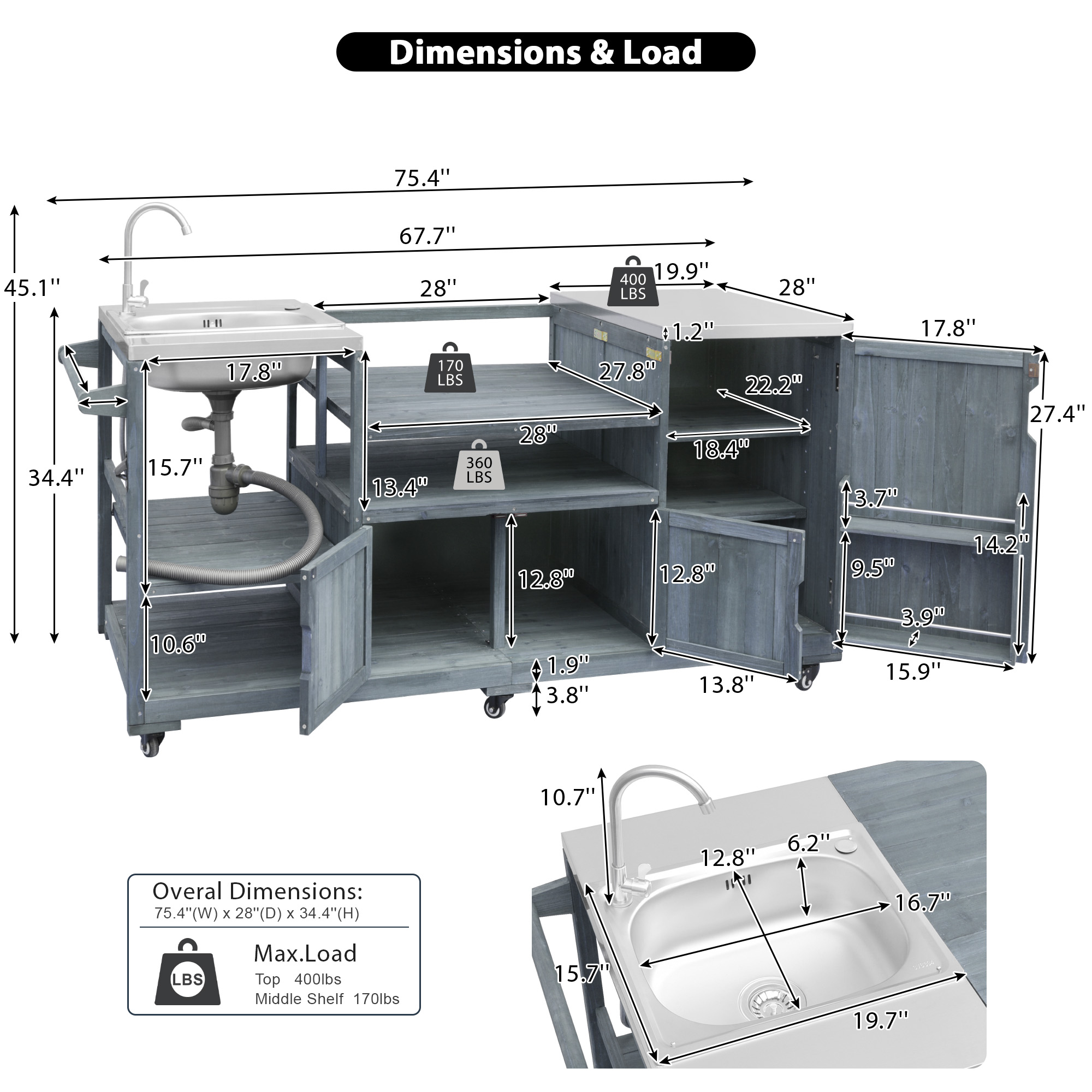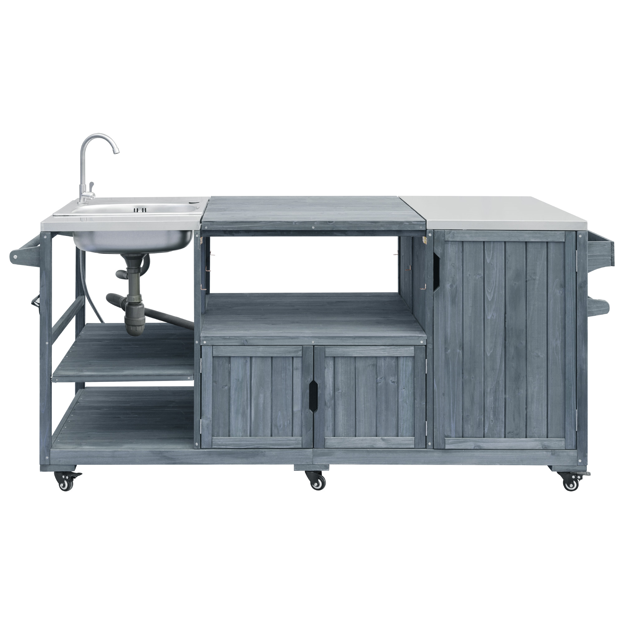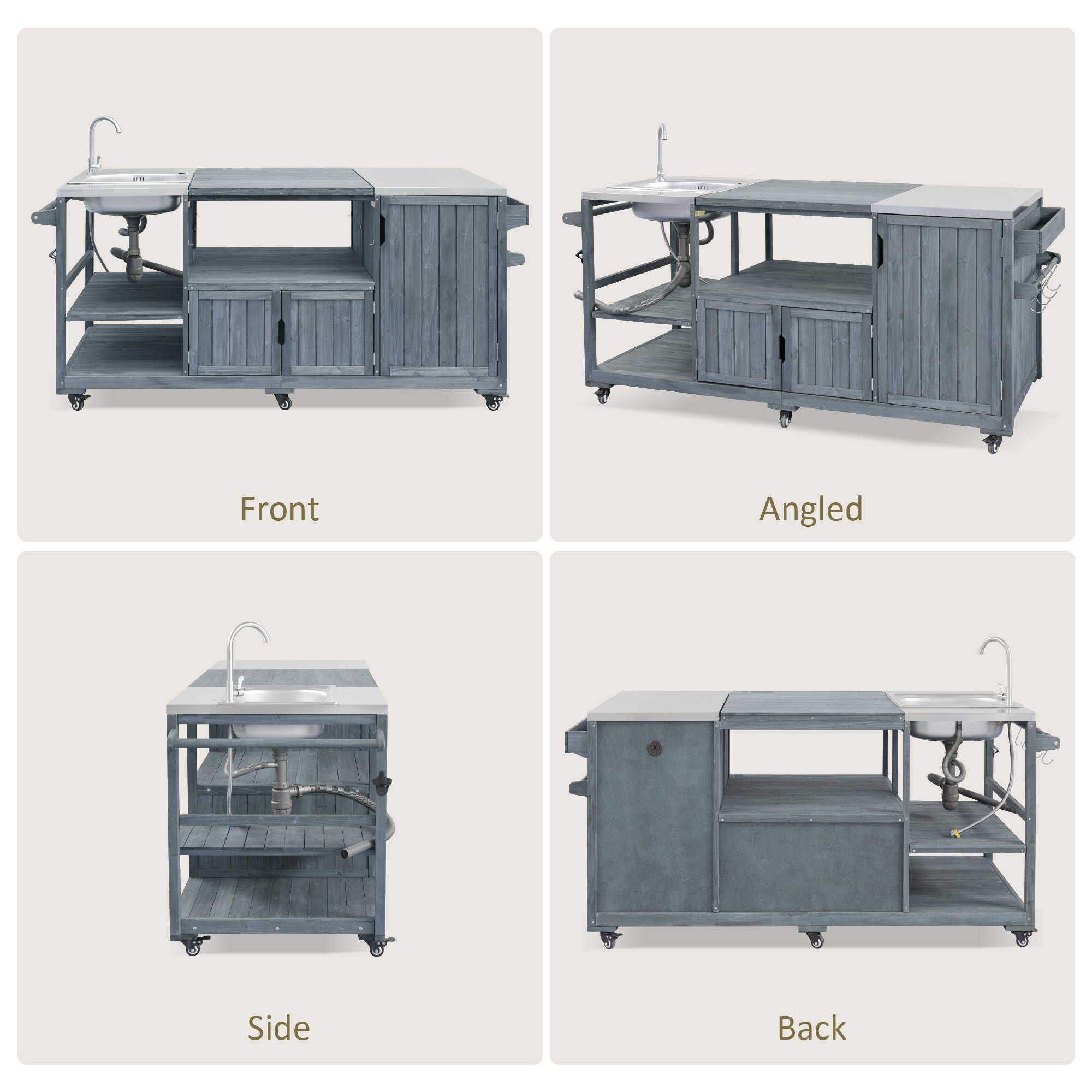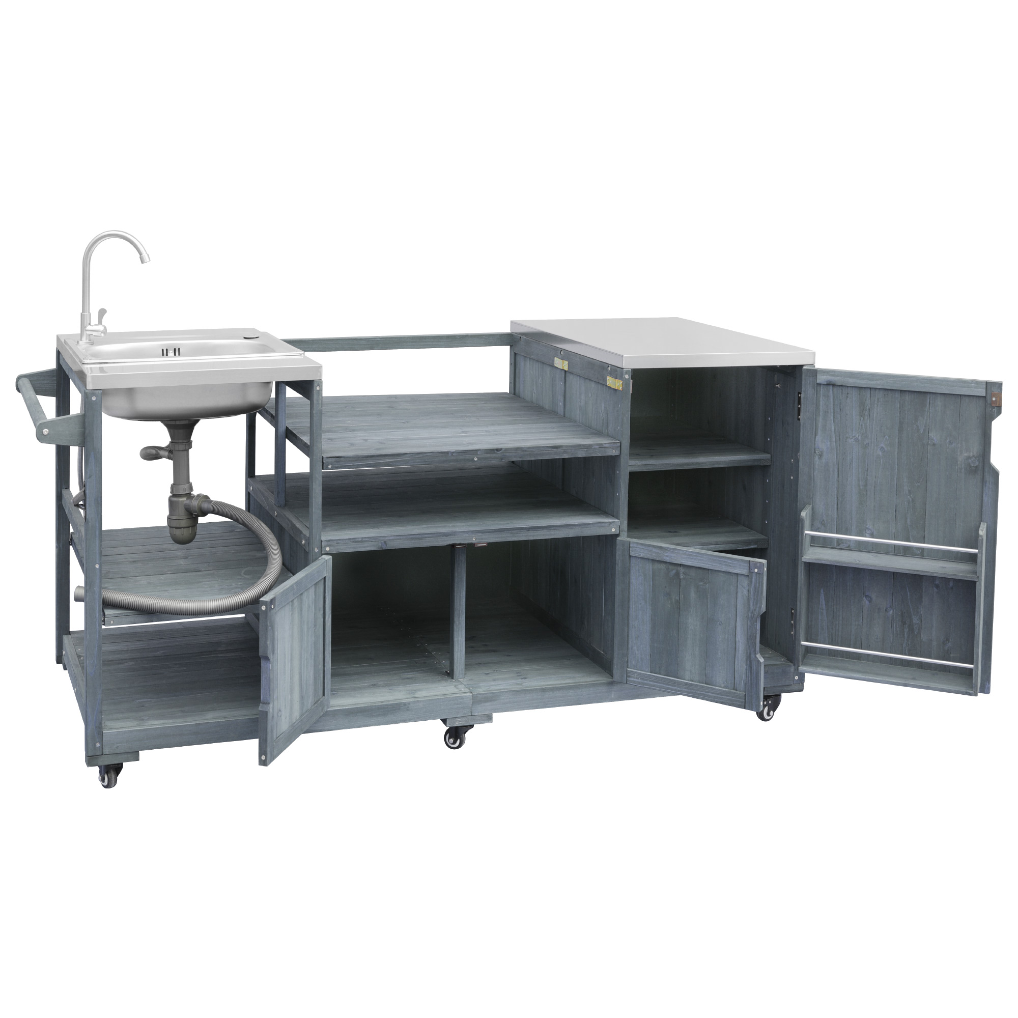 Special Feature:Stainless Steel Freestanding Sink/201 Stainless Steel Top/100% Solid Fir Wood/ Modular Design