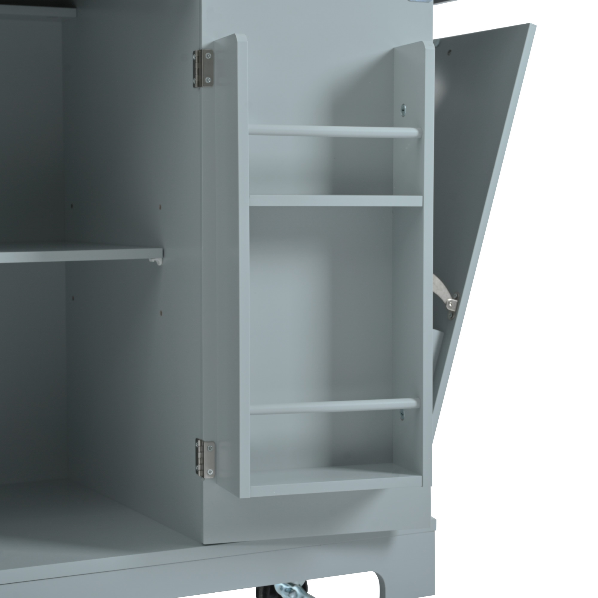 • [Mobile&Stationary Kitchen Island] This mobile kitchen island is equipped with five hidden wheels, two of which are lockable at the bottom. Unlike other products that prioritize appearance over functionality, users can easily access and adjust the wheel position to secure them in place. The option to forgo the installation of wheels is available if mobility is not required, as the cabinet's sturdy base provides ample support for up to 300 lbs without any instability.