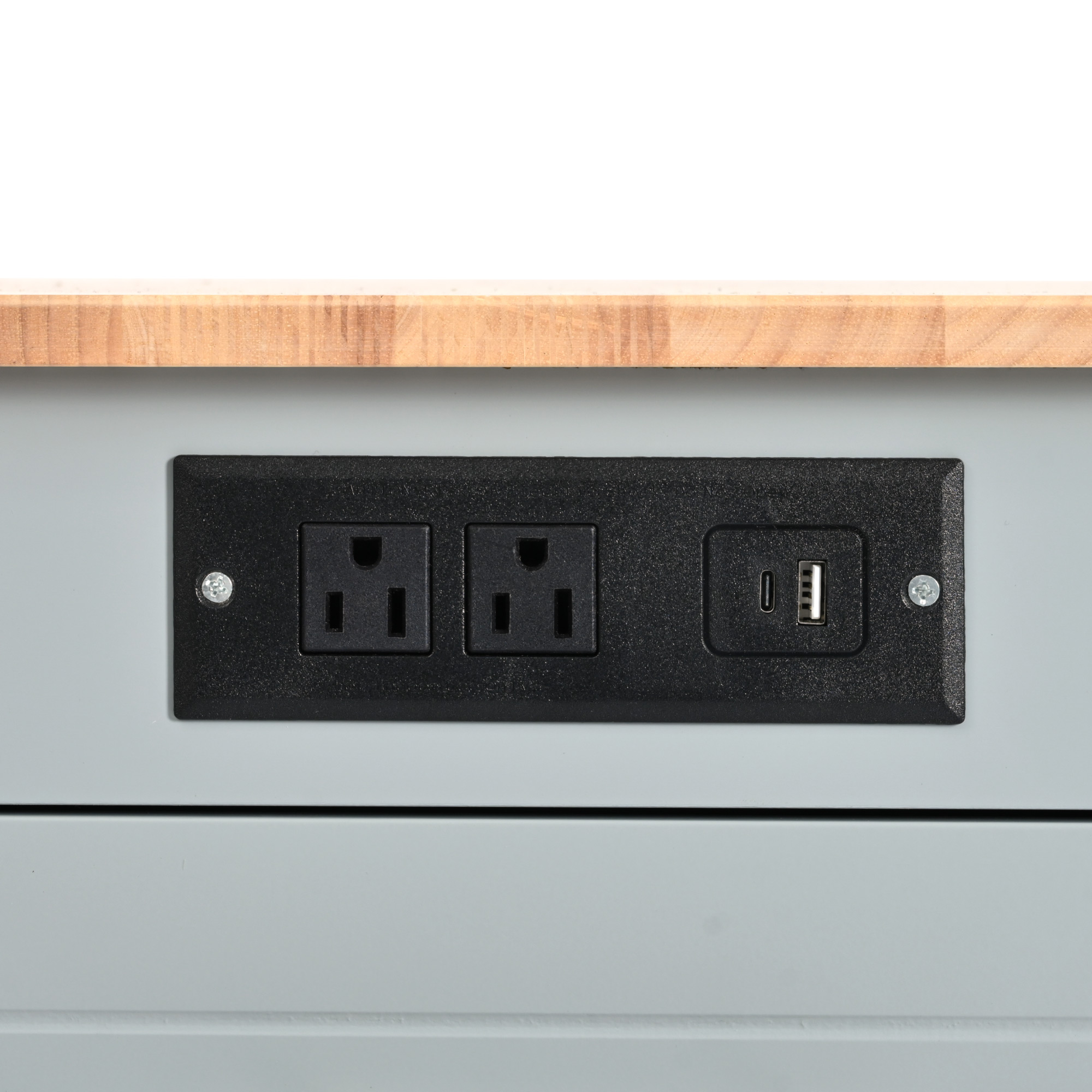 • [Updated Built-in Power Outlet] This exquisitely crafted kitchen island boasts a sophisticated built-in charging station, complete with 2 AC outlets, 1 USB port, and 1 Type-C port to accommodate all of your kitchen appliance power needs. You can conveniently charge your coffee maker, juicer, and any devices that use Type-C ports of this kitchen storage island.Whether you're using it as an additional workspace, or a dining spot, the island's versatile design caters to various kitchen activities.