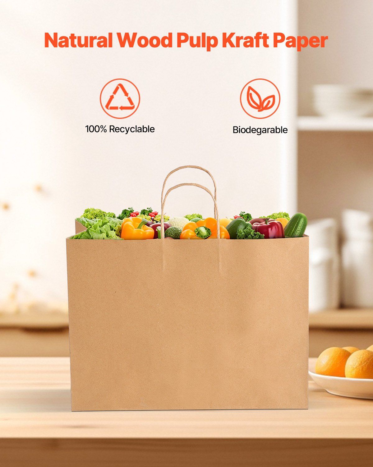 Home > Kraft Paper Bags with Handles, 100Pcs 16 x 6 x 12 in, Large Paper Grocery Bags, Reusable & Recycled Take-Out Sacks, Plain Party Bag Bulk for Birthday