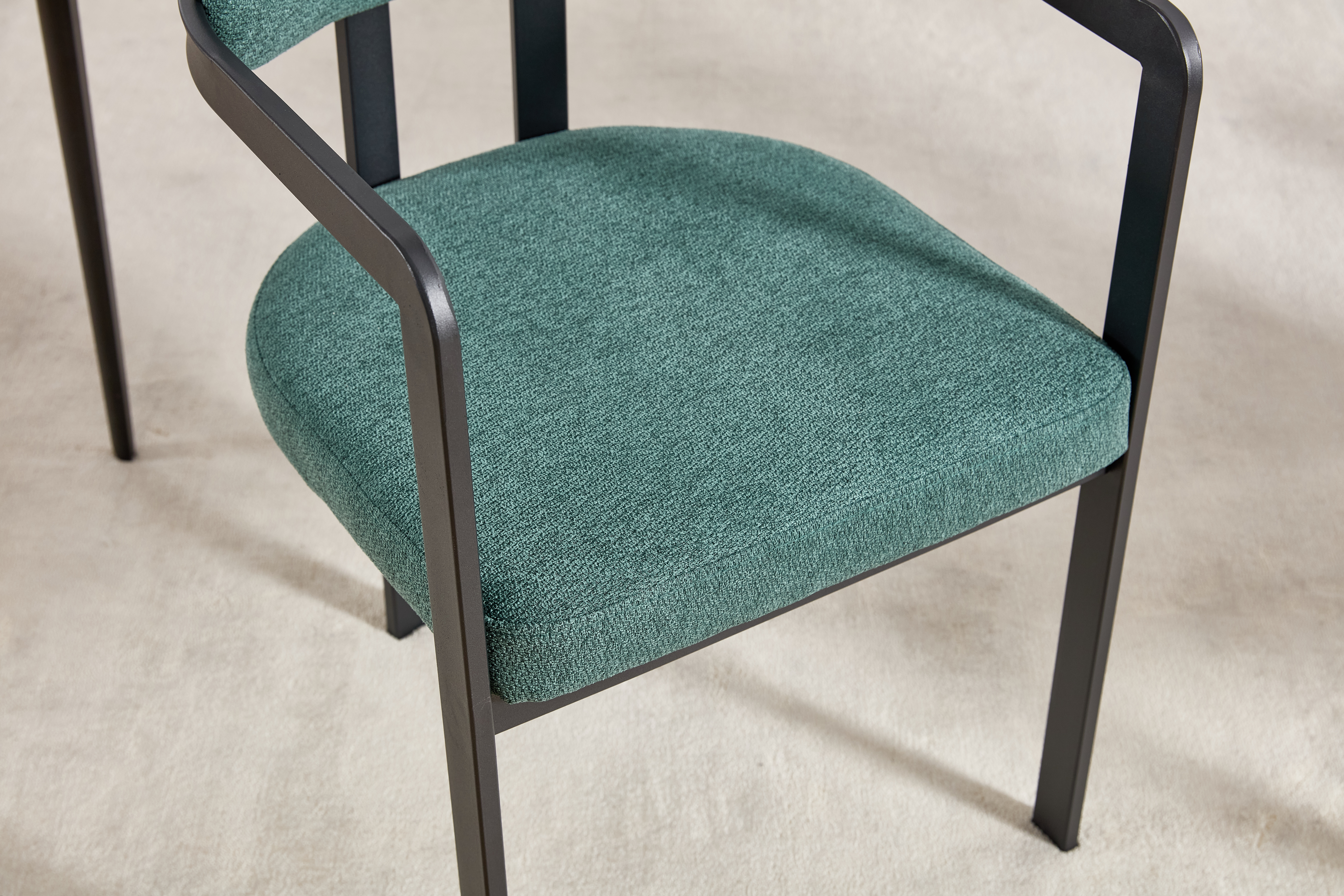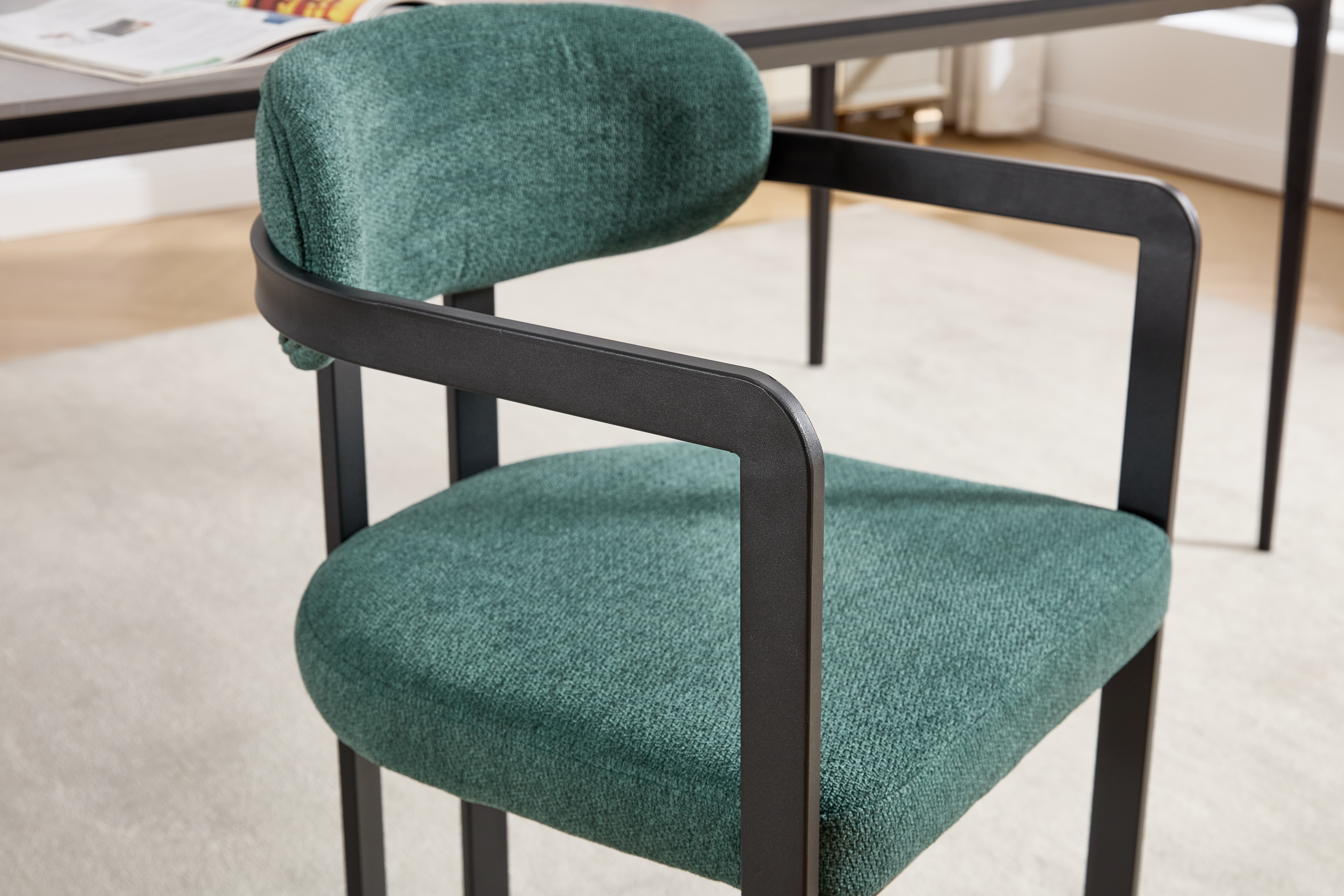 • Elegant and Ergonomic Design: These modern dining chairs feature a sleek linen upholstery combined with a matte black metal frame, creating a stylish and comfortable seating solution for your dining area or living space