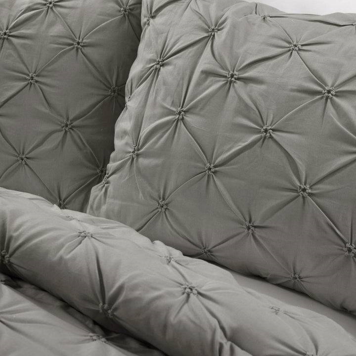 Soft Pleated Grey Cotton 3 Piece Comforter Set