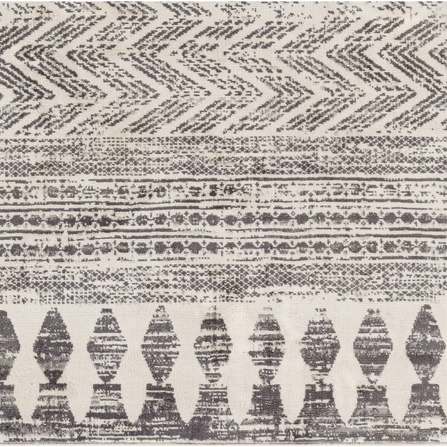 Grey Ivory Chevron Stripe Geometric Boho Style Area Rug