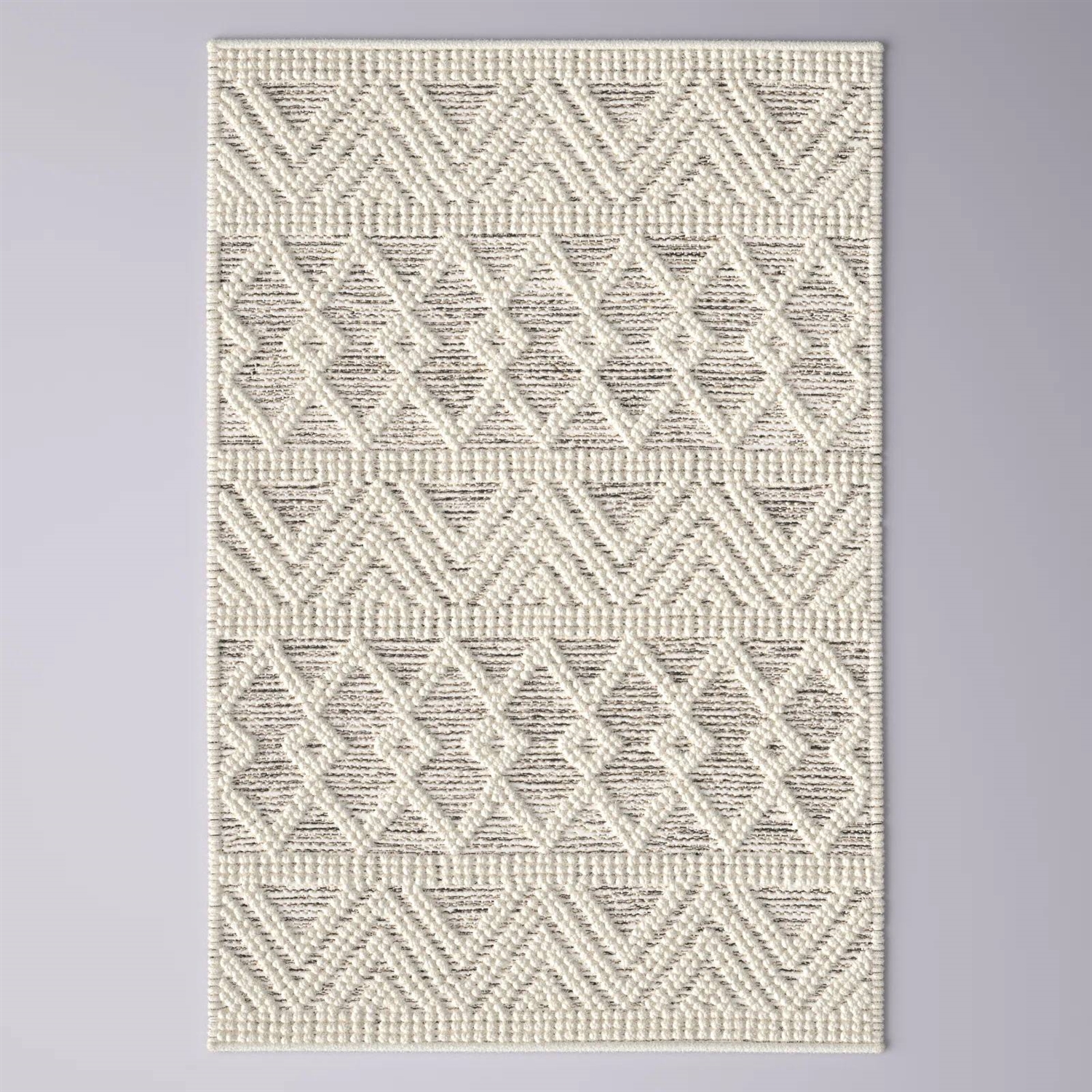Hand Woven Wool Blend Grey Beige Ivory Persian Style Area Rug
