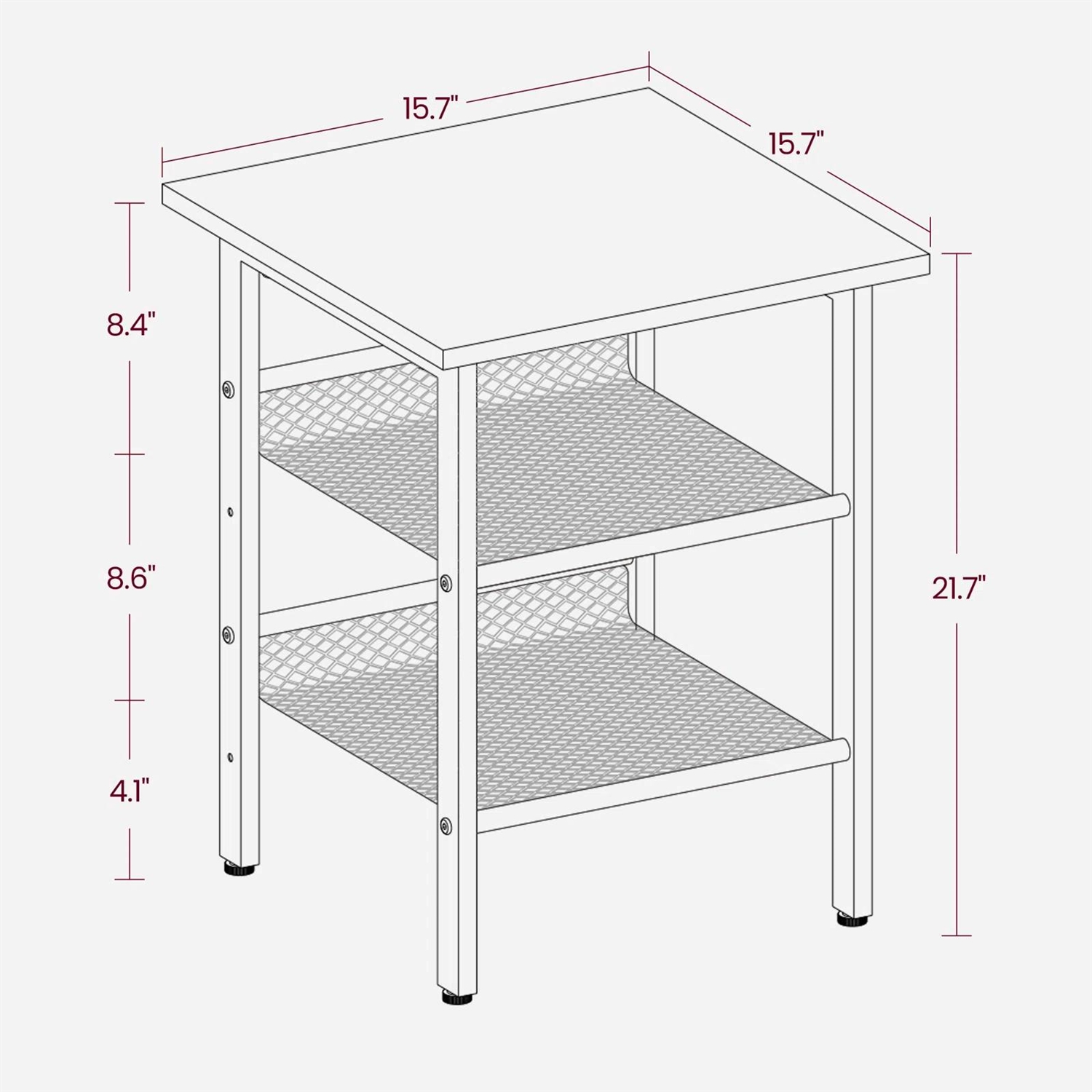 Modern Industrial End Table/Nightstand in Black Metal with Wood Top