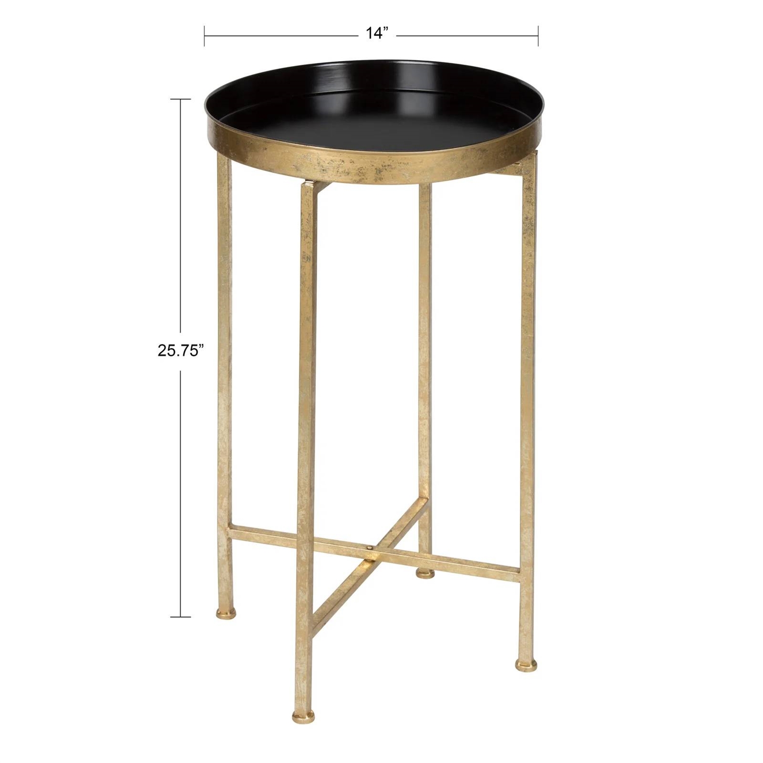 Gold Finish Metal Round Nightstand End Table with Removable Tray Top