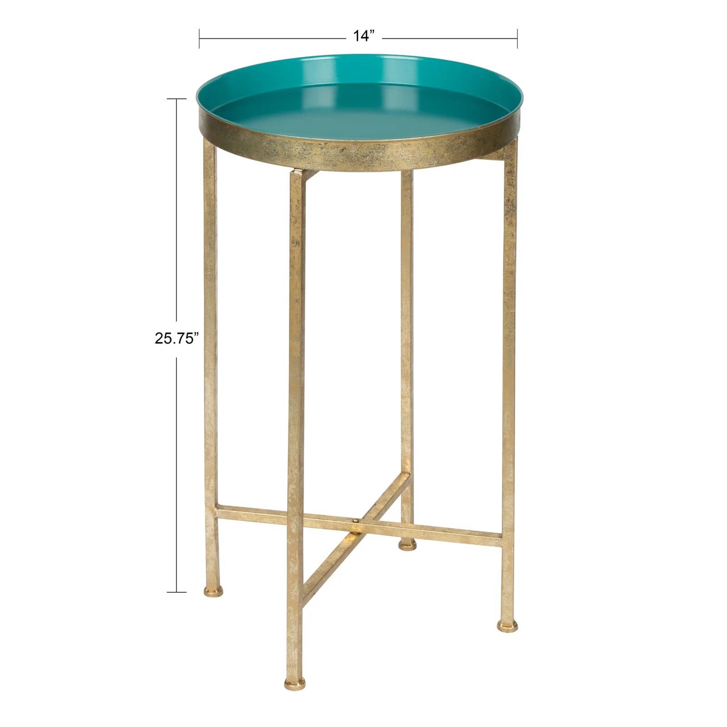 Gold Finish Metal Round Nightstand End Table with Removable Tray Top