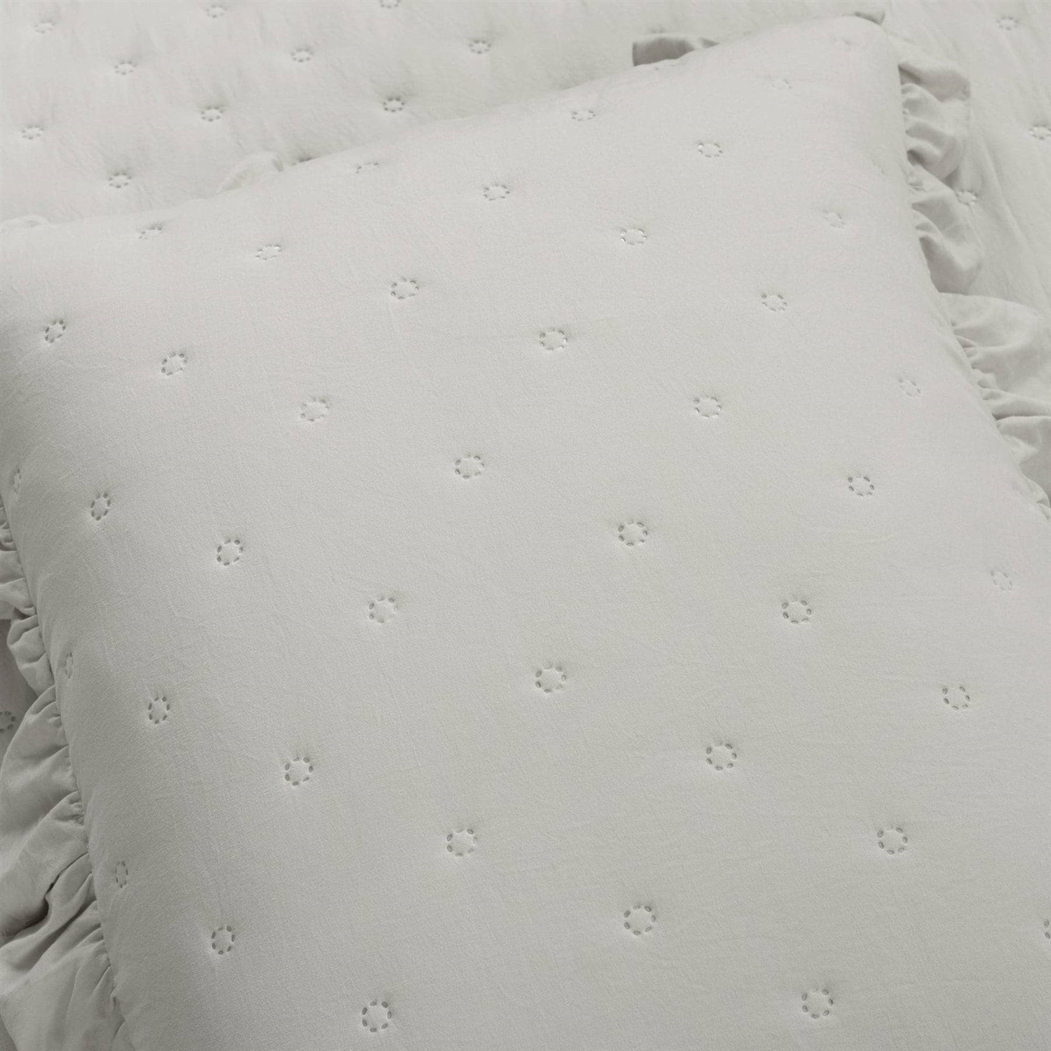 Lightweight Grey Ruffle Reversible Oversized 3 Piece Quilt Set