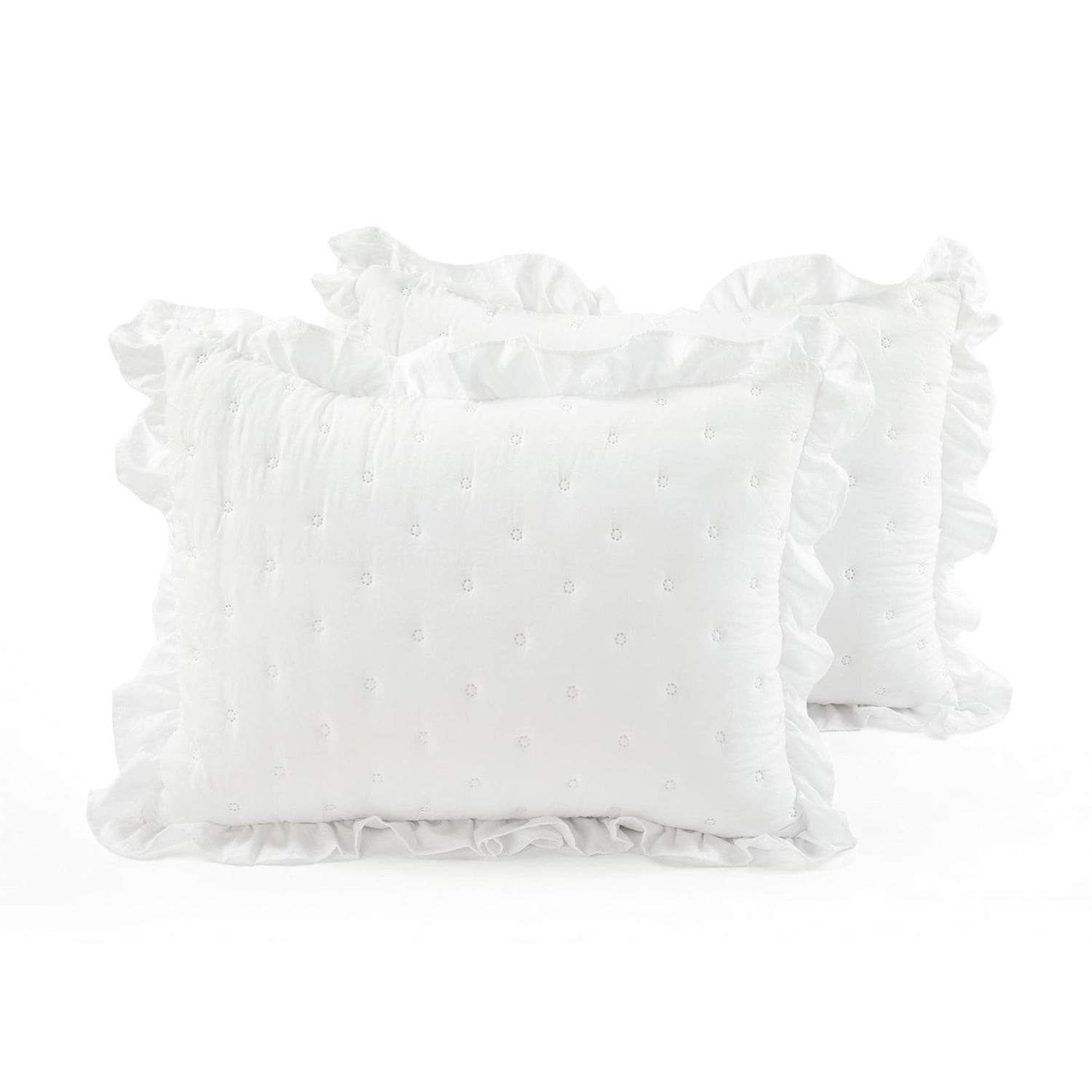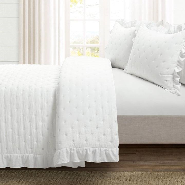 Lightweight White Ruffle Reversible Oversized 3 Piece Quilt Set