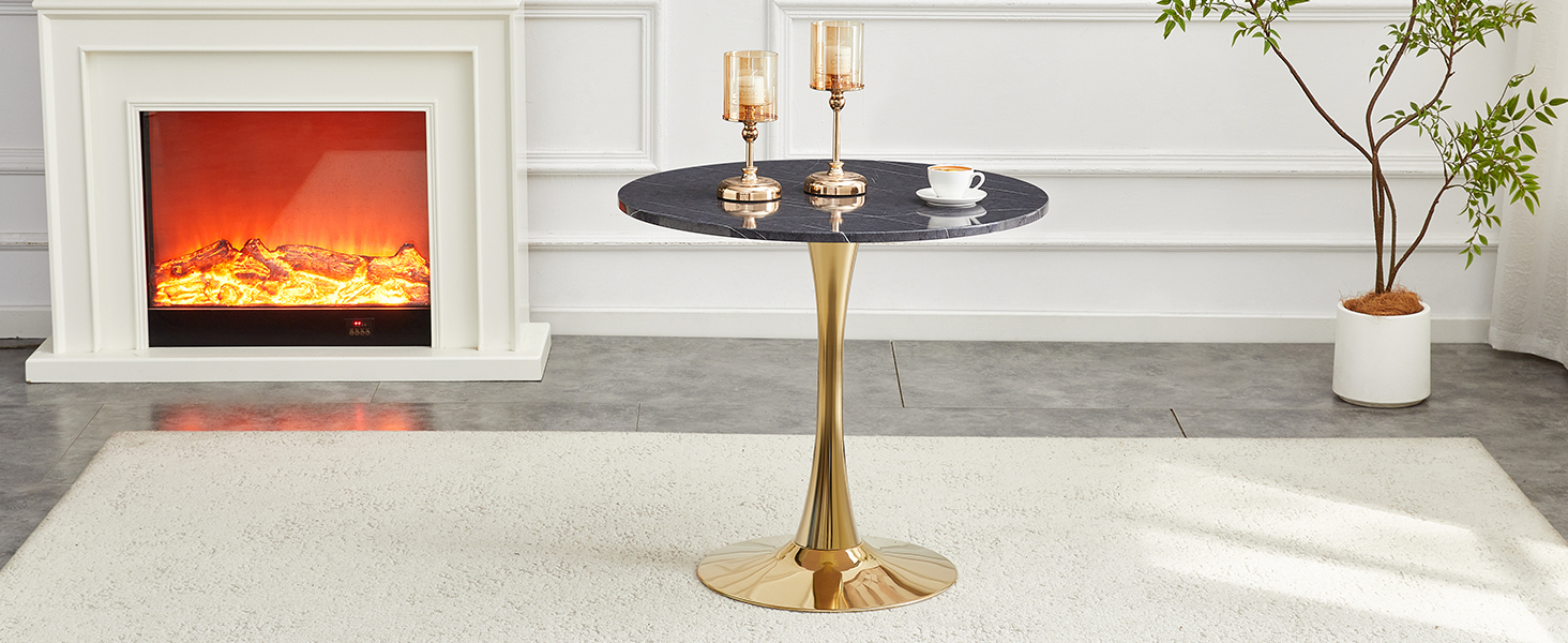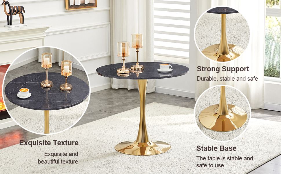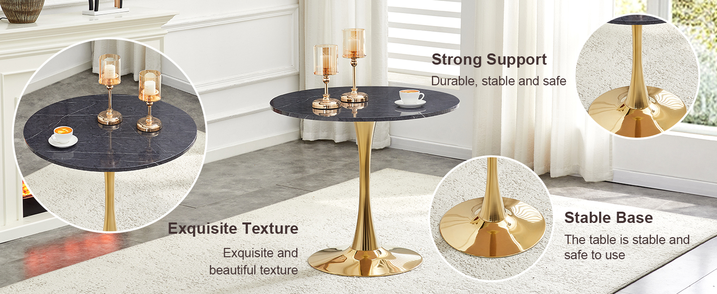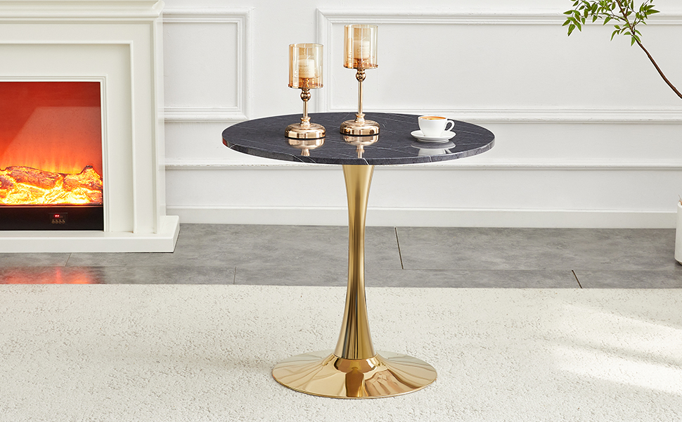 Product Name:Round Dining Table, 31.5" Circle Tulip Table with Thickened Tabletop & Metal Pedestal, Mid Century Modern Bistro Table for Kitchen, Small Places, Living Room, Cafe (Faux Marble)