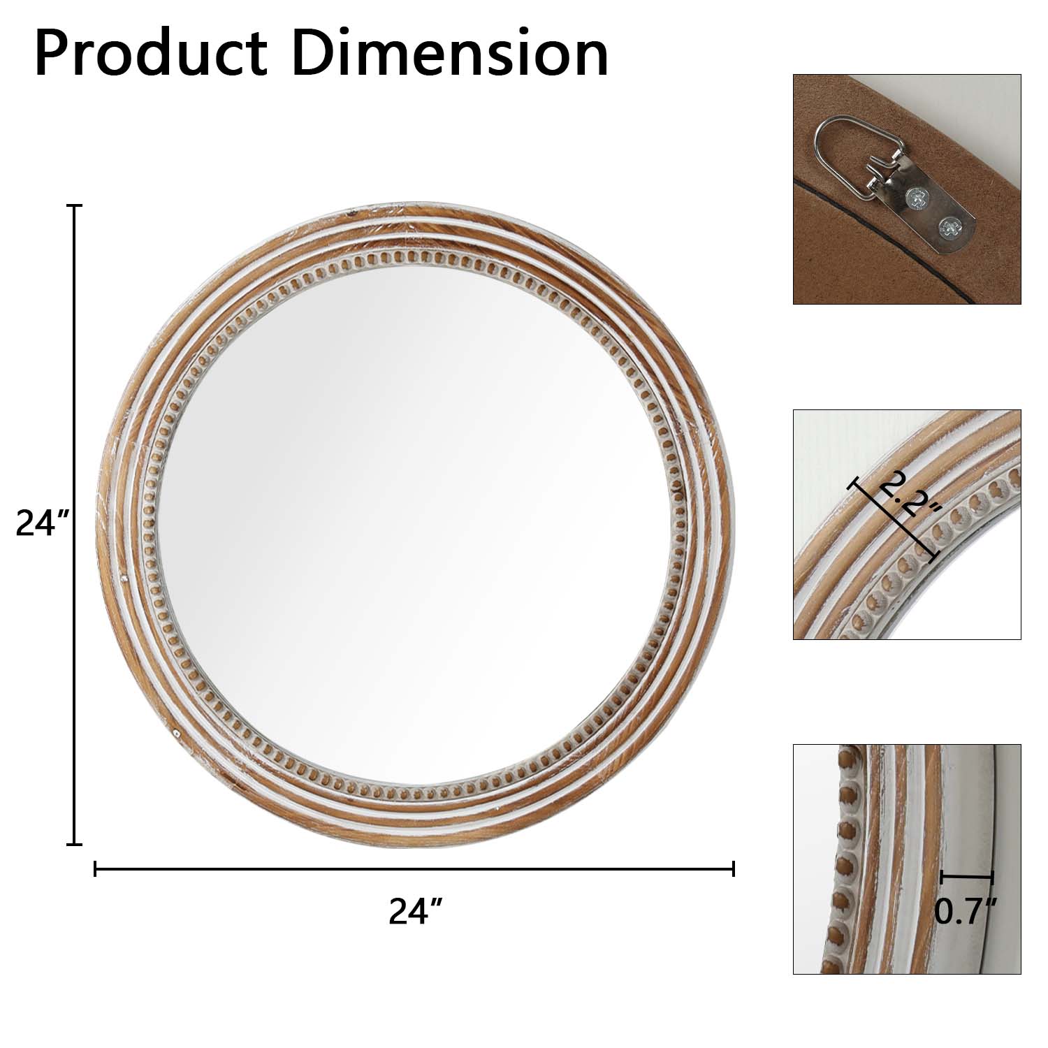 Product Name:Rustic Round Wall Mirror, 23.62 Inches Wood Circle Mirror with Beads, Decorative Farmhouse Mirror for Living Room, Bedroom, Kitchen, Entryway (White)