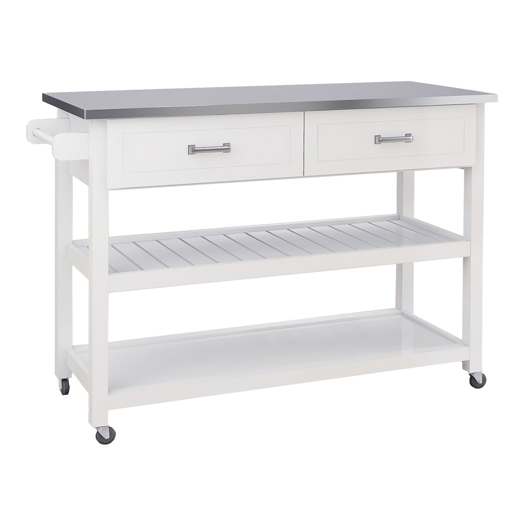 Stainless Steel Table Top White Kicthen Cart With Two Drawers