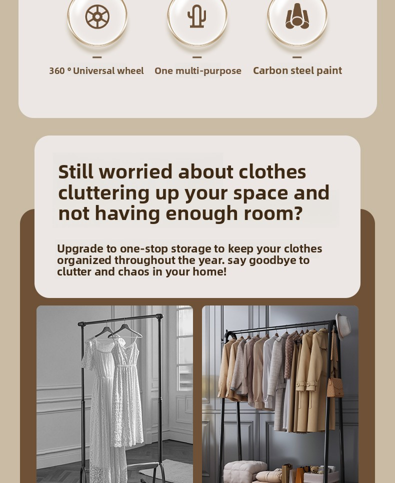 U-shaped clothesline - black U-shaped single-layer -110 with wheels