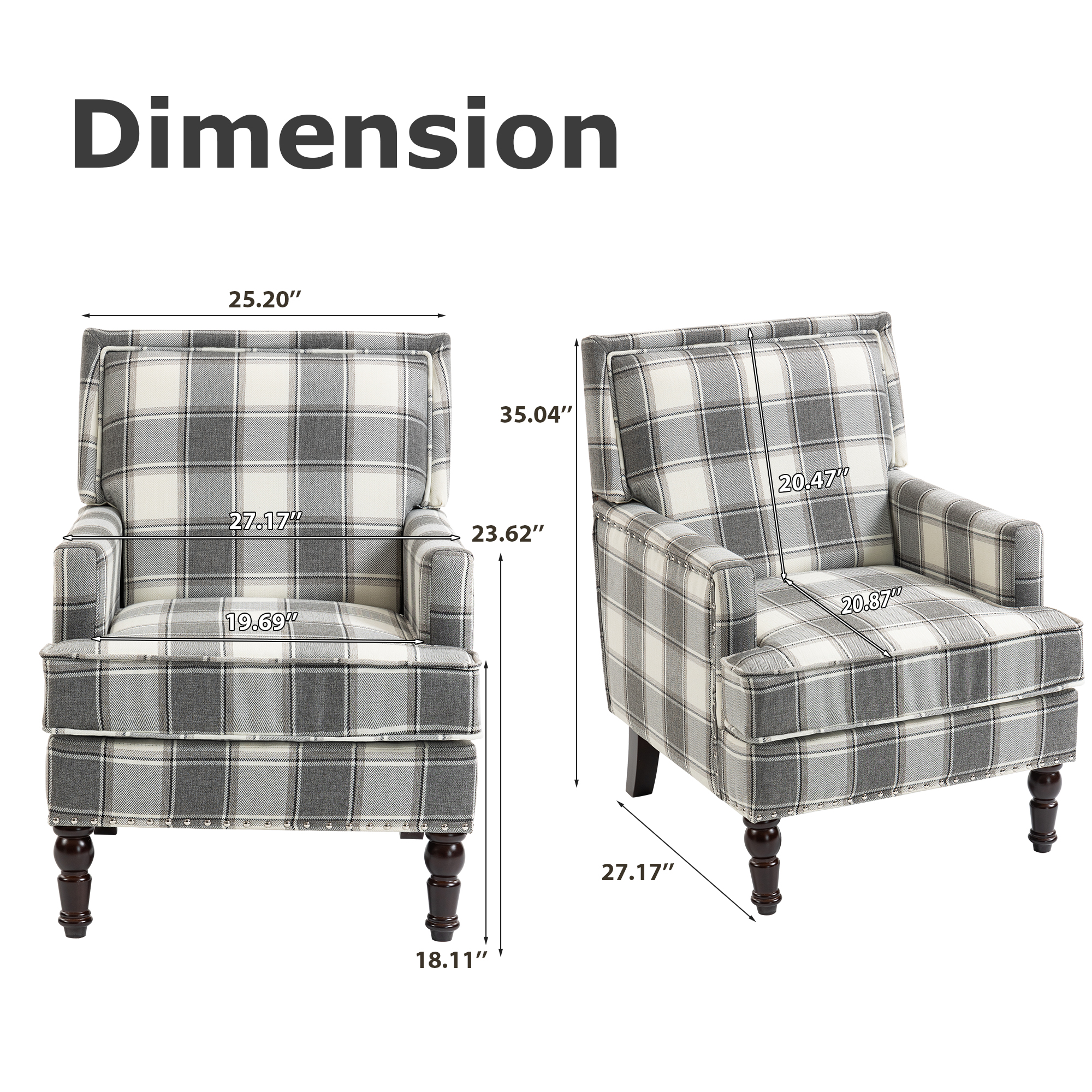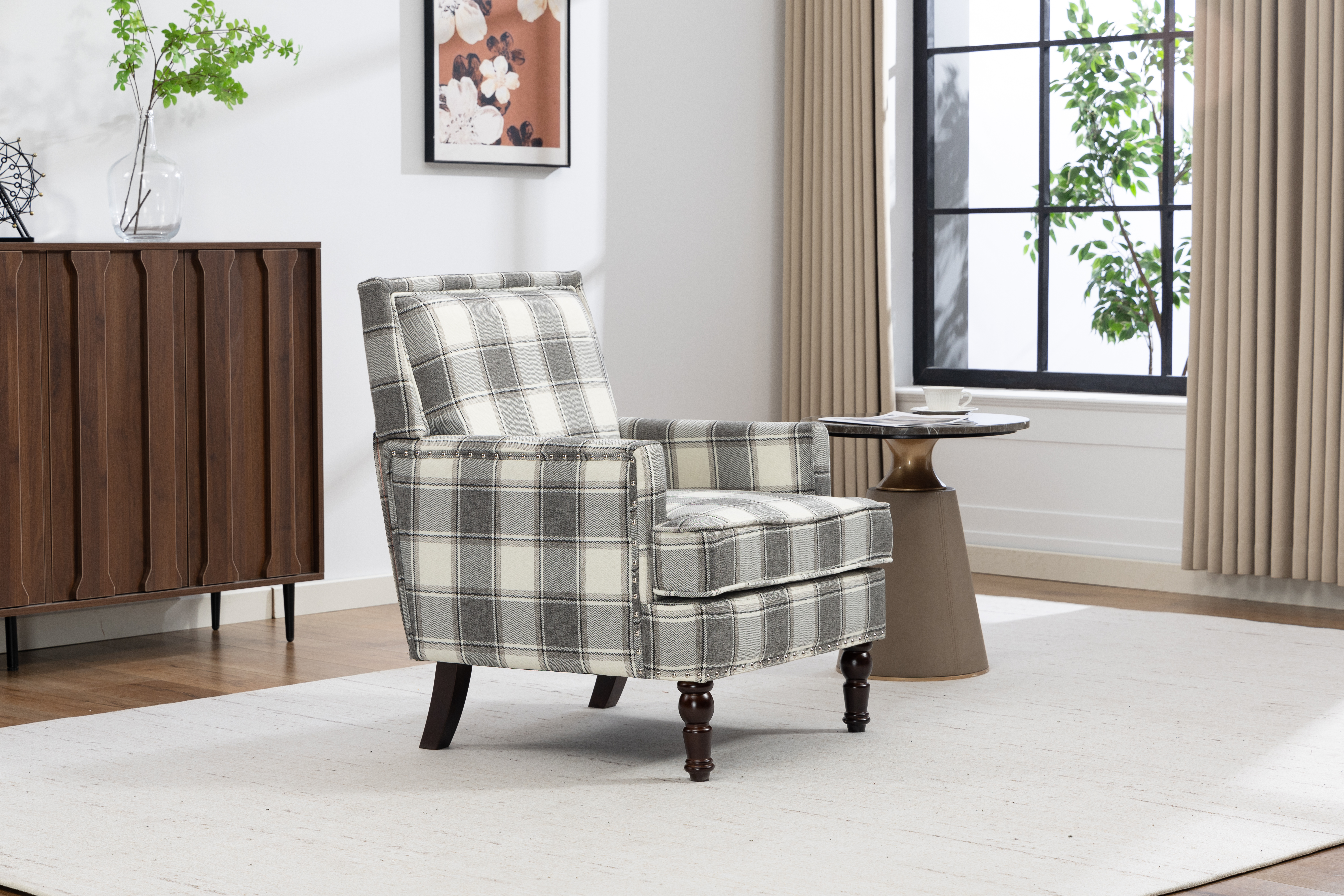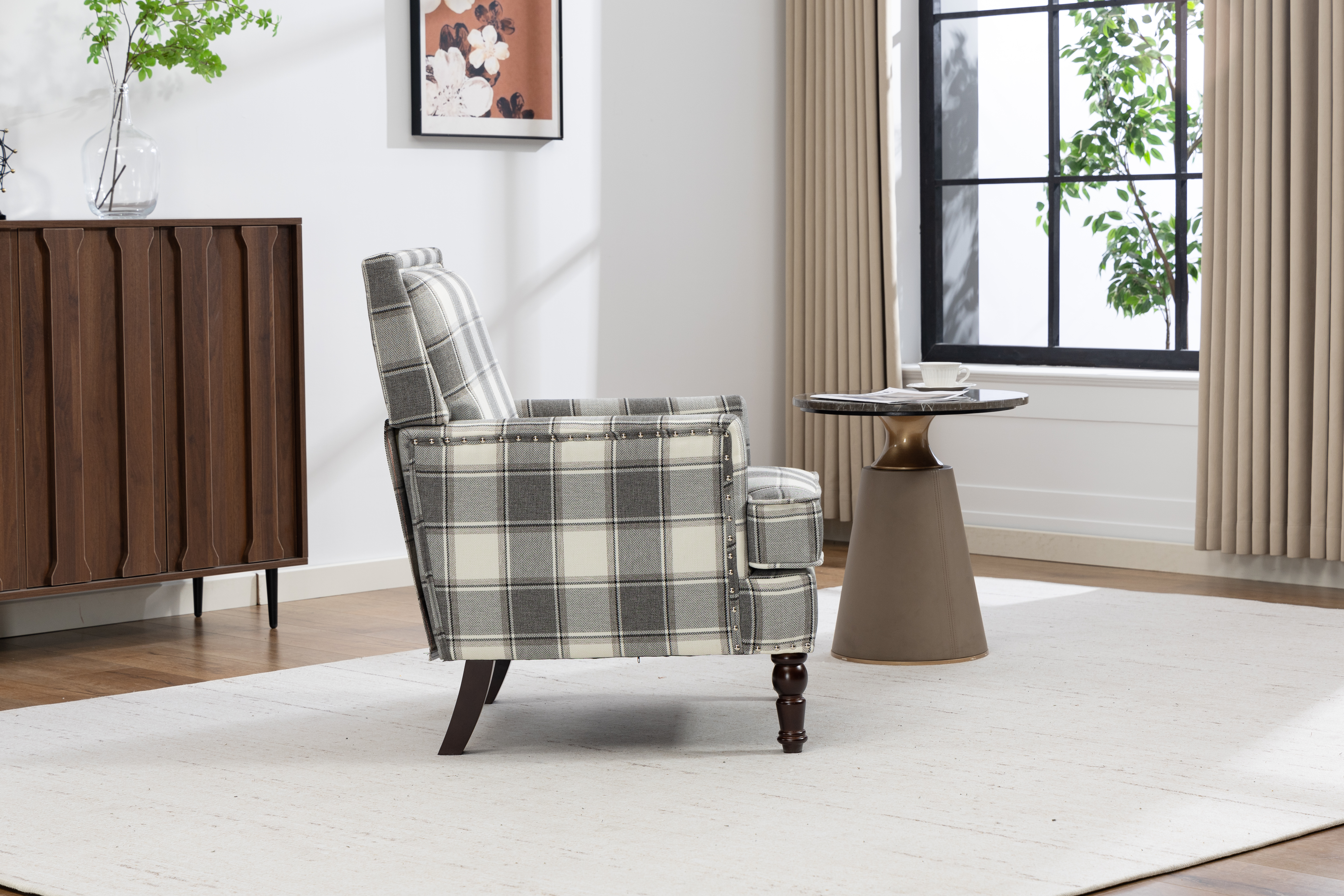 Product Name:Upholstered Accent Chair, Vintage Armchair with Grey Linen Fabric and Nailhead Trim for Living Room